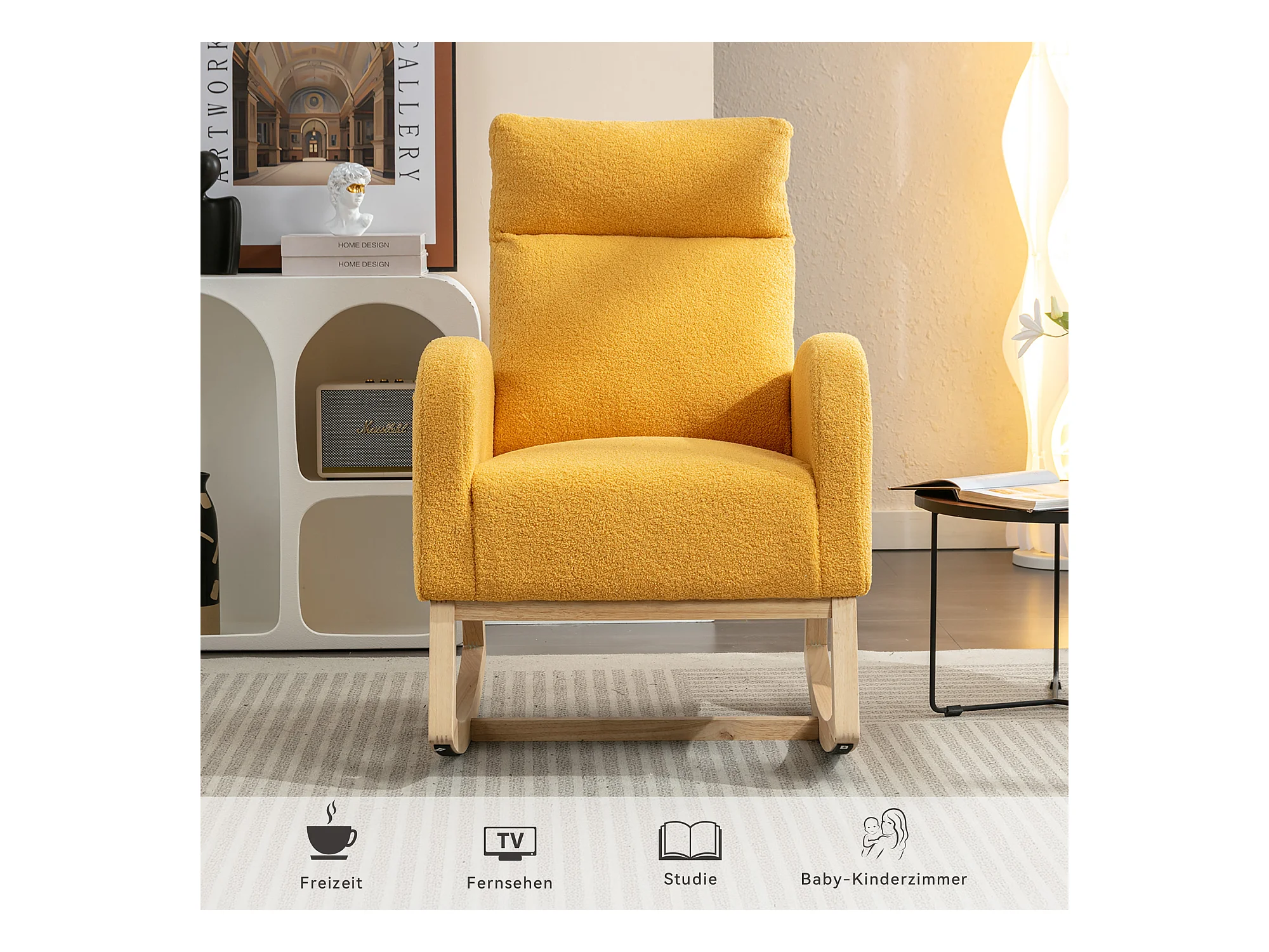 Sedia a dondolo in velluto giallo