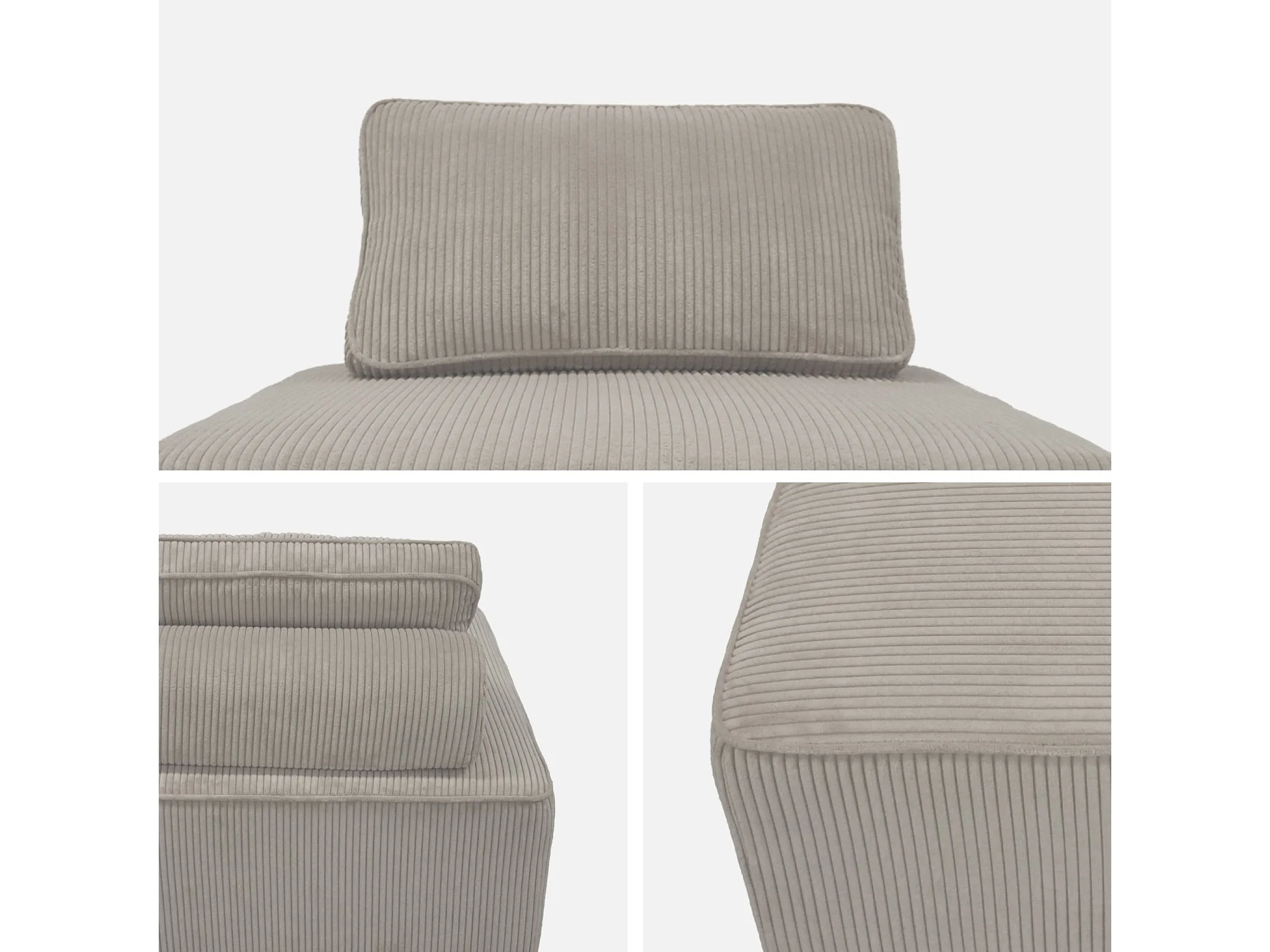 Modulo per divano modulare in velluto a coste, 1 posto, grigio chiaro