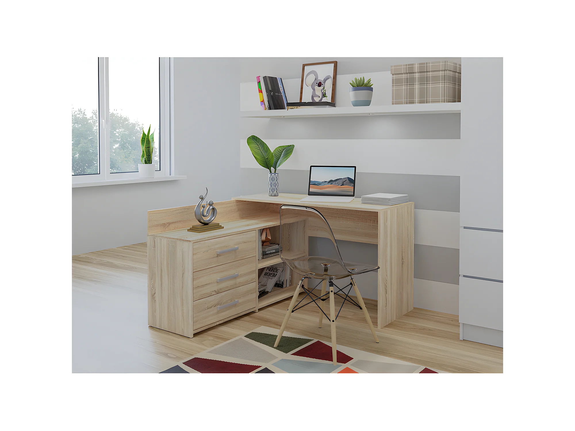 MOLINE - Scrivania angolare con contenitore - 3 cassetti + 2 ripiani - 120x50x76 cm - Scrivania per computer
