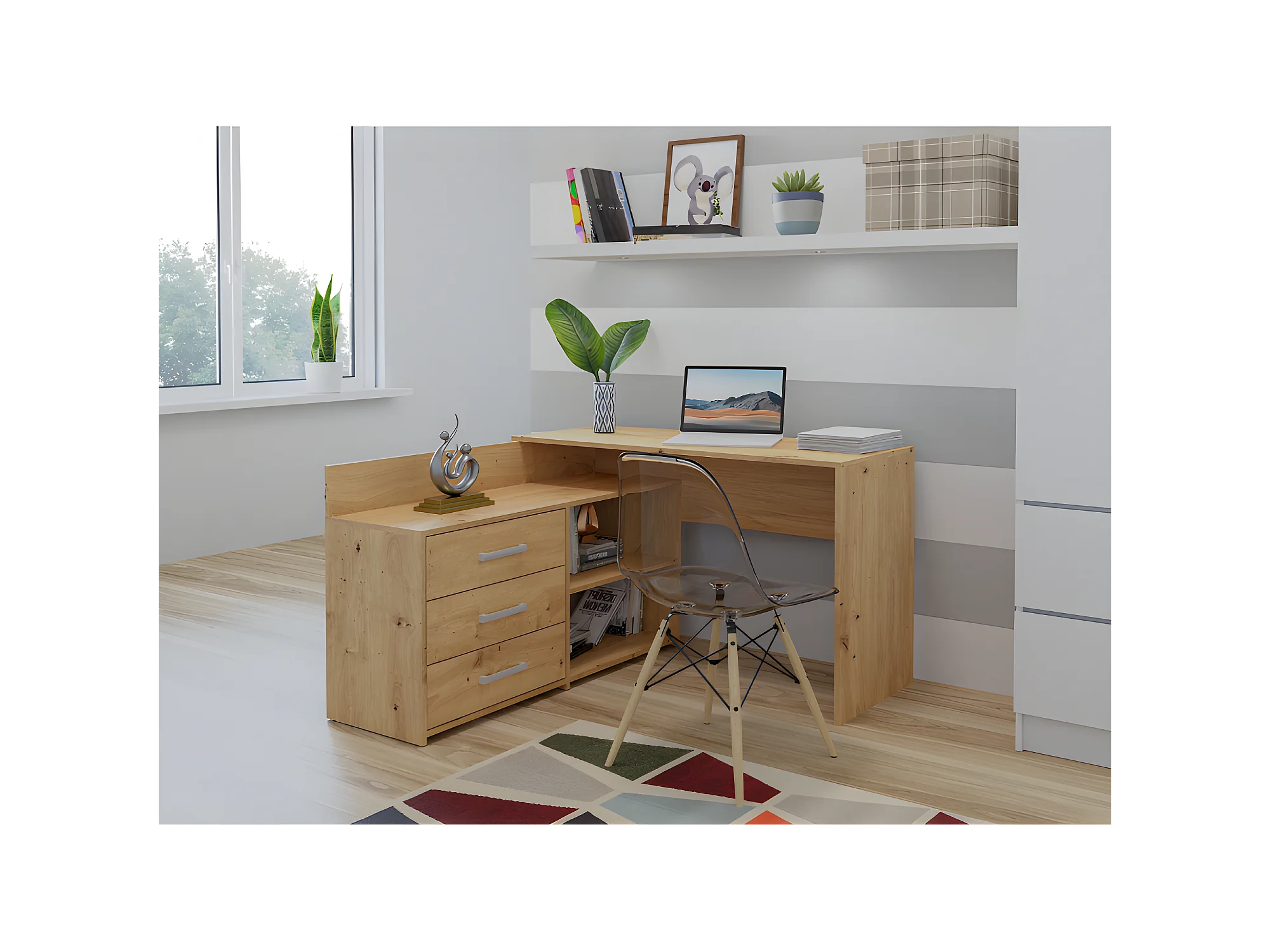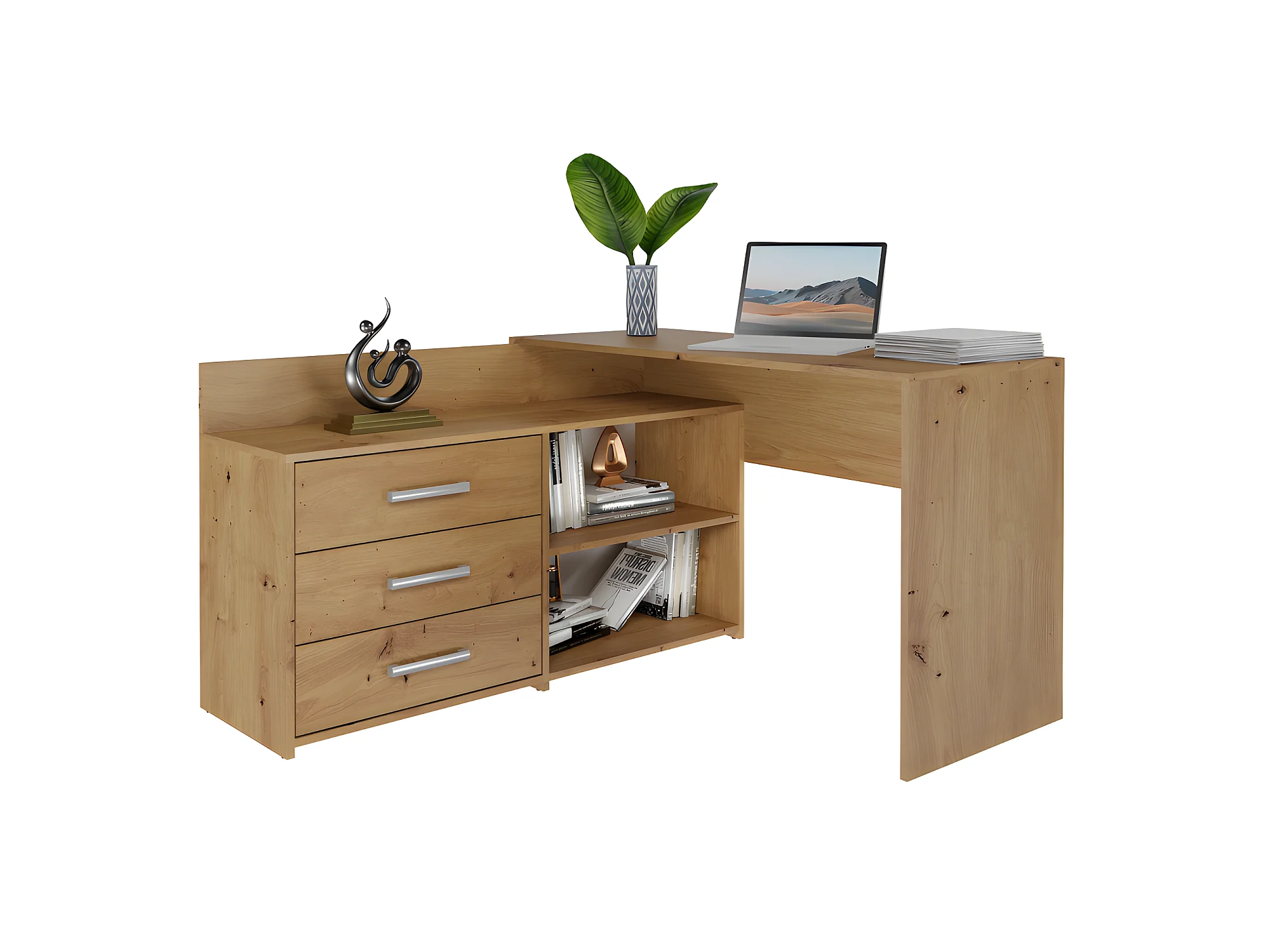 MOLINE - Scrivania angolare con contenitore - 3 cassetti + 2 ripiani - 120x50x76 cm - Scrivania per computer