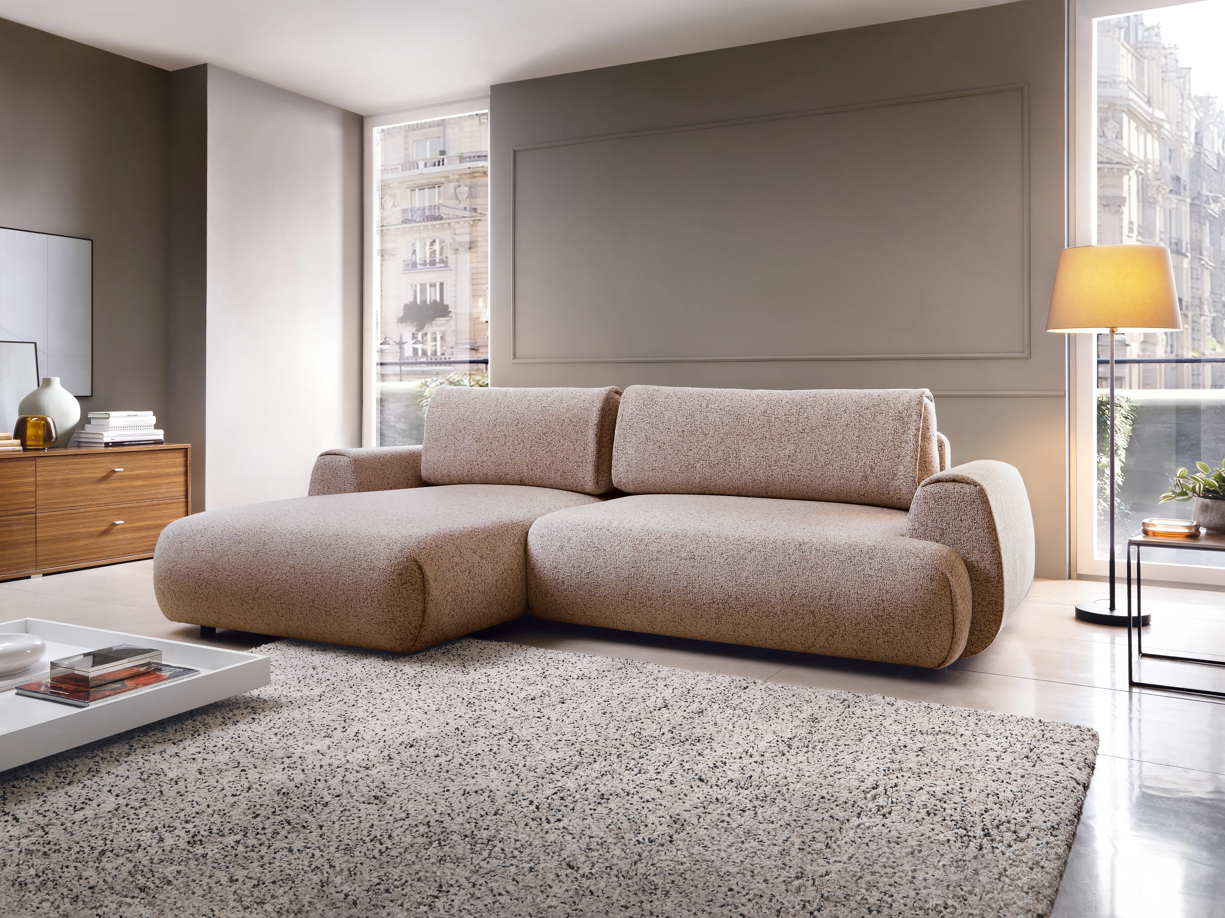 Divano letto angolo a sinistra in Tessuto melange rosa - MONELIA