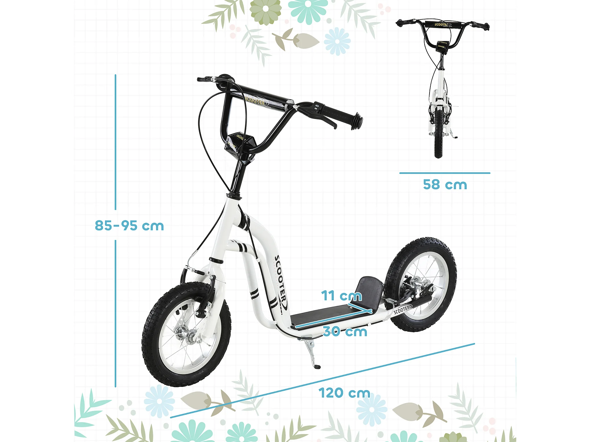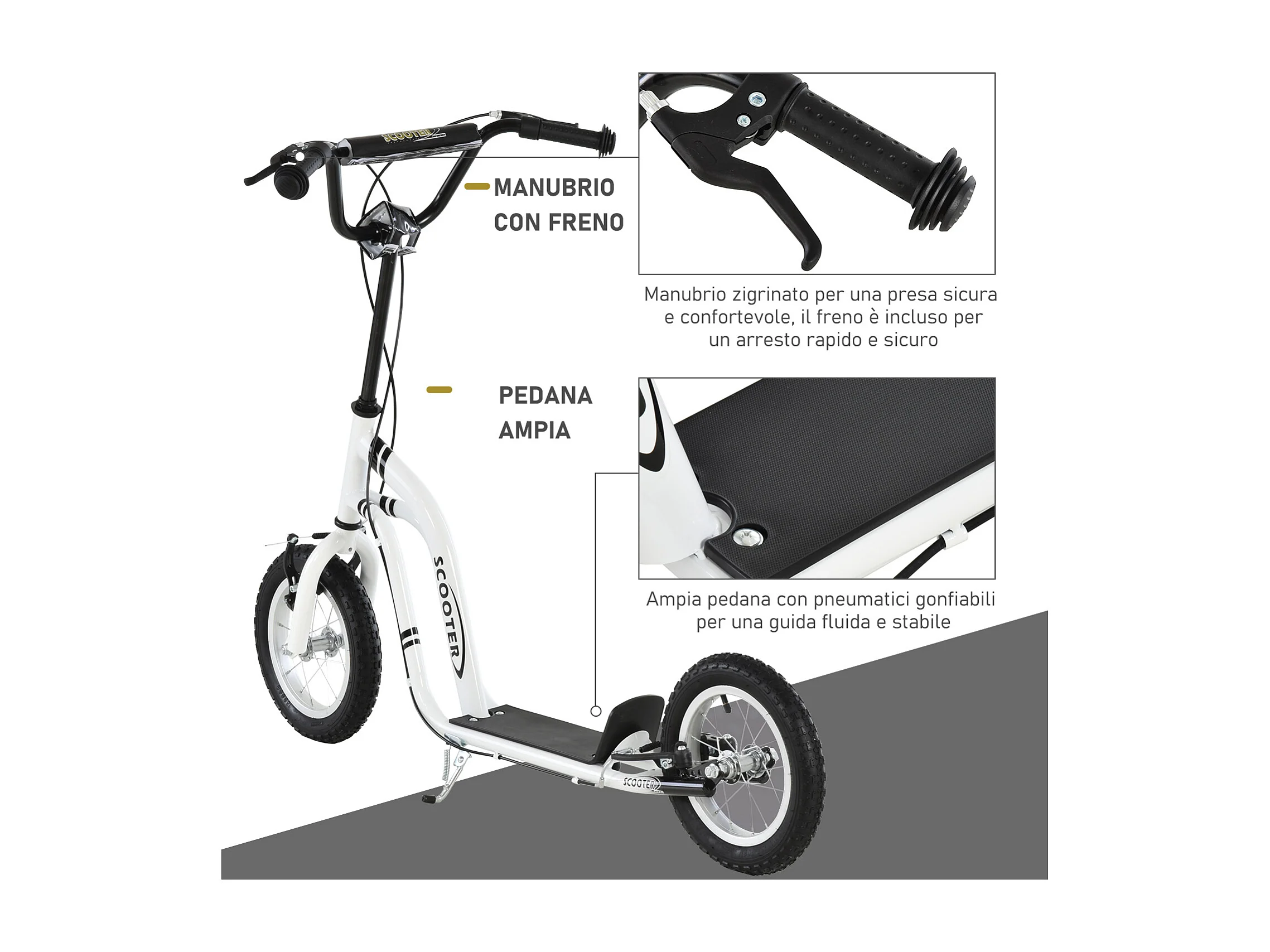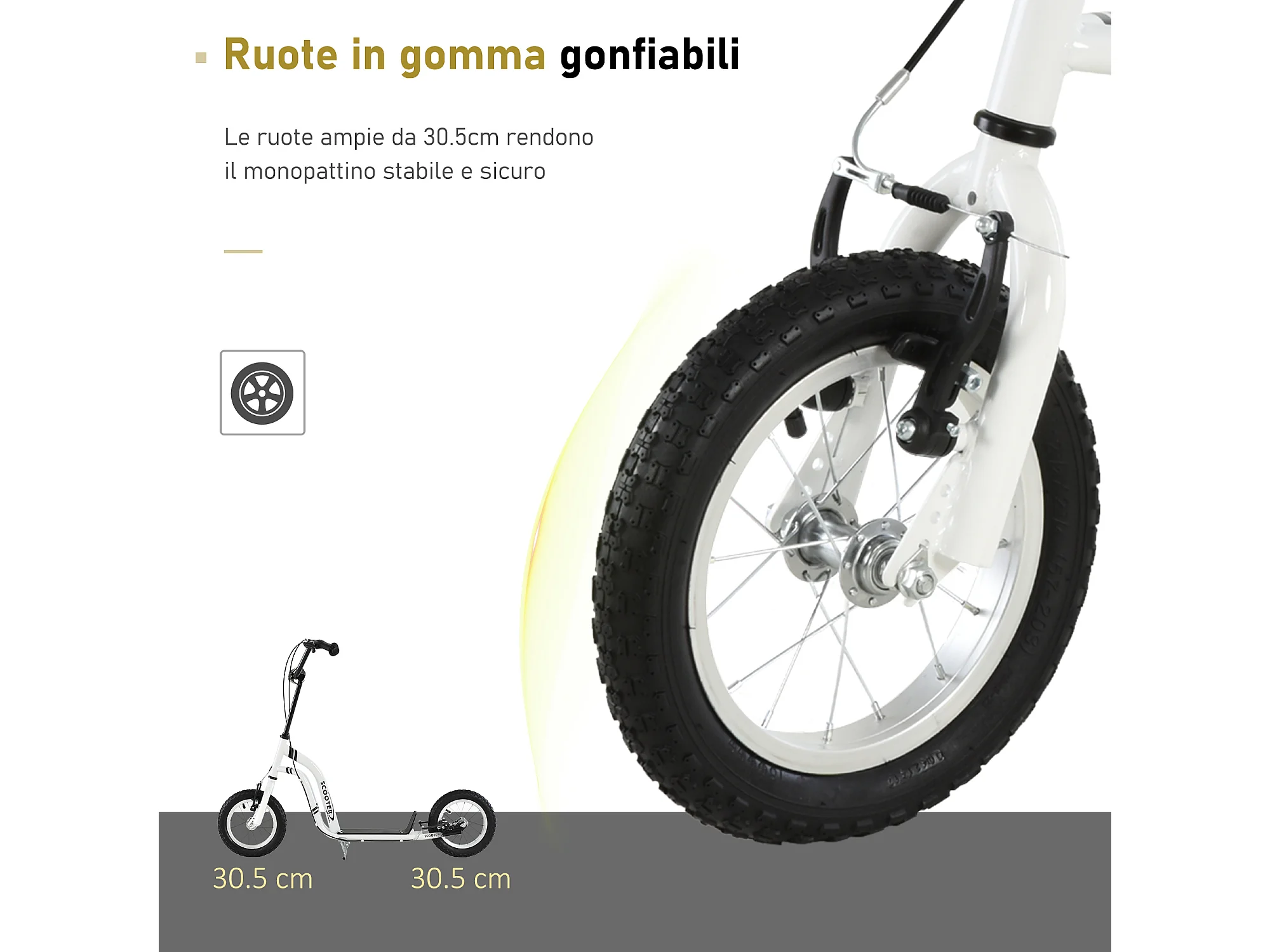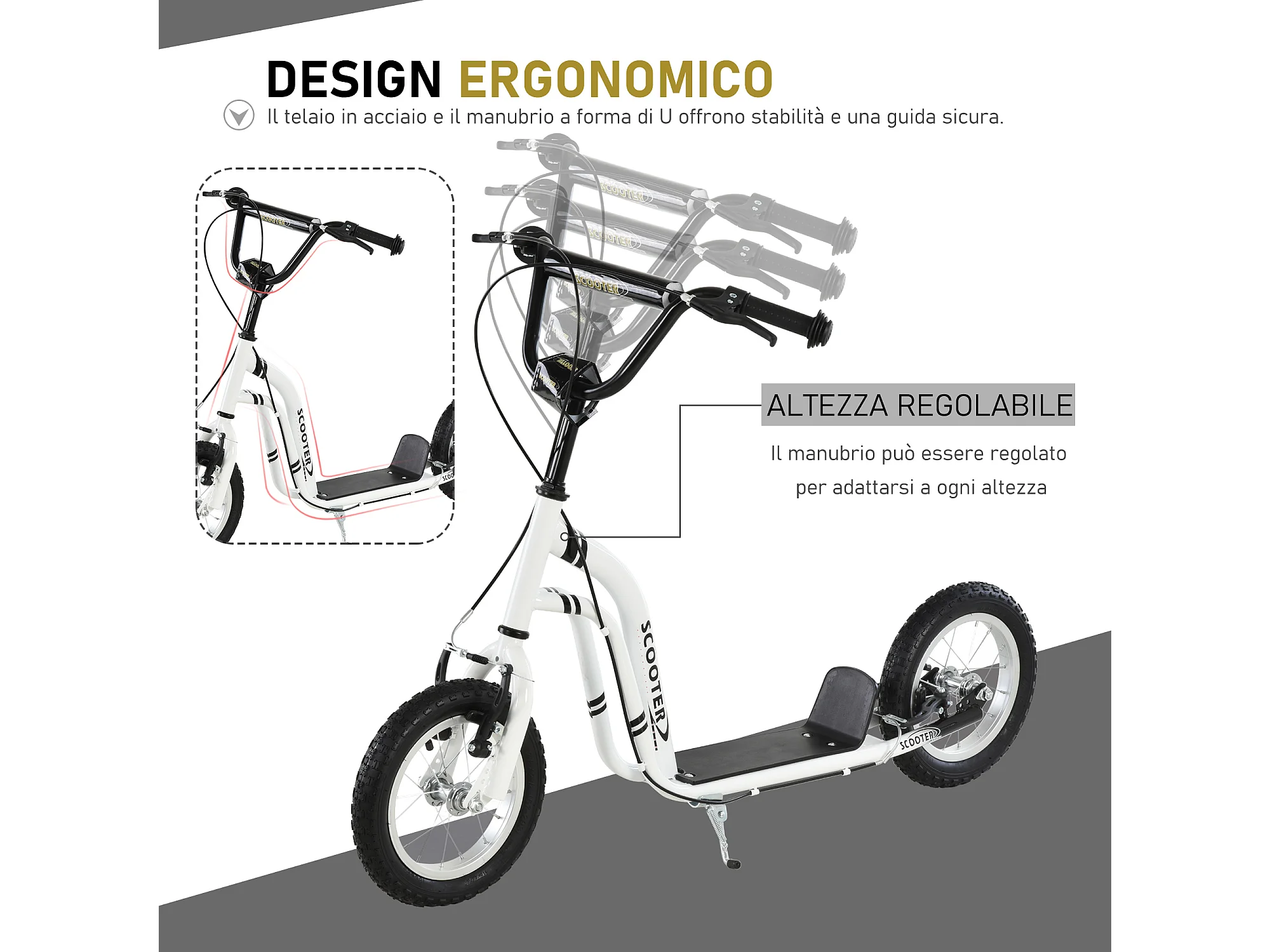Monopattino con manubrio regolabile in acciaio 120x58x85-95 cm bianco