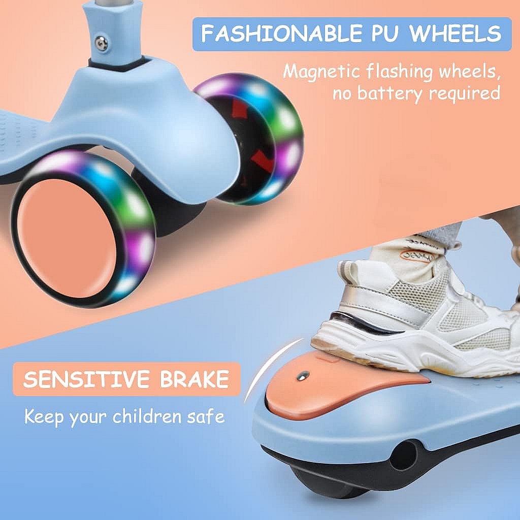 Monopattino Bambini Pieghevole BremToy con Sella, Ruote LED e Manubrio Regolabile in Altezza per 2-8 Anni