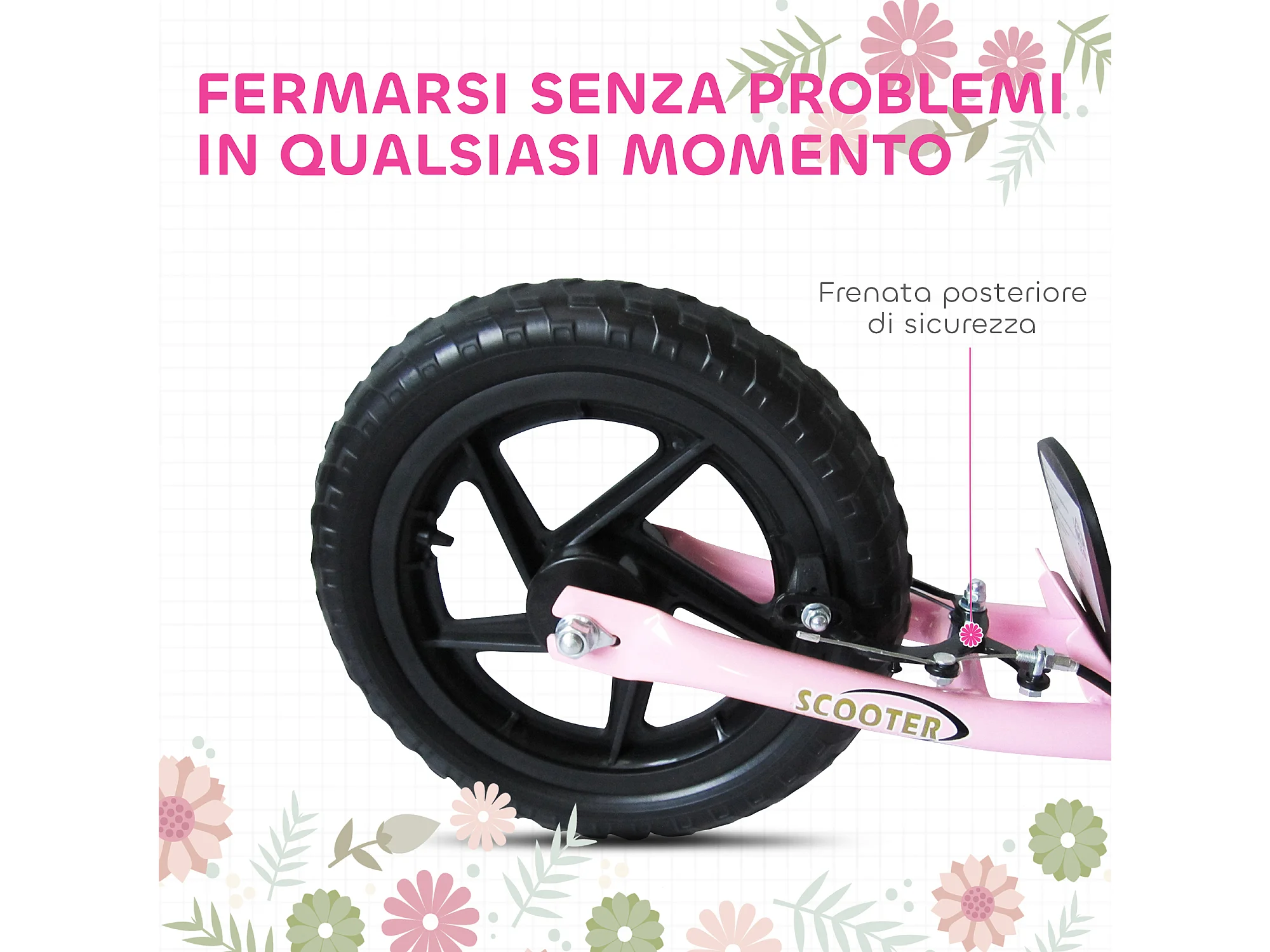 Monopattino per bambini con freno posteriore manubrio regolabile rosa