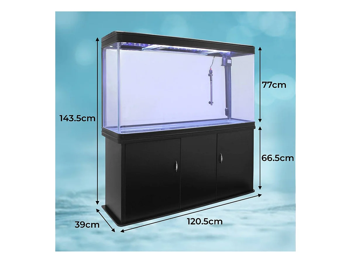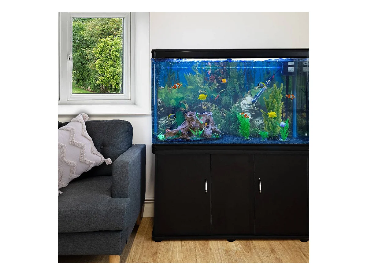 MonsterShop - Acquario 300 Litri con Armadietto Nero e Kit con Piante e Ghiaia Blu 143cm x 120cm x 39cm