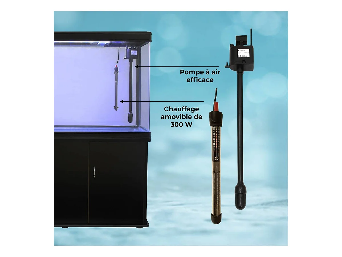 MonsterShop - Acquario 300 Litri con Armadietto Nero, Luce a Led & Visione a 180°
