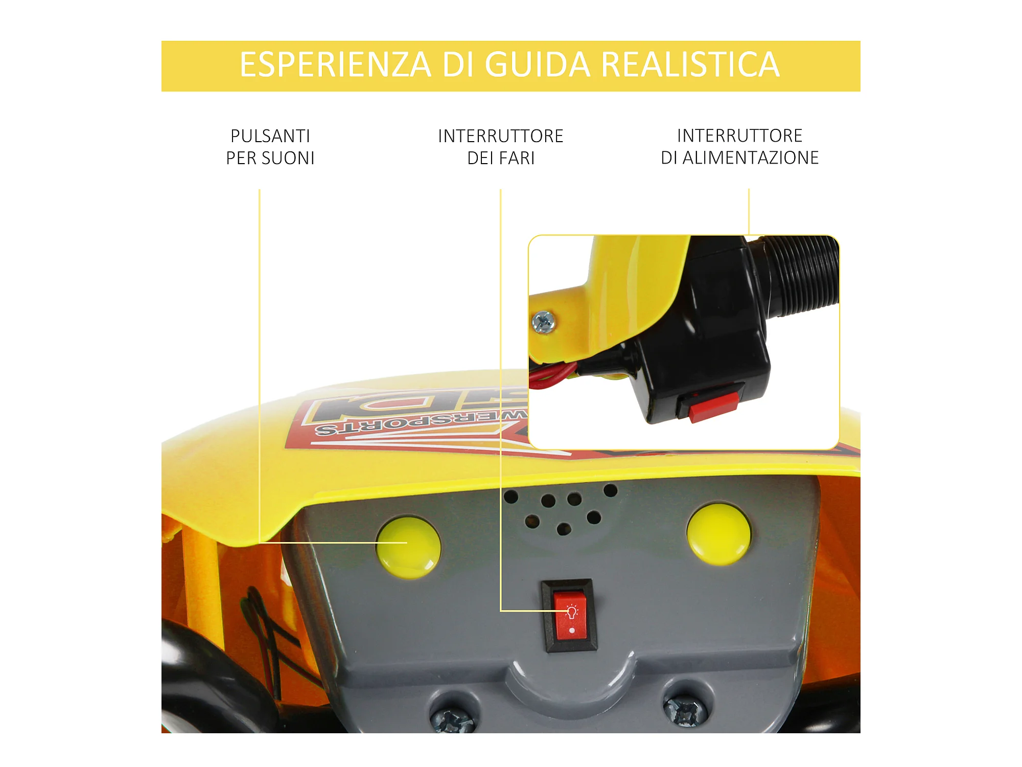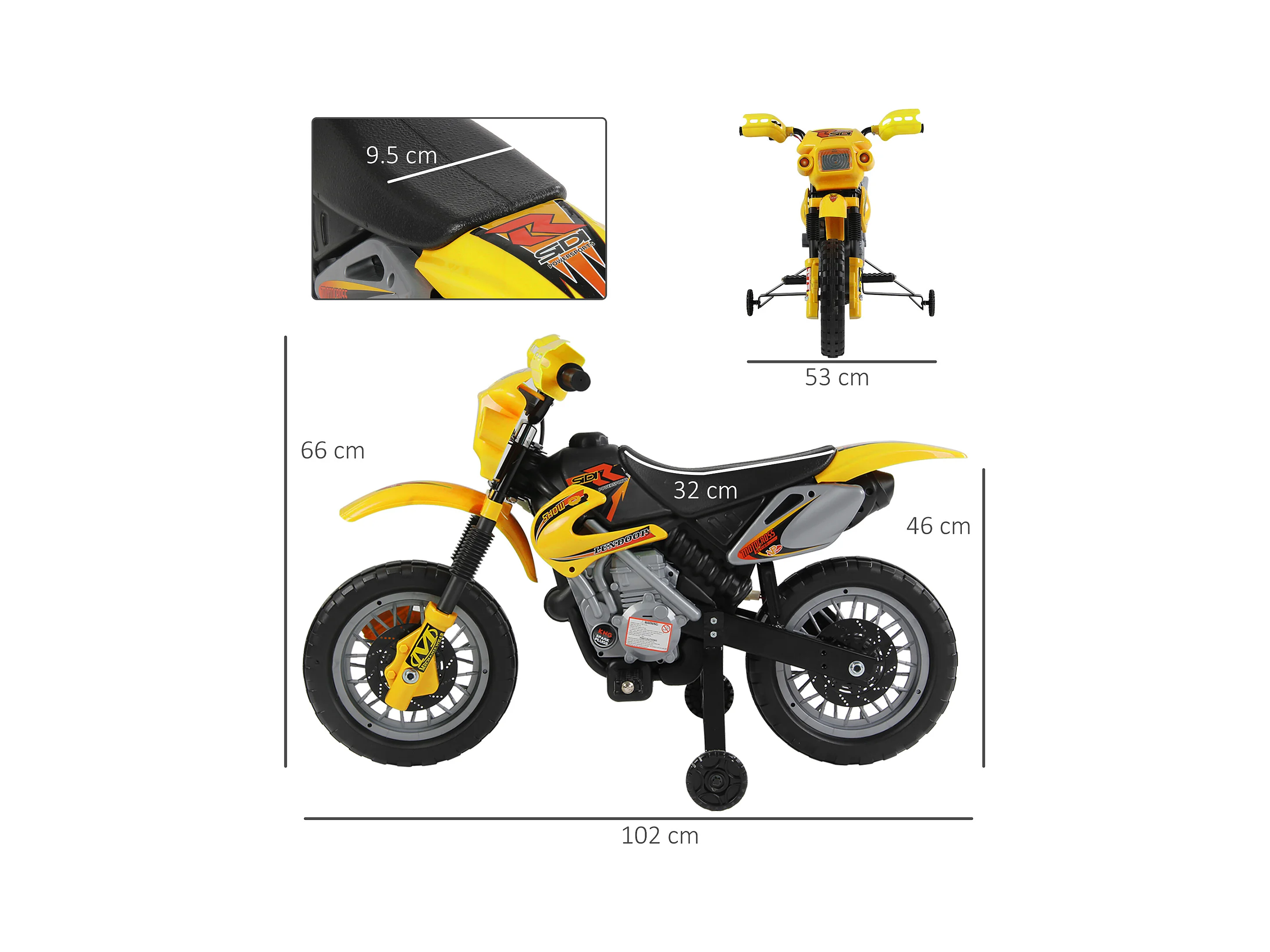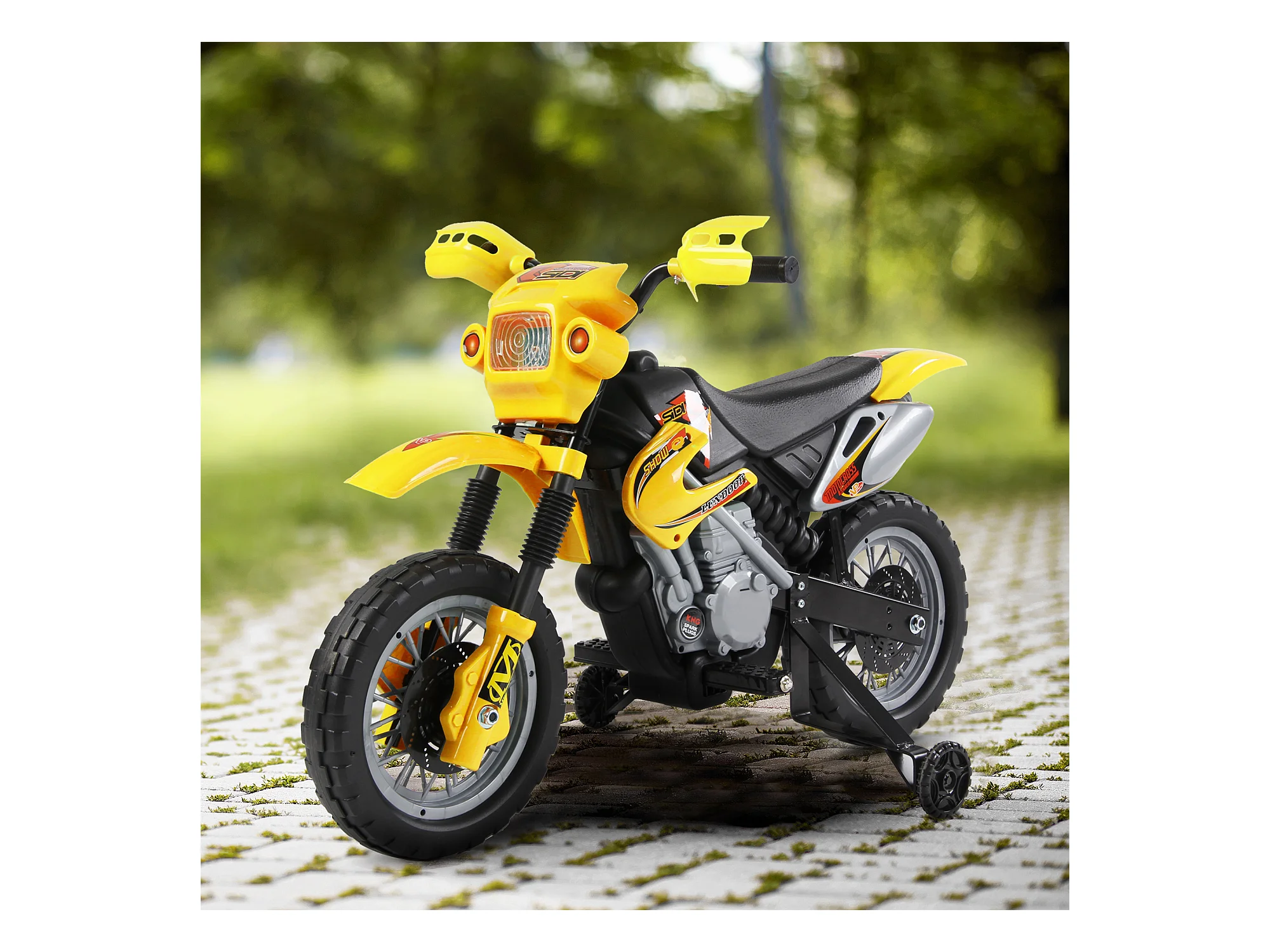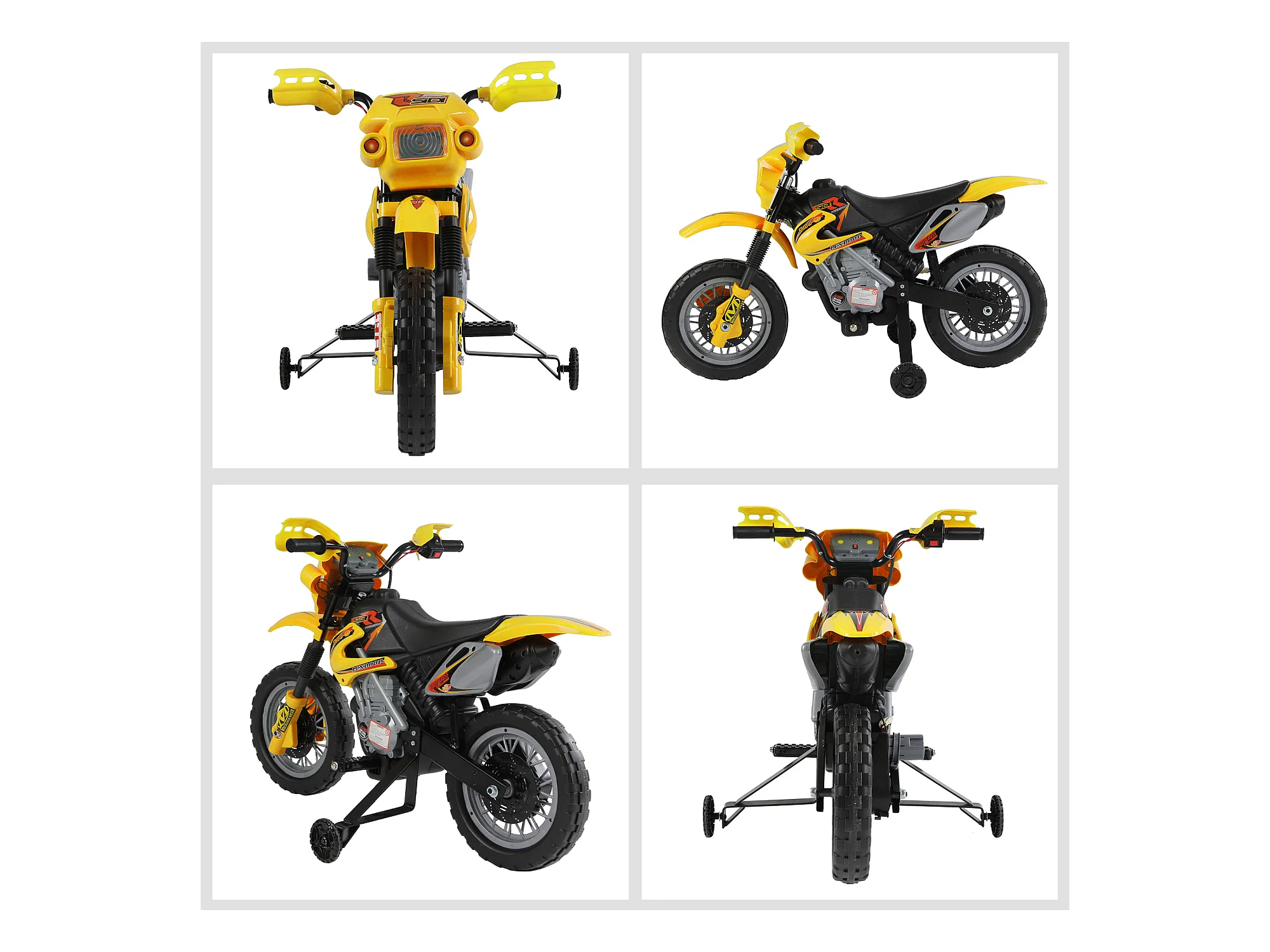 Moto da cross per bambini da 3 anni in su 6v con rotelle giallo