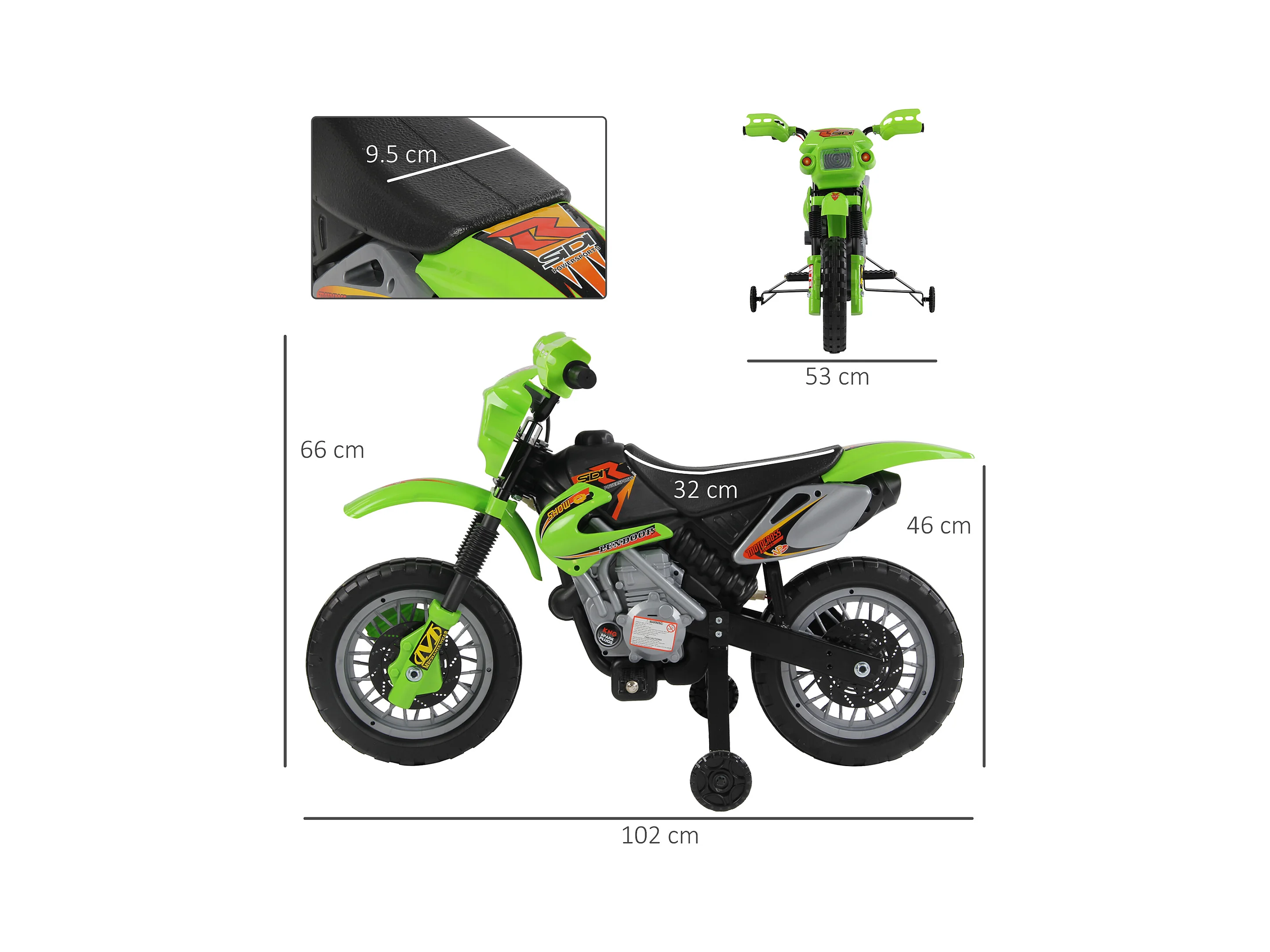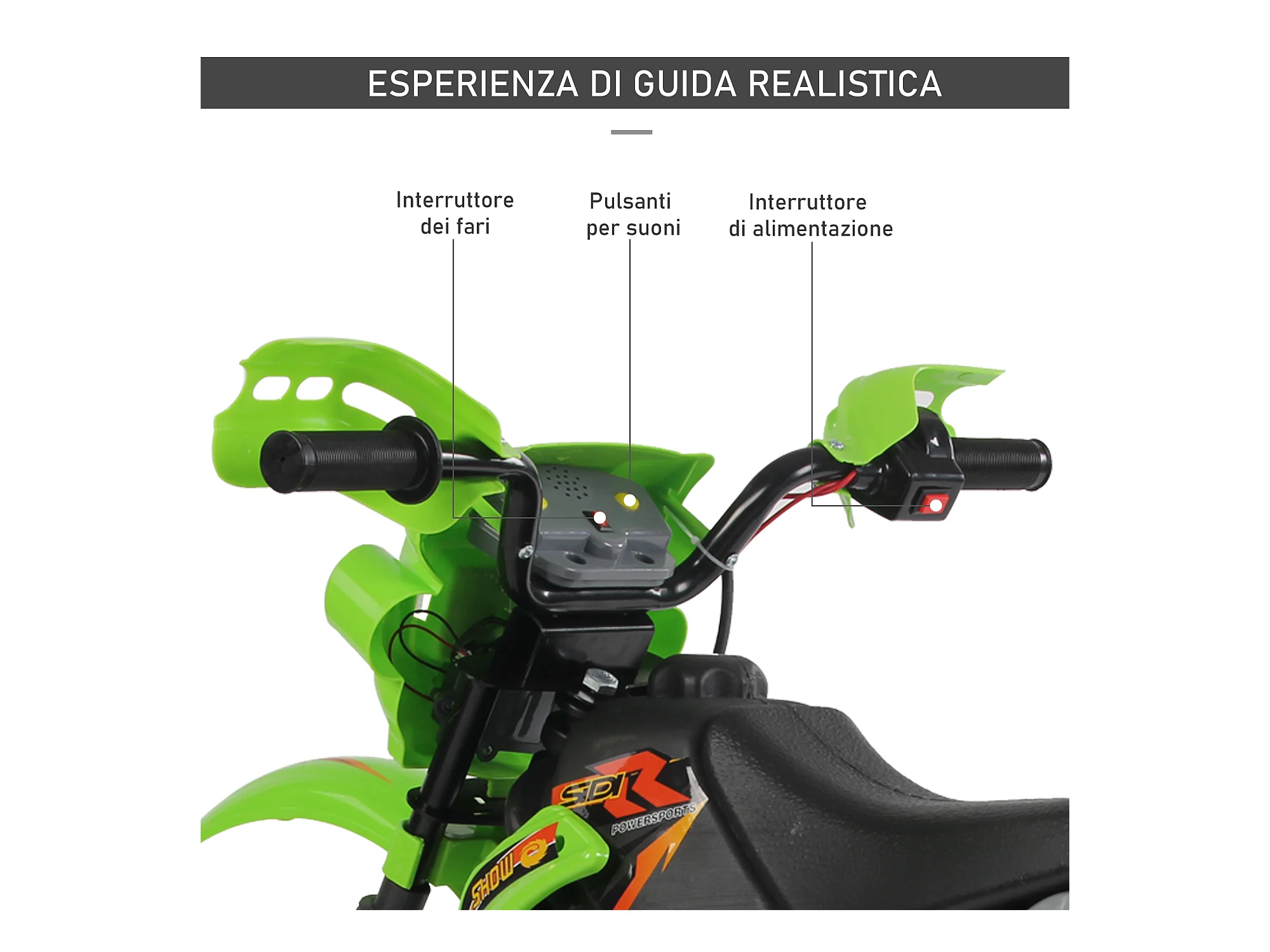 Moto da cross per bambini da 3 anni in su 6v con rotelle verde