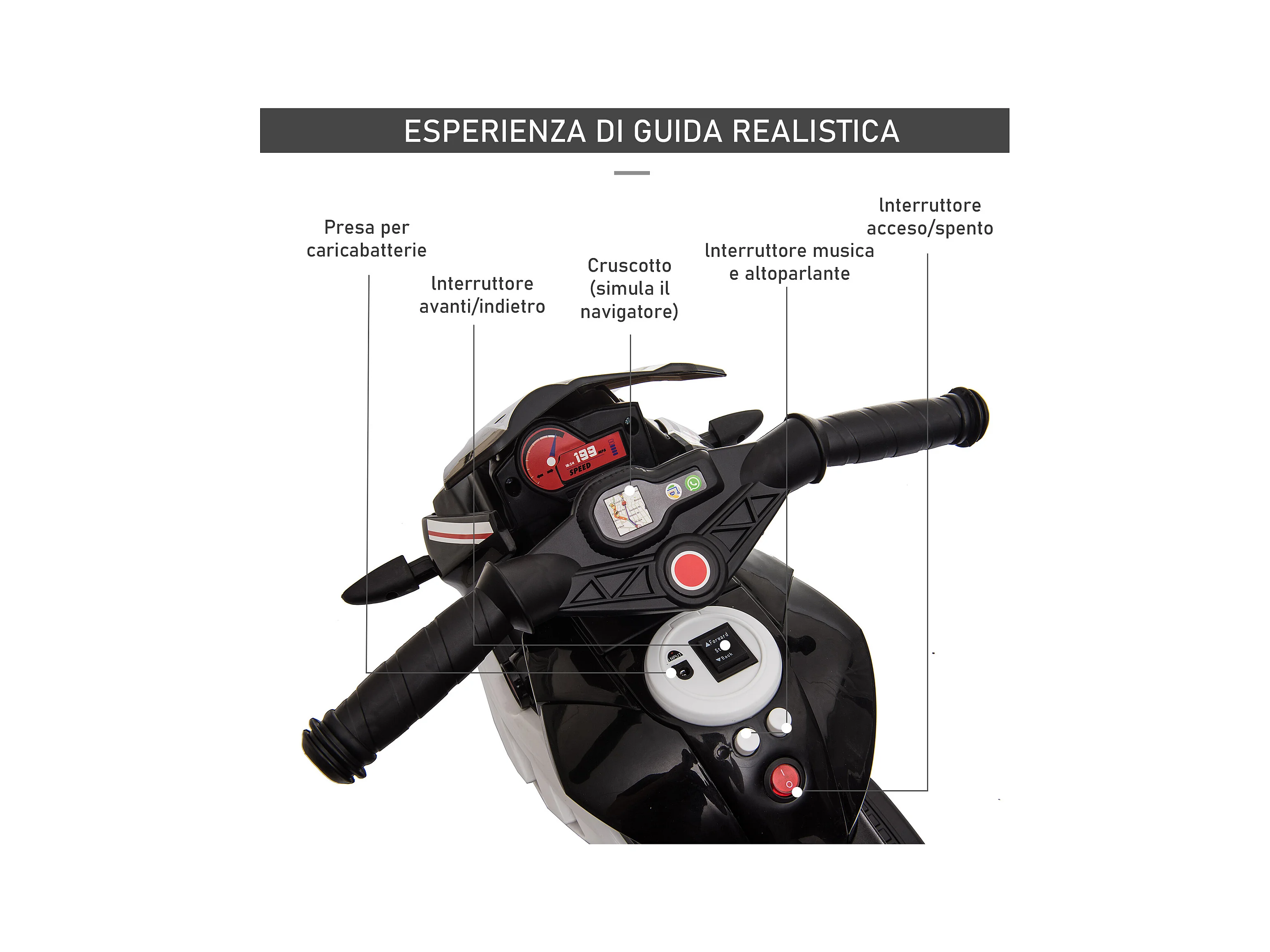 Moto elettrica per bambini 3-5 anni rotelle clacson e musica