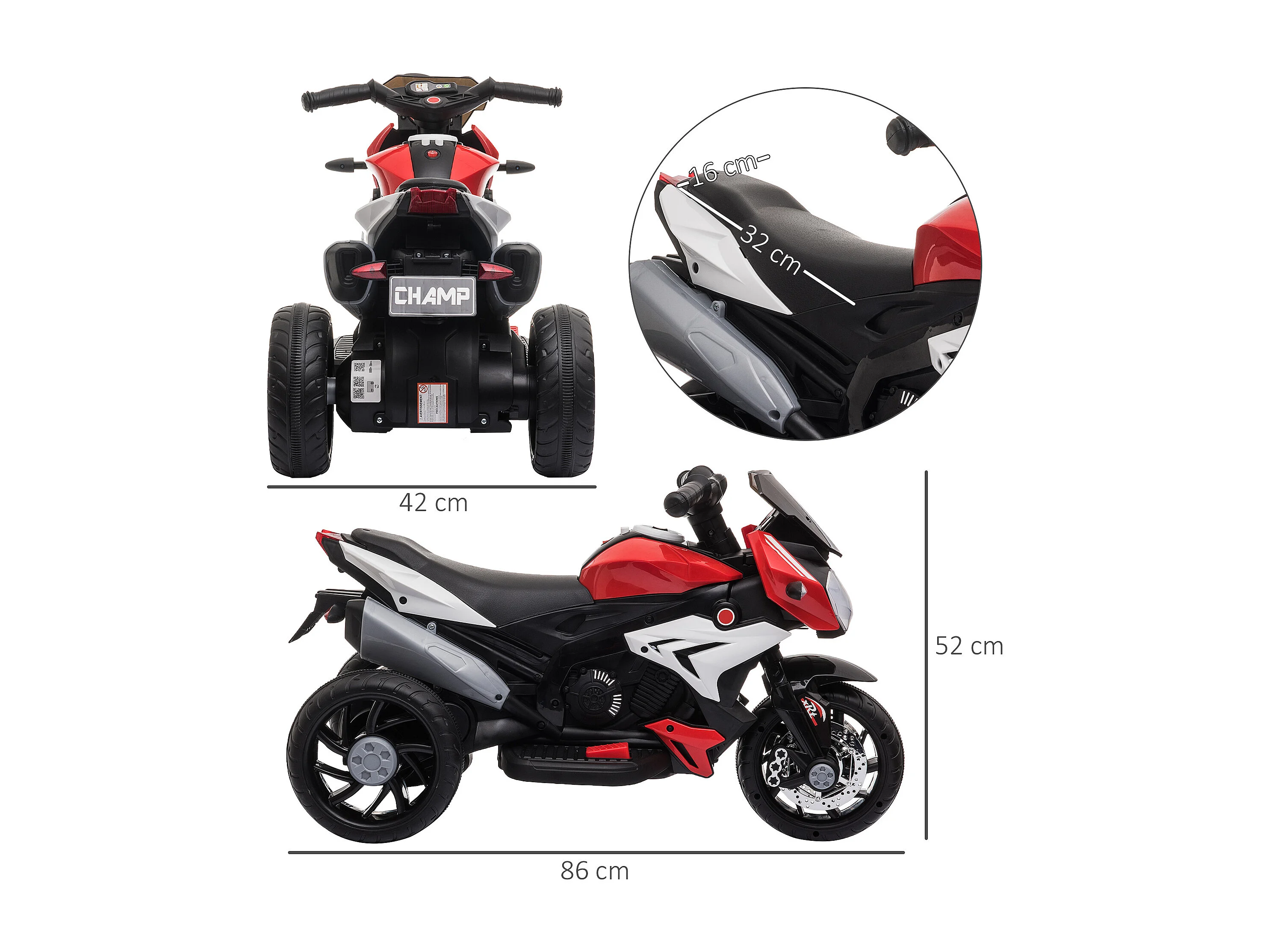 Moto elettrica bimbi 3-5 anni batteria 6v velocità 3km/h rossa