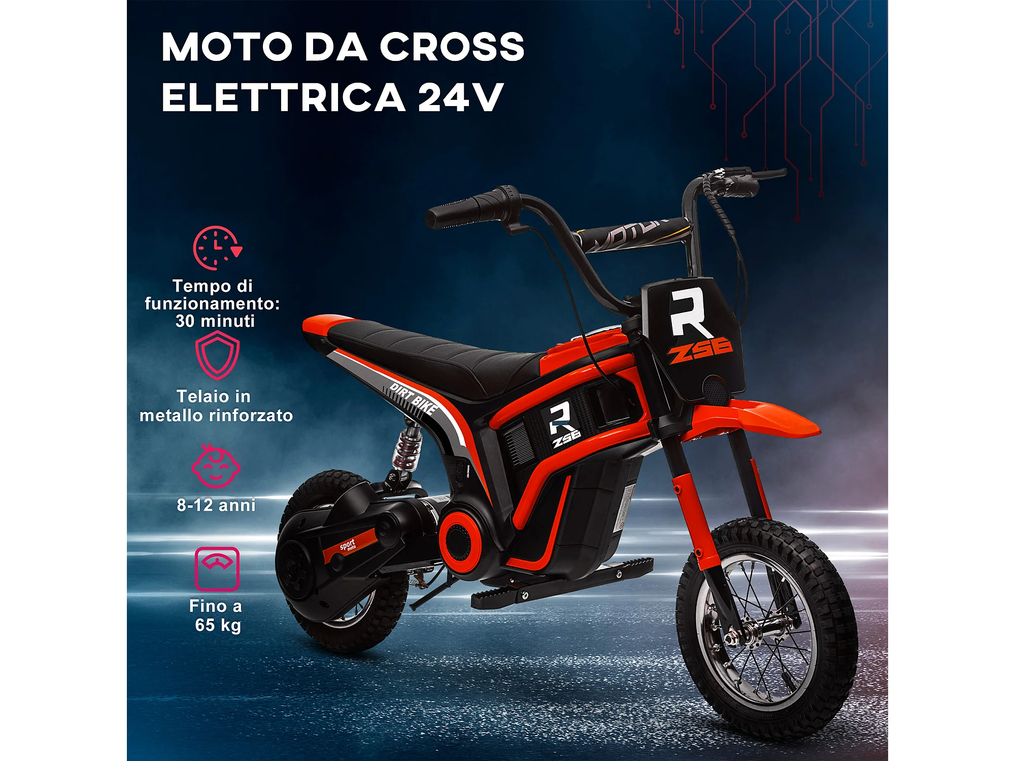 Moto elettrica per bambini 2 velocità 8-16km/h età 8-12 anni rosso