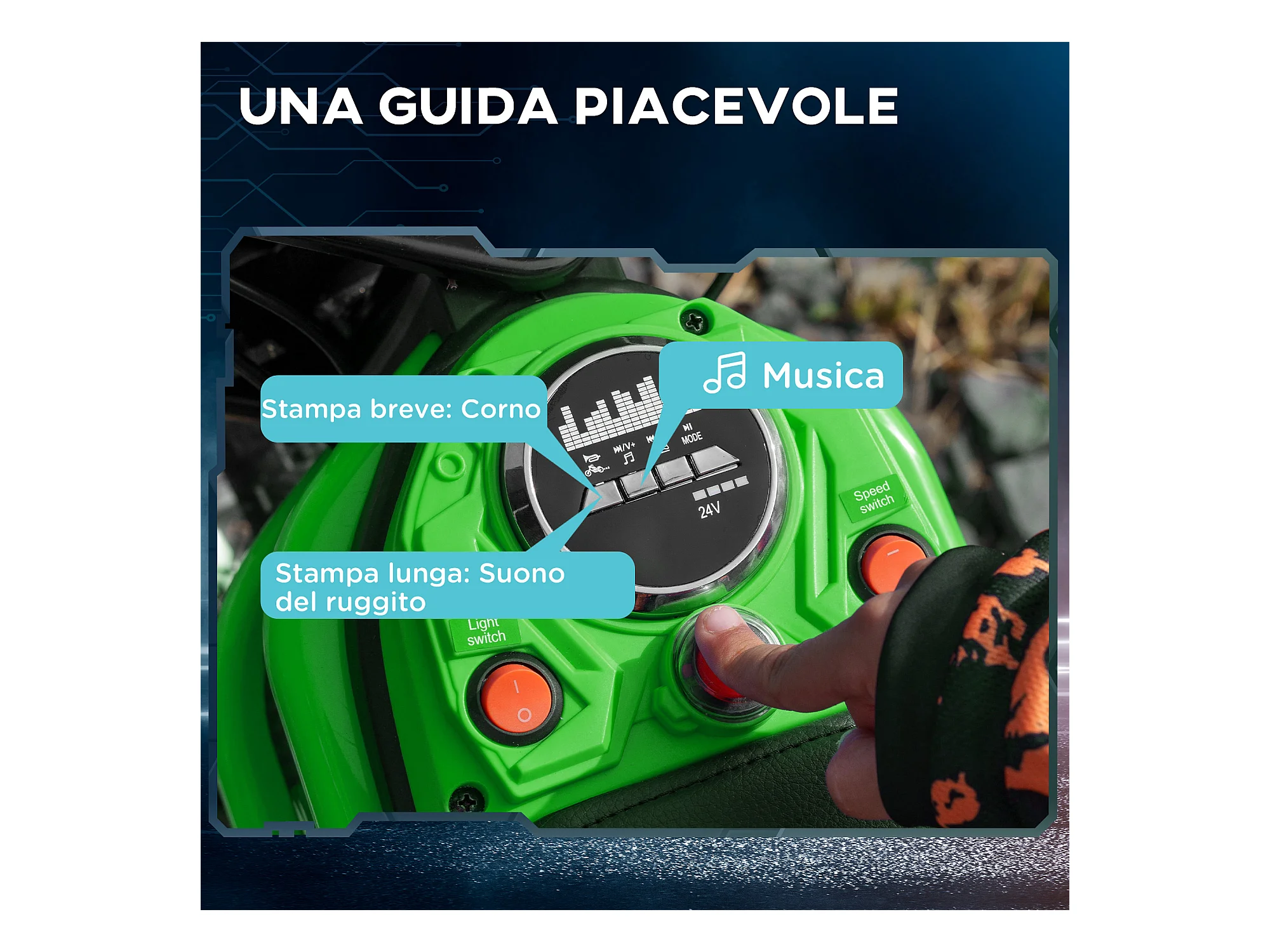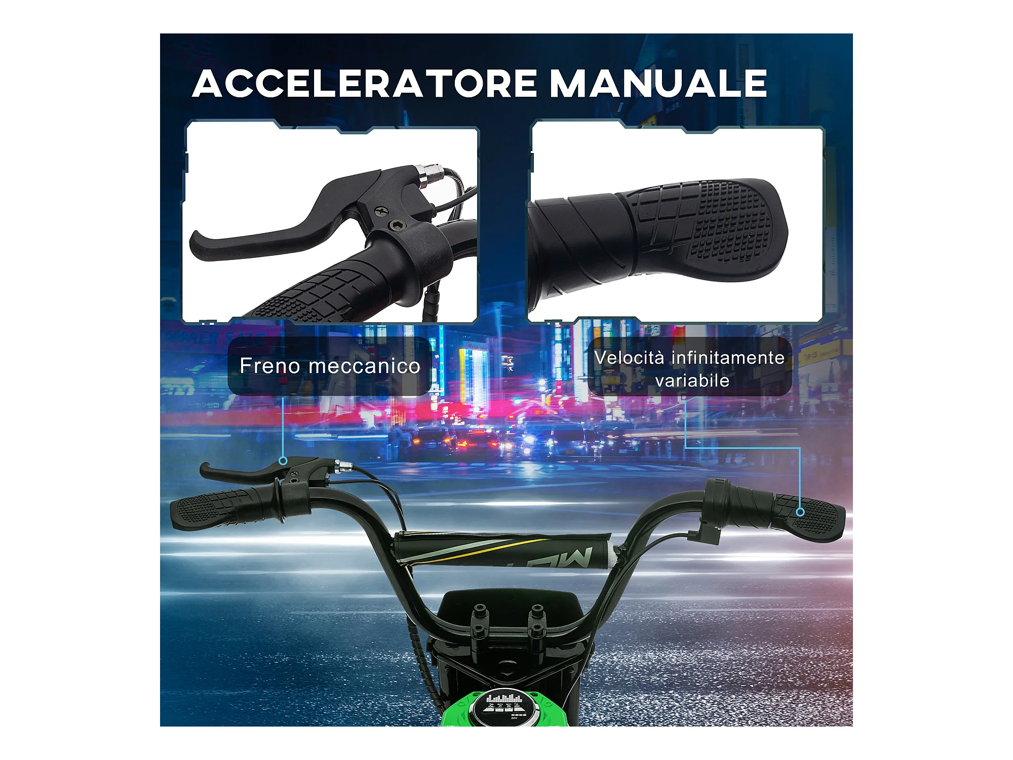 Moto elettrica per bambini 2 velocità 8-16km/h età 8-12 anni verde