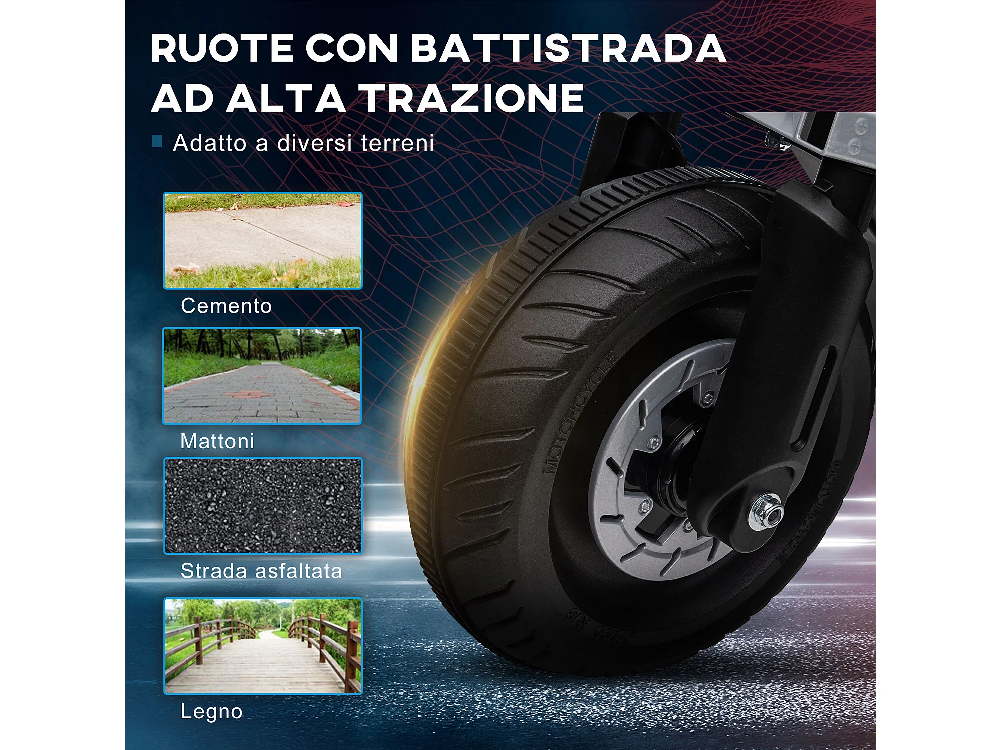 Moto elettrica per bambini 3-5 anni rotelle clacson e musica