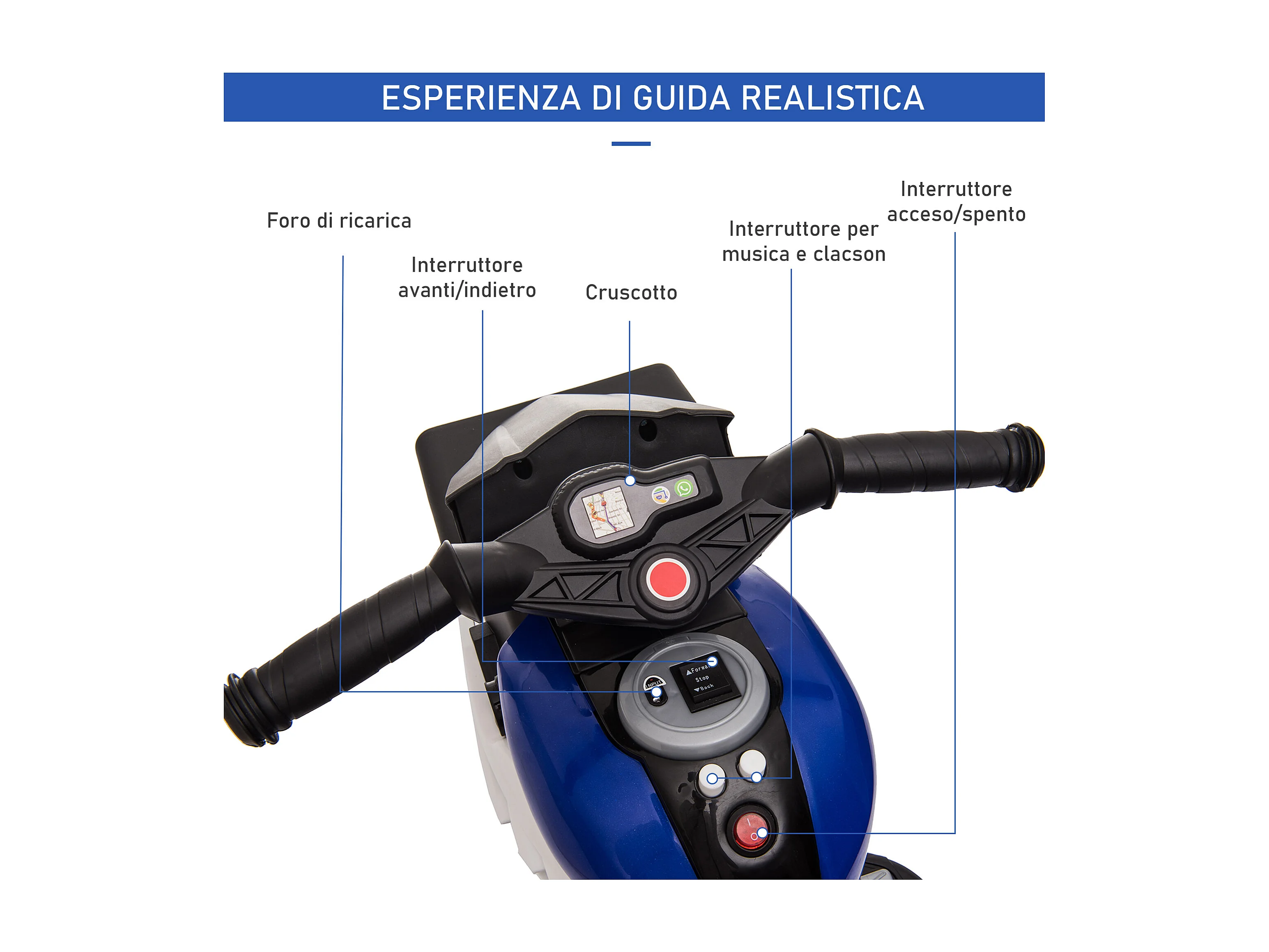 Moto elettrica per bambini 3-6 anni con 3 ruote batteria 6v blu