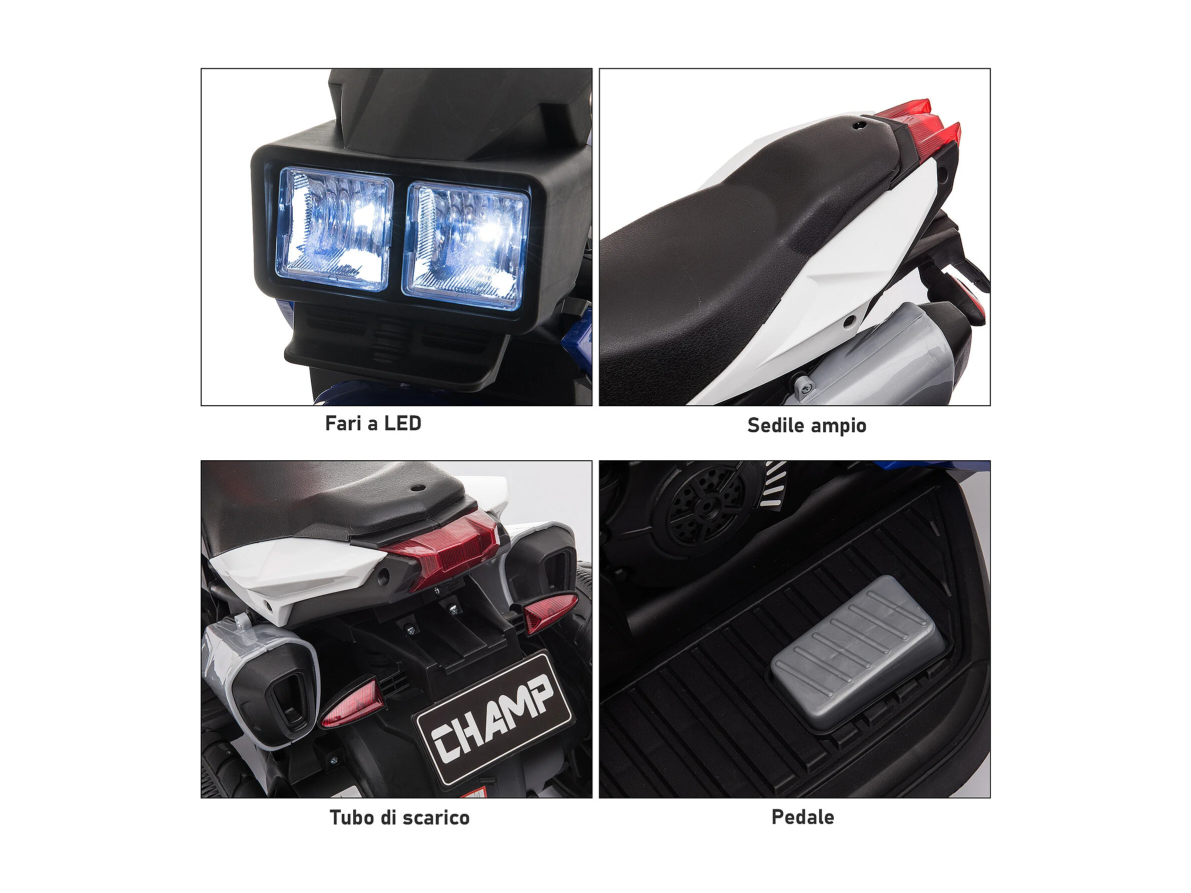 Moto elettrica per bambini 18-36 mesi con rotelle e fanale bianco nero
