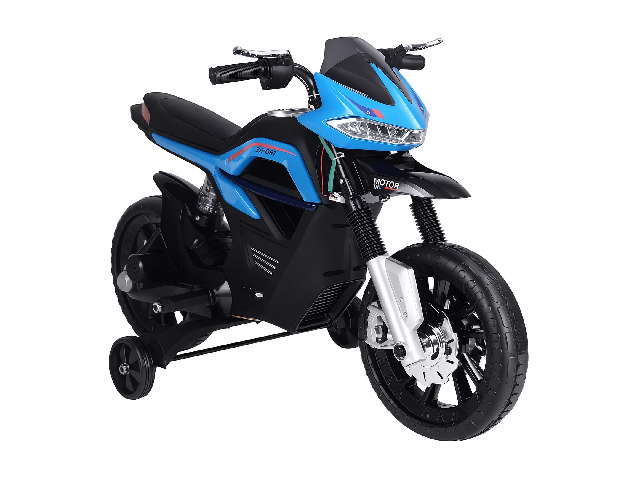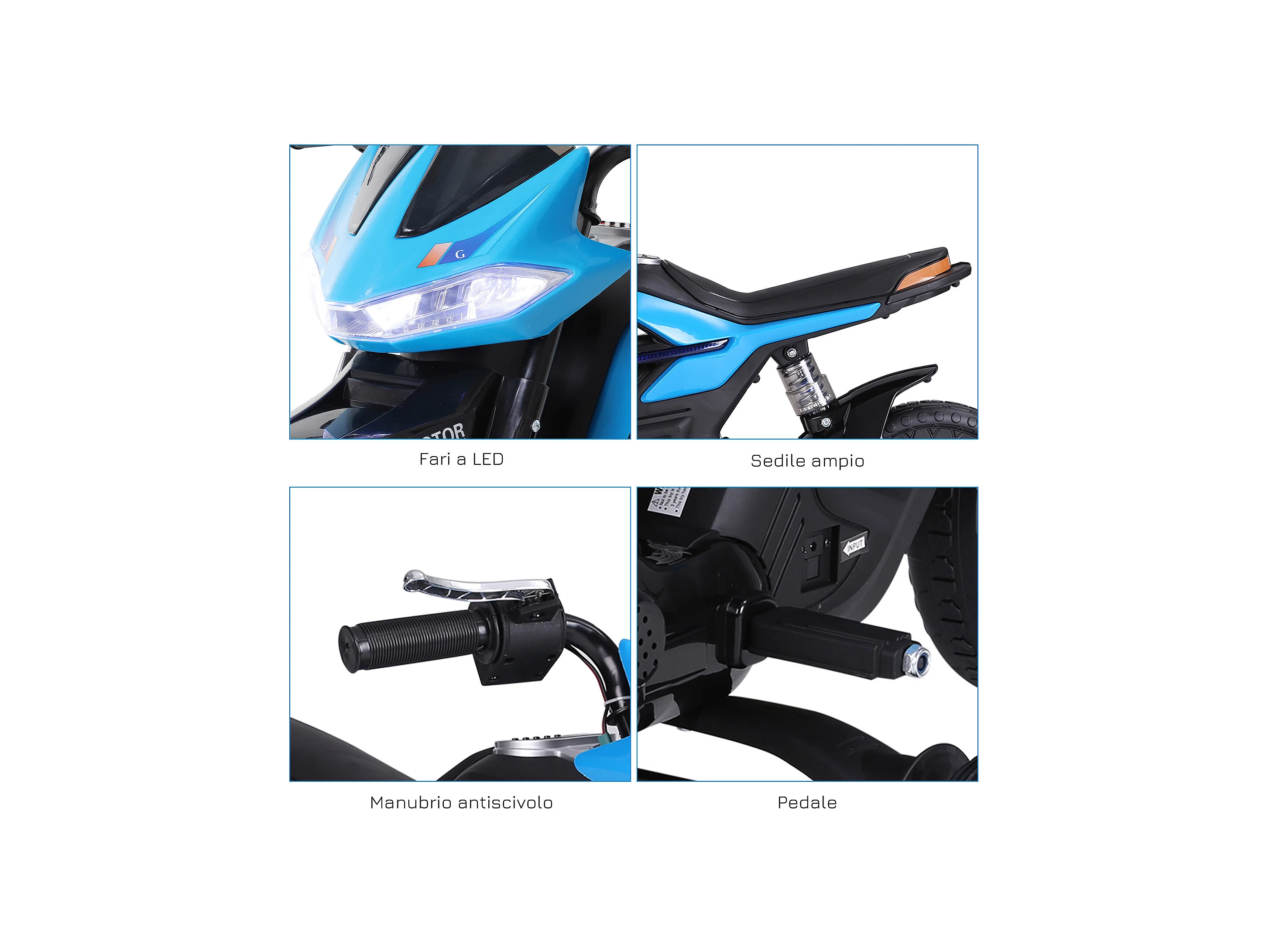 Moto elettrica per bambini 6v con rotelle e fari azzurro e nero