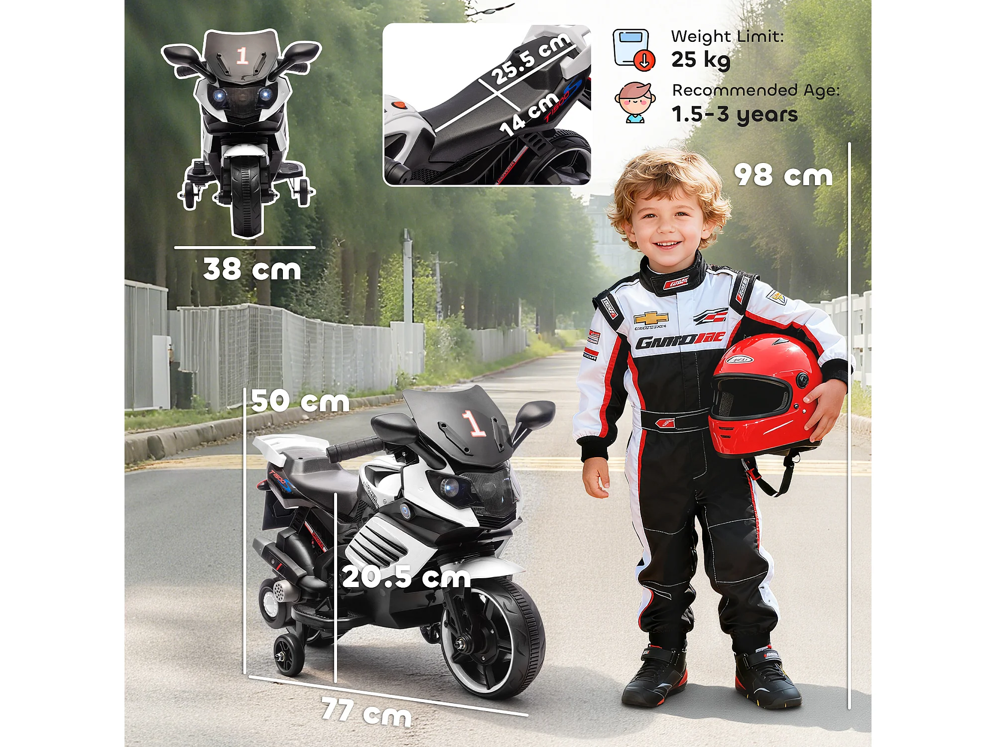 Moto elettrica per bambini 6v con rotelle luci e musica bianco