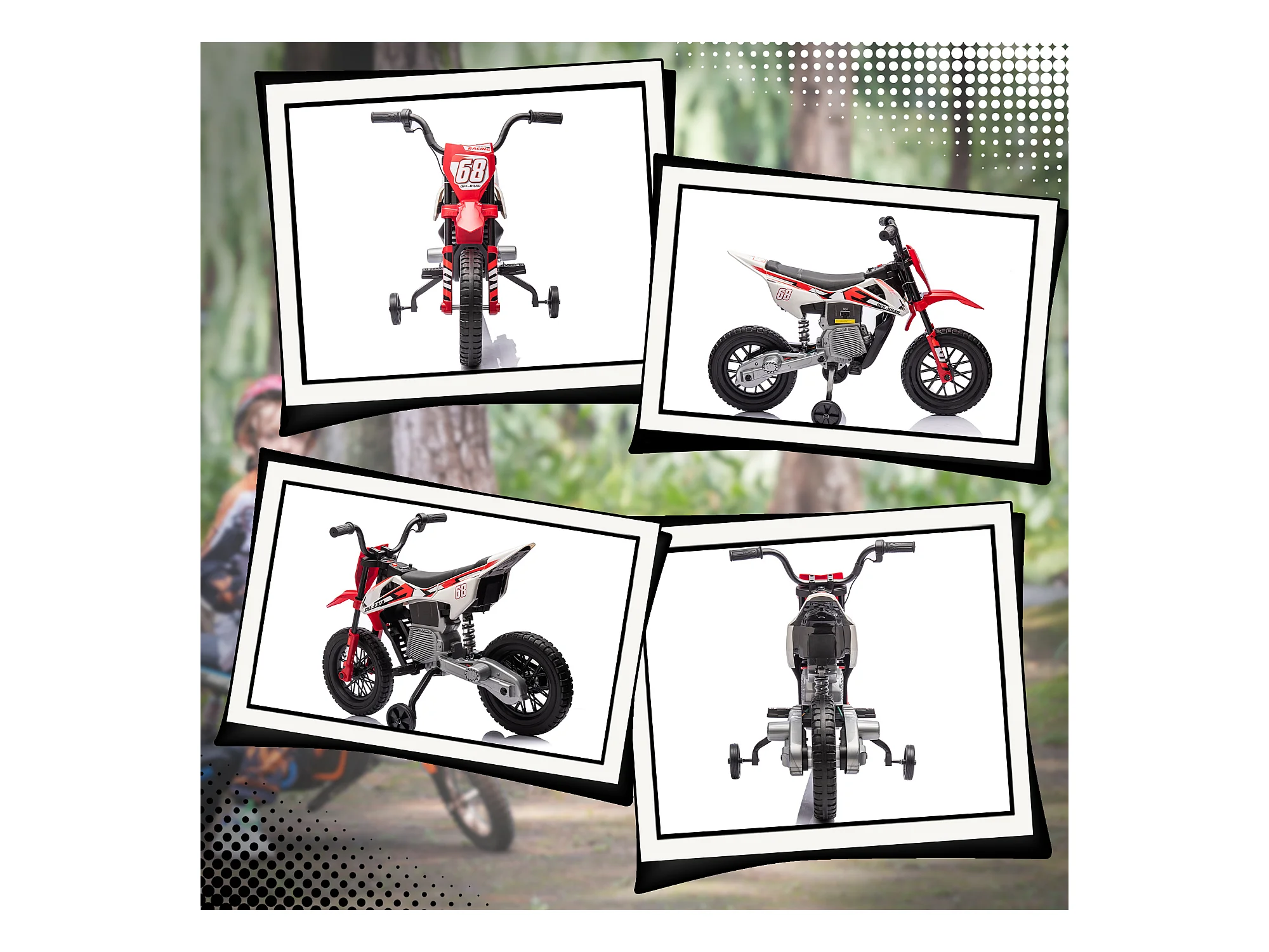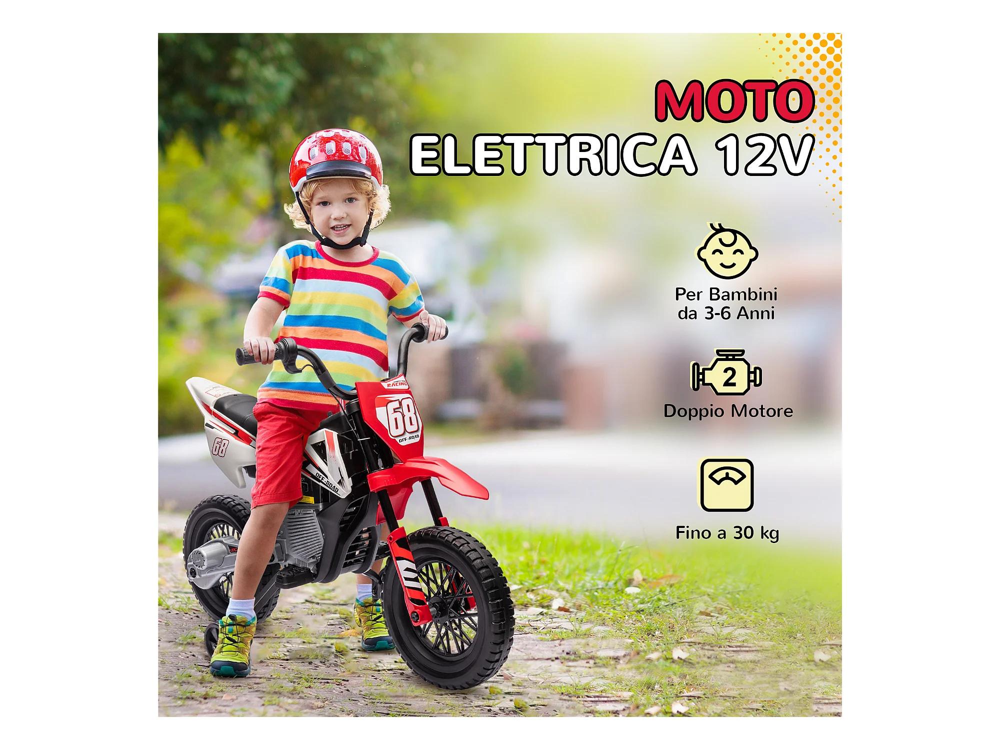 Moto elettrica per bambini con rotelle in pp e metallo rosso