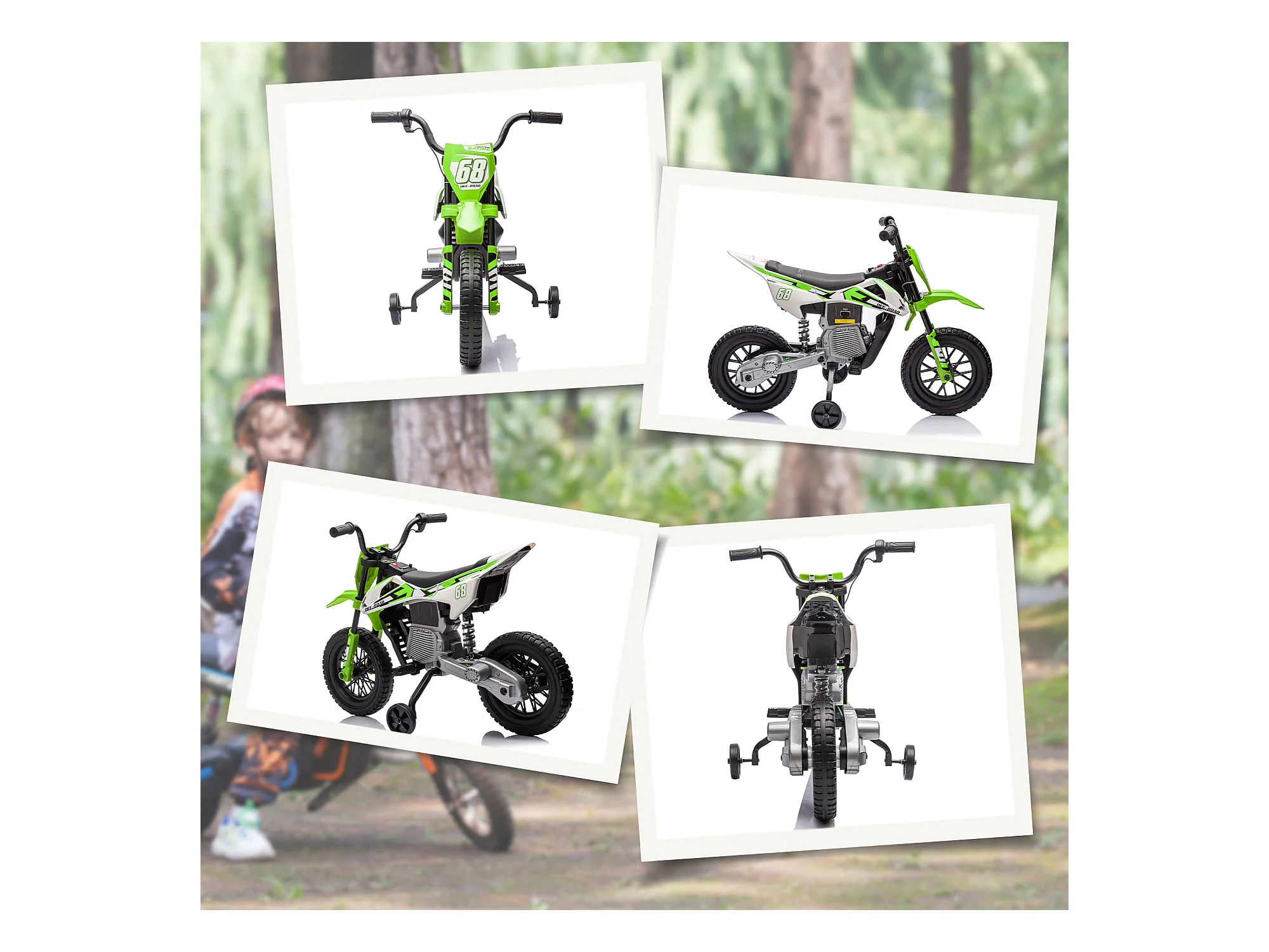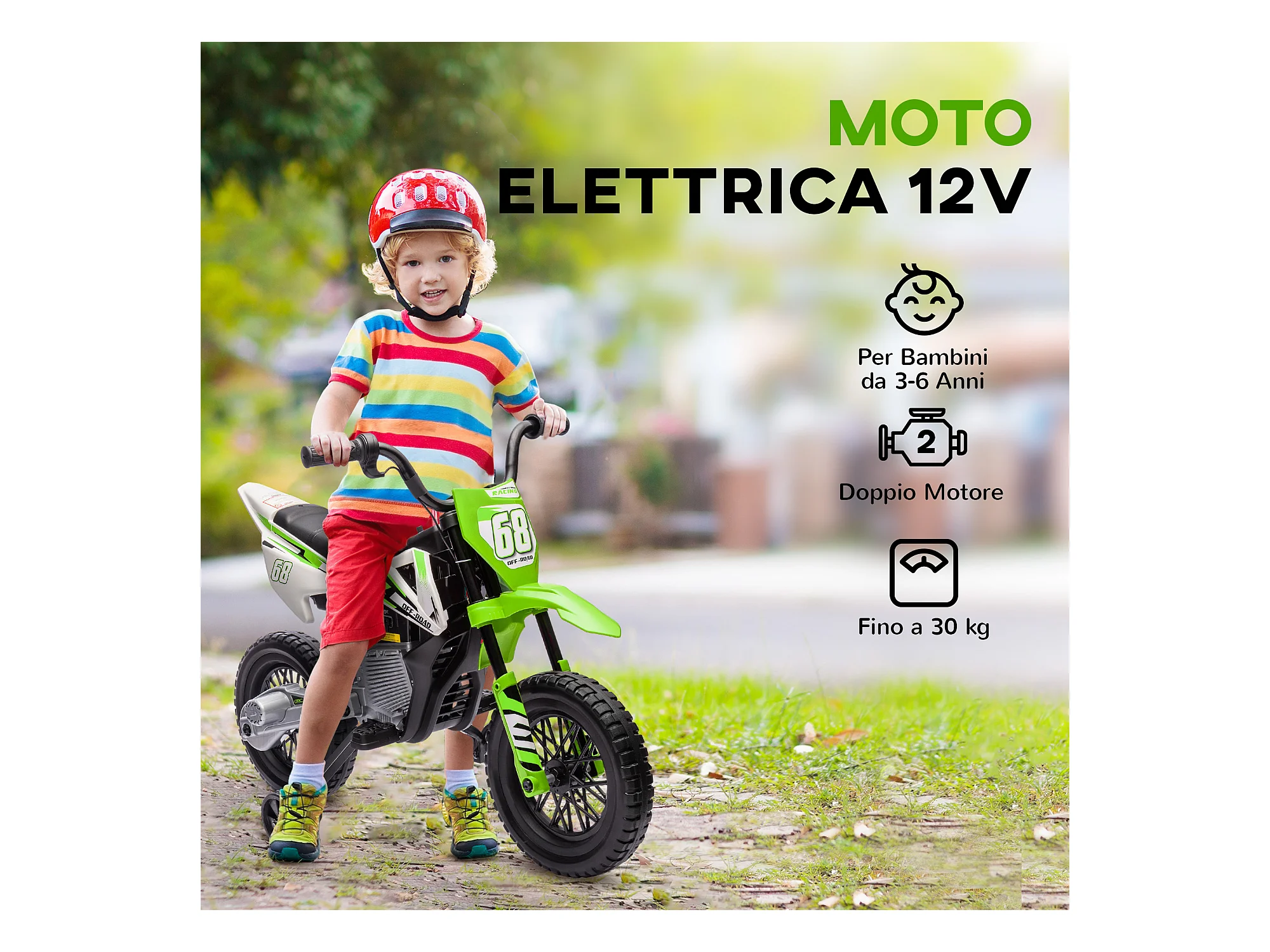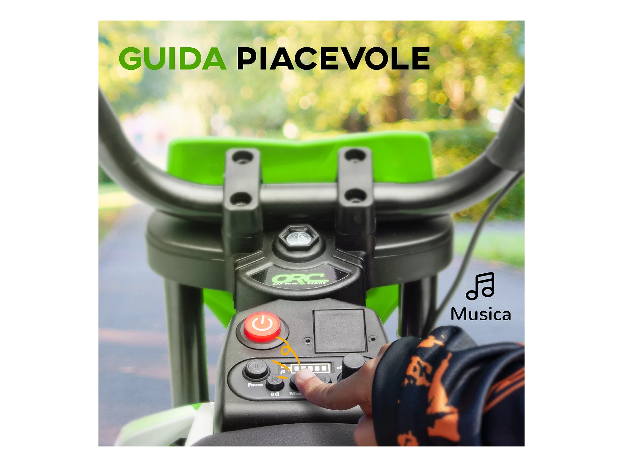 Moto elettrica per bambini con rotelle in pp e metallo verde
