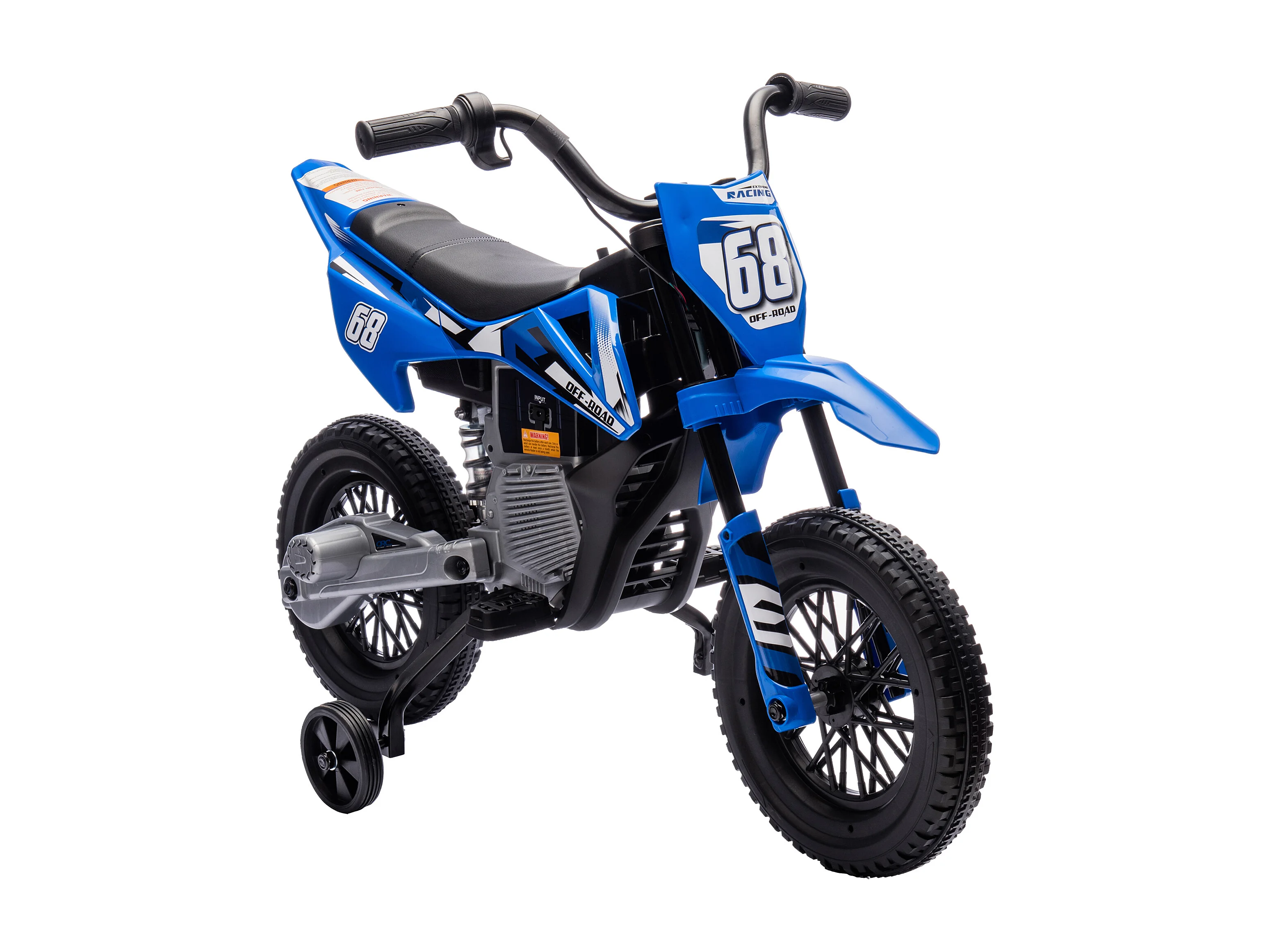 Moto elettrica per bambini con rotelle rimovibili e suoni blu