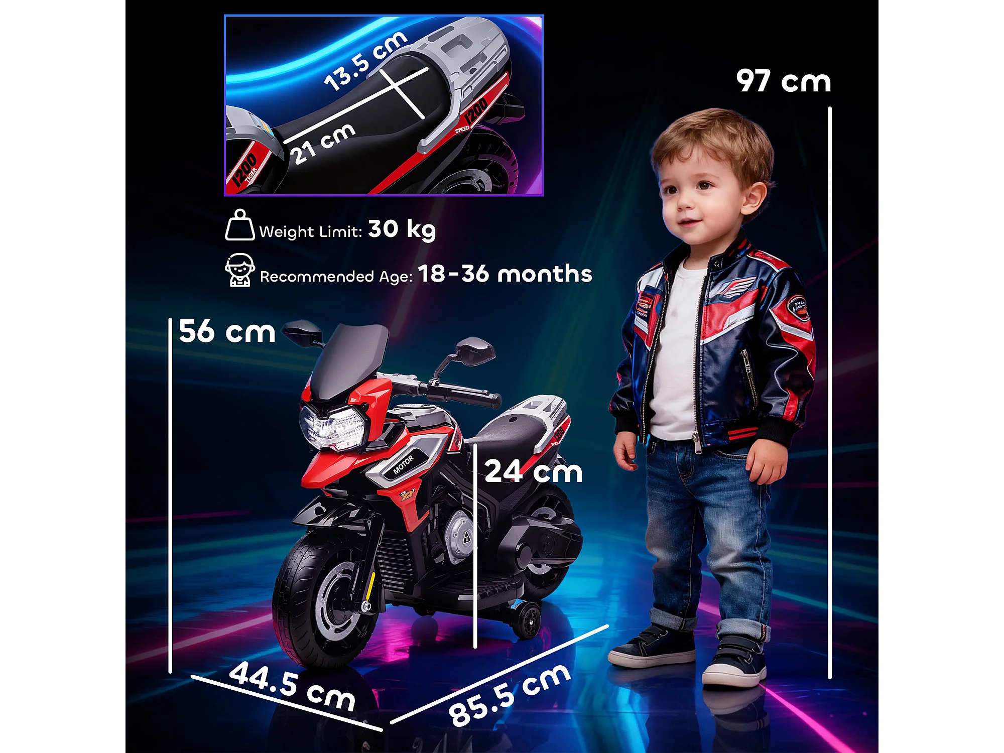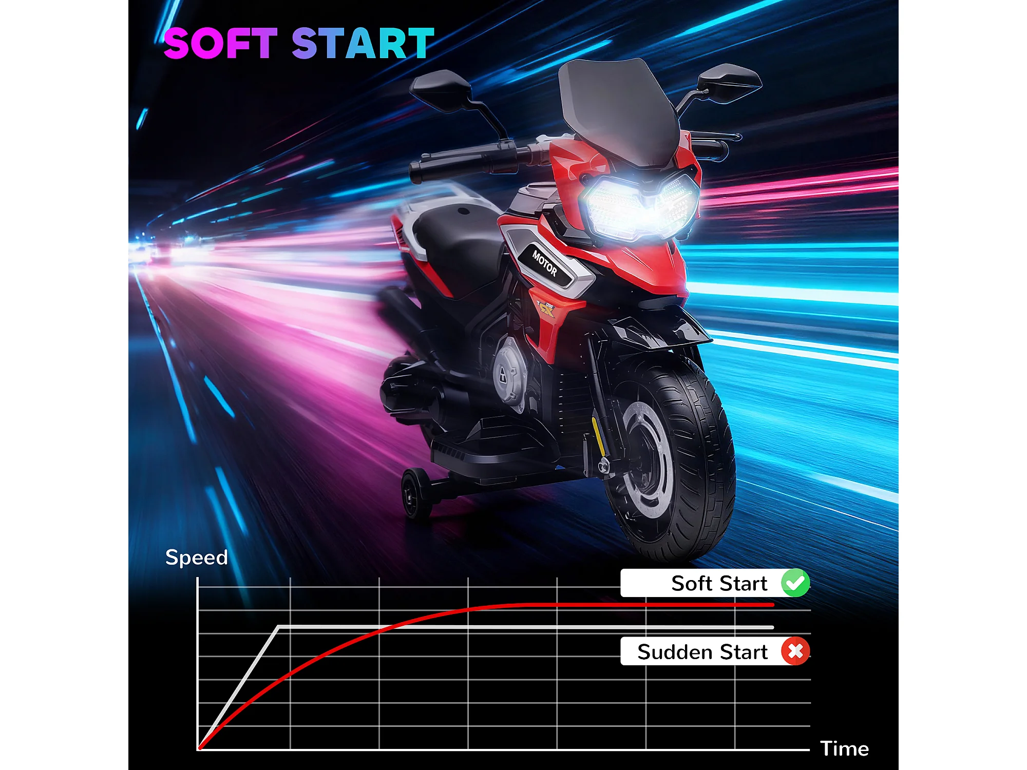 Moto Giocattolo con Rotelle, Specchietti e Poggiapiedi rosso