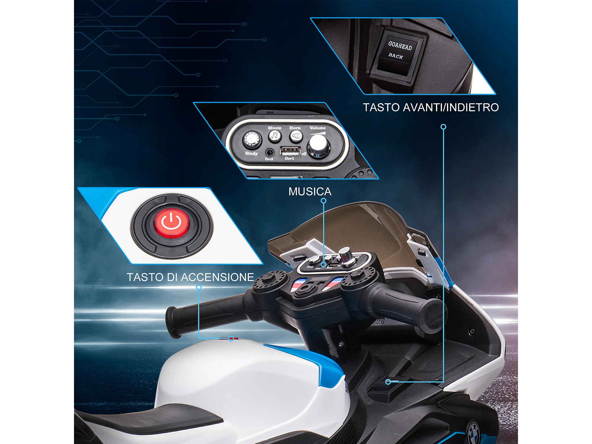 Moto per bambini 18-60 mesi con fari musica e pedali blu