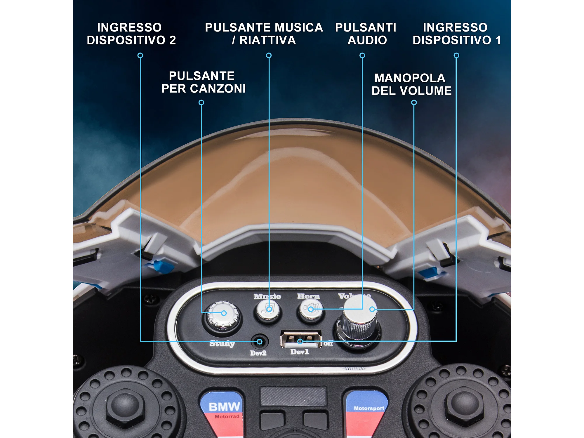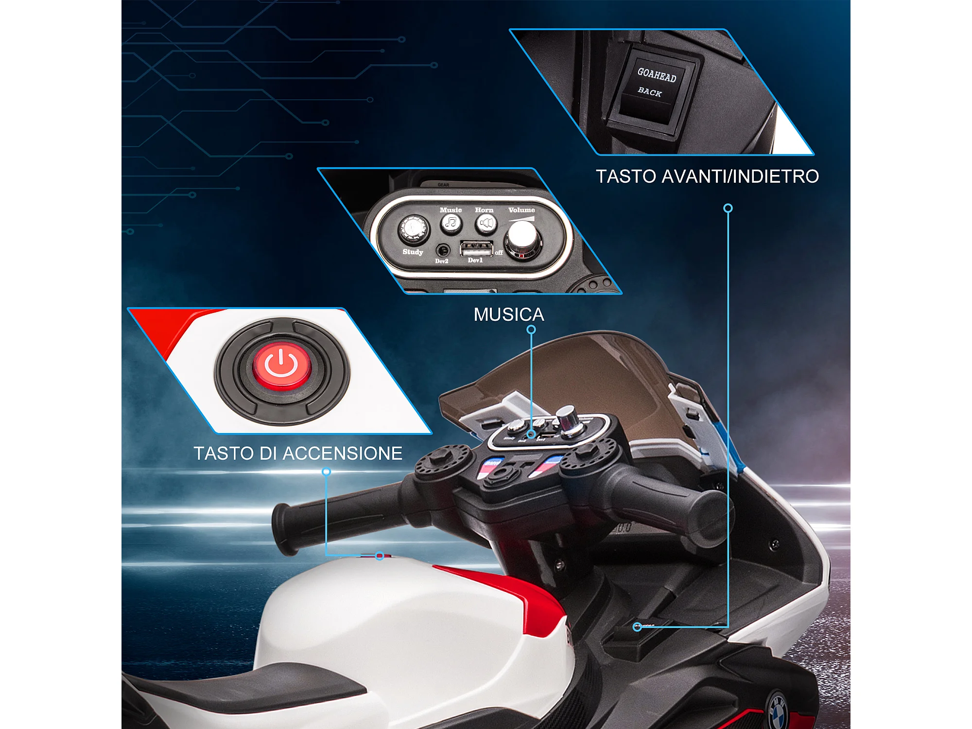 Macchina elettrica per bambini con clacson musica e telecomando