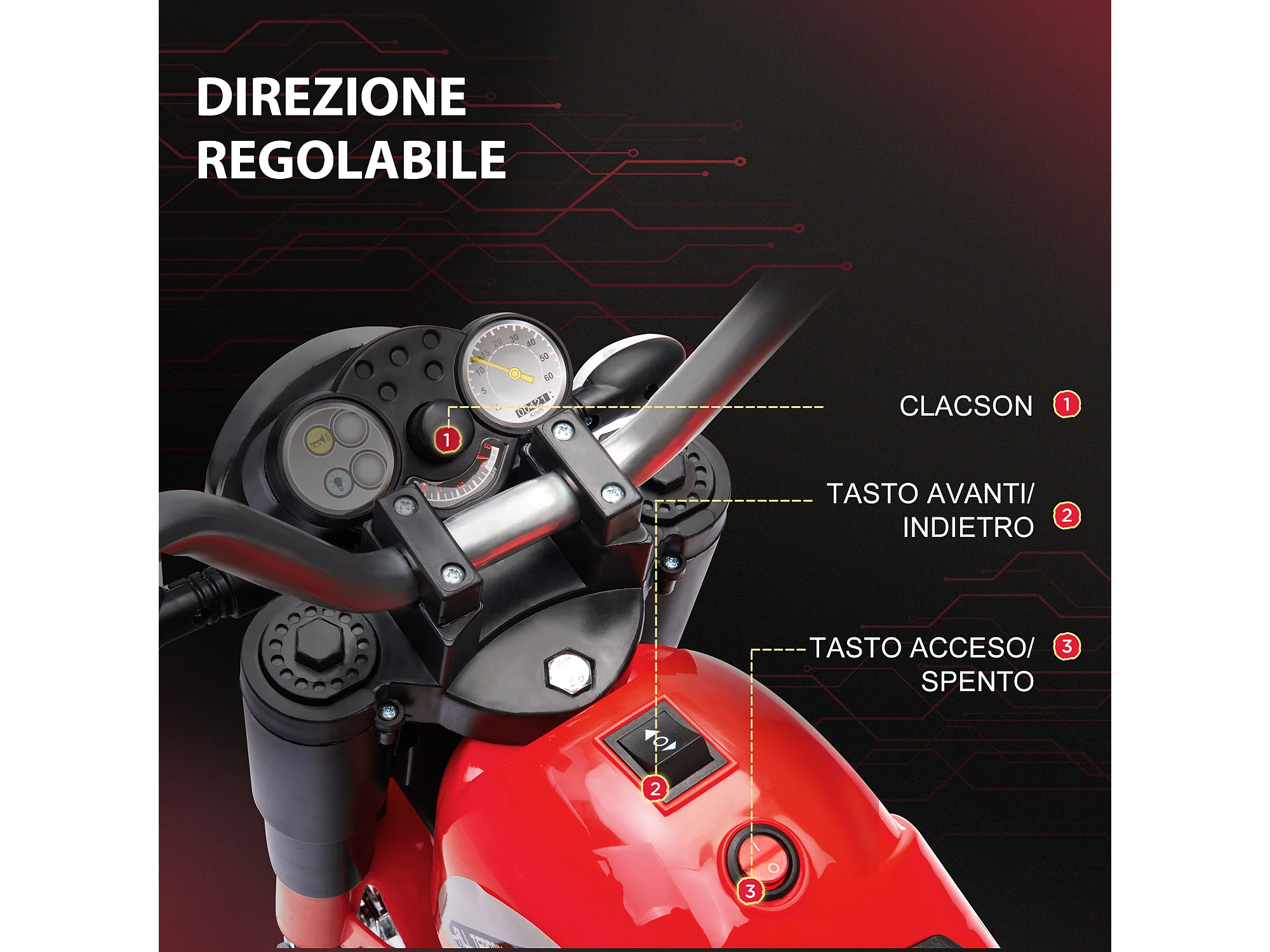 Moto elettrica per bambini con rotelle in pp e metallo rosso