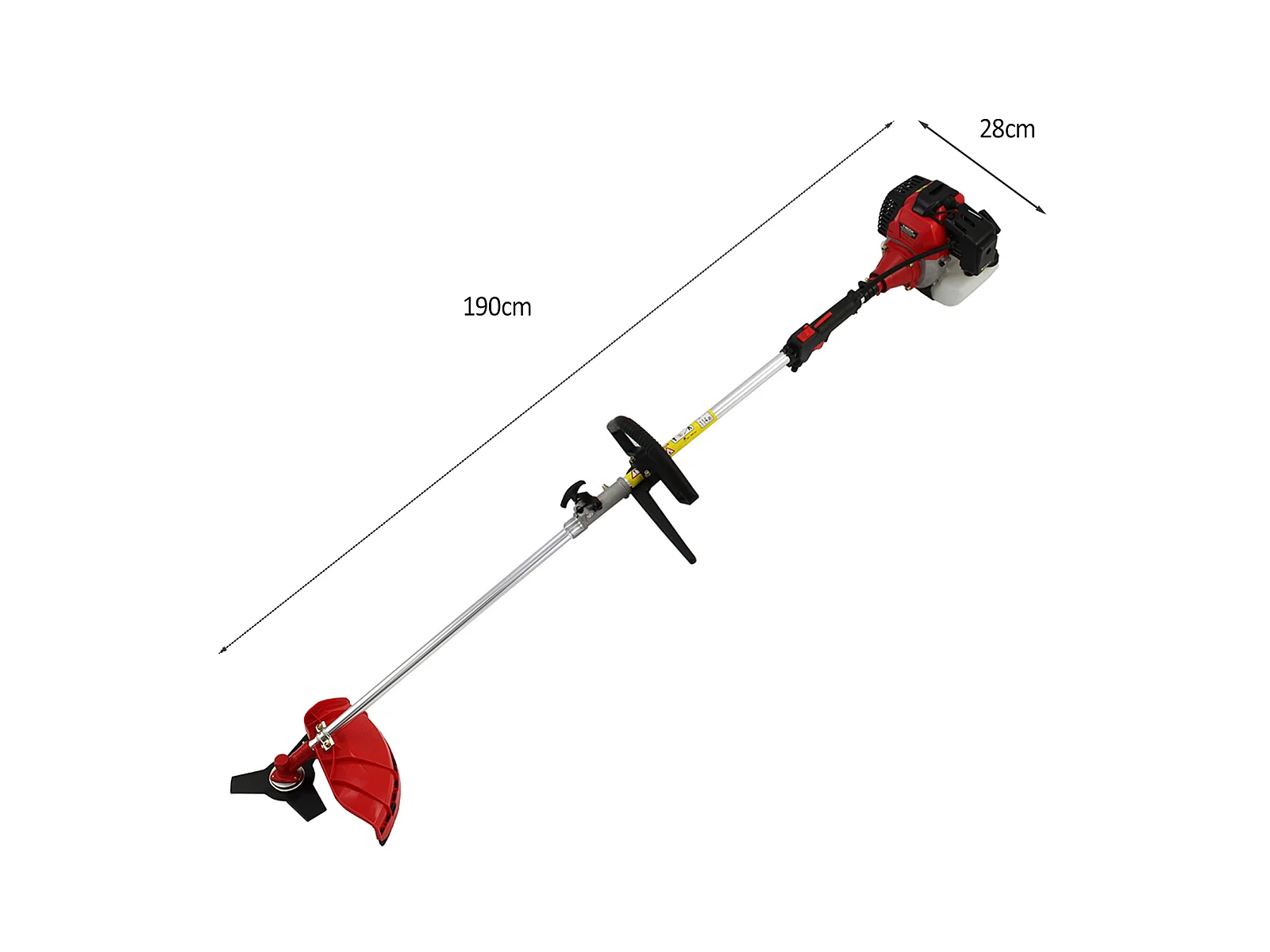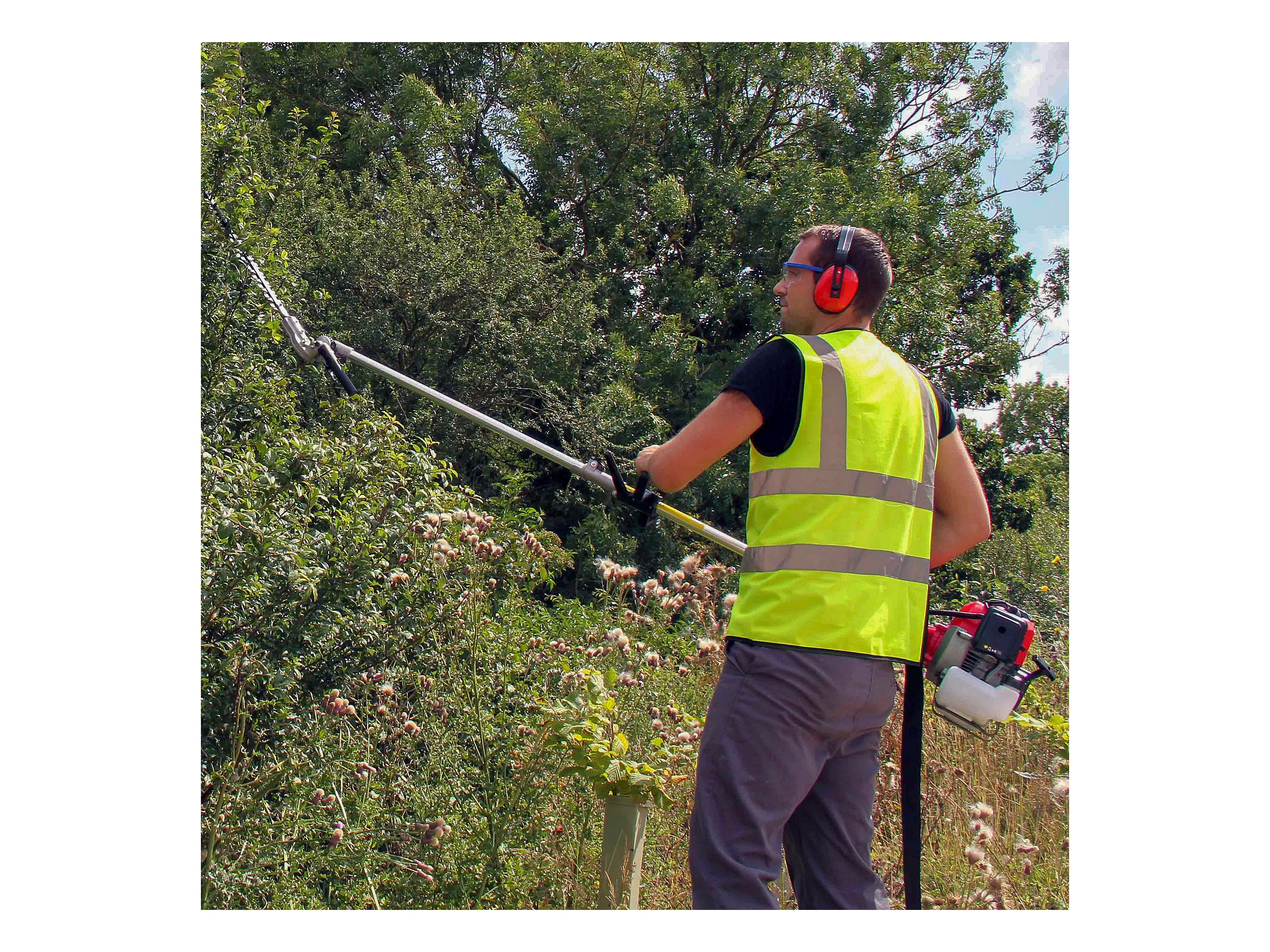 Multiutensile 5 in 1 con tagliasiepi, motosega, tagliaerba, decespugliatore e prolunga da 100 cm. Motore a benzina a 2 tempi da 52 cc, Attrezzatura di sicurezza