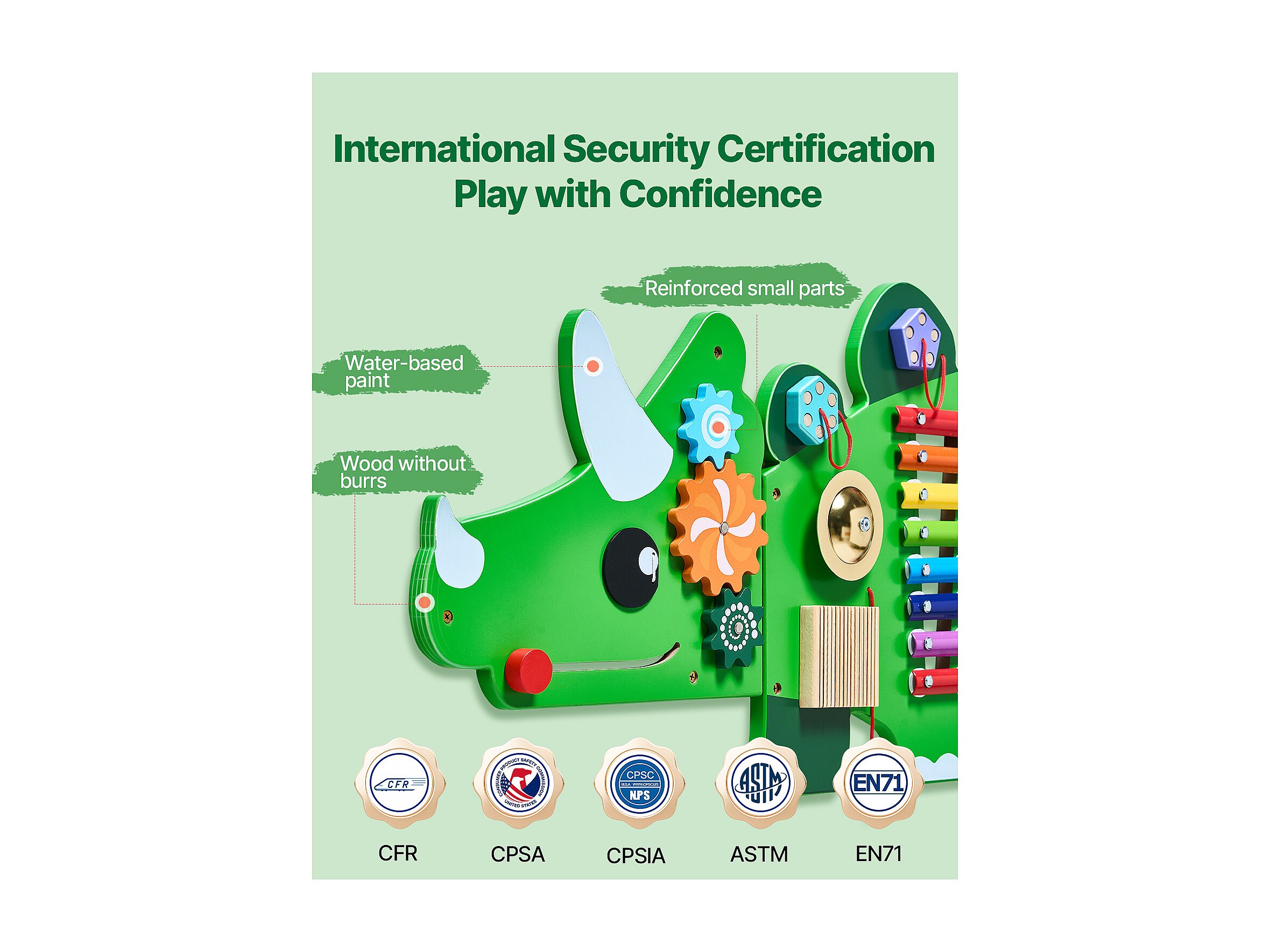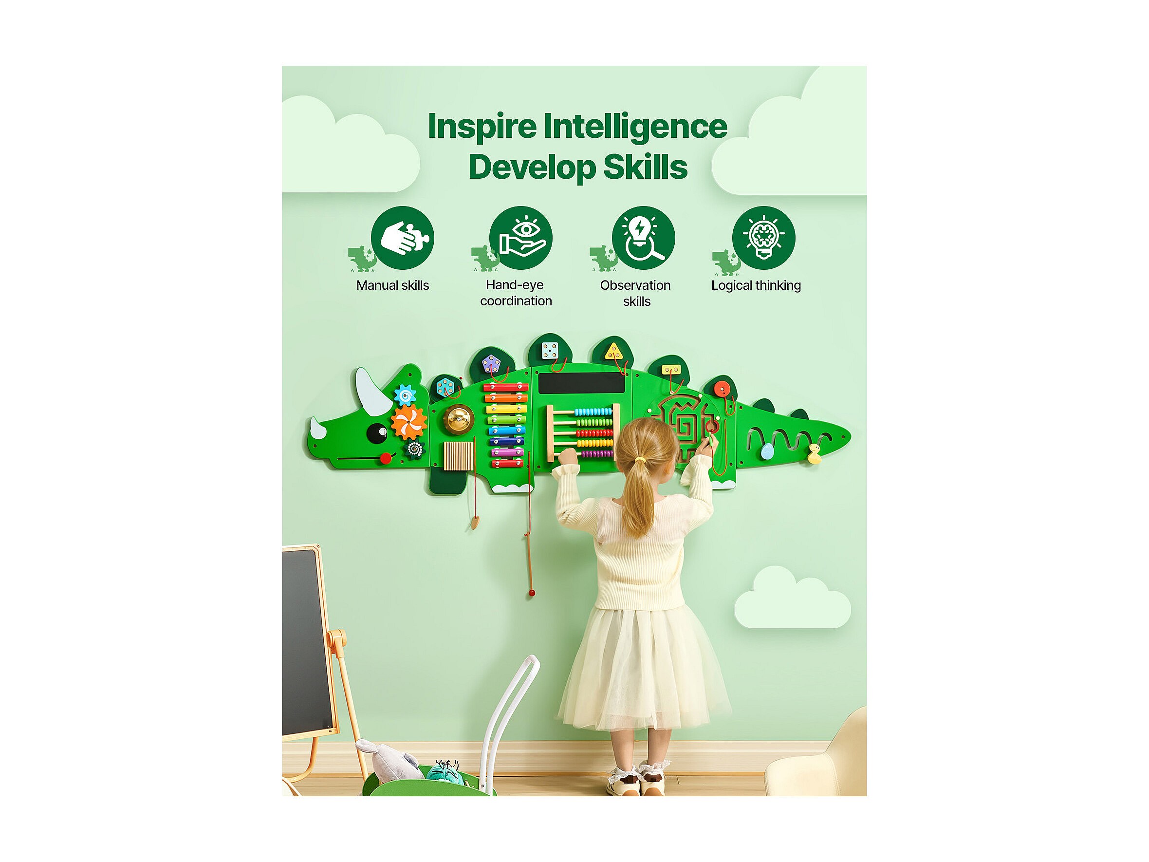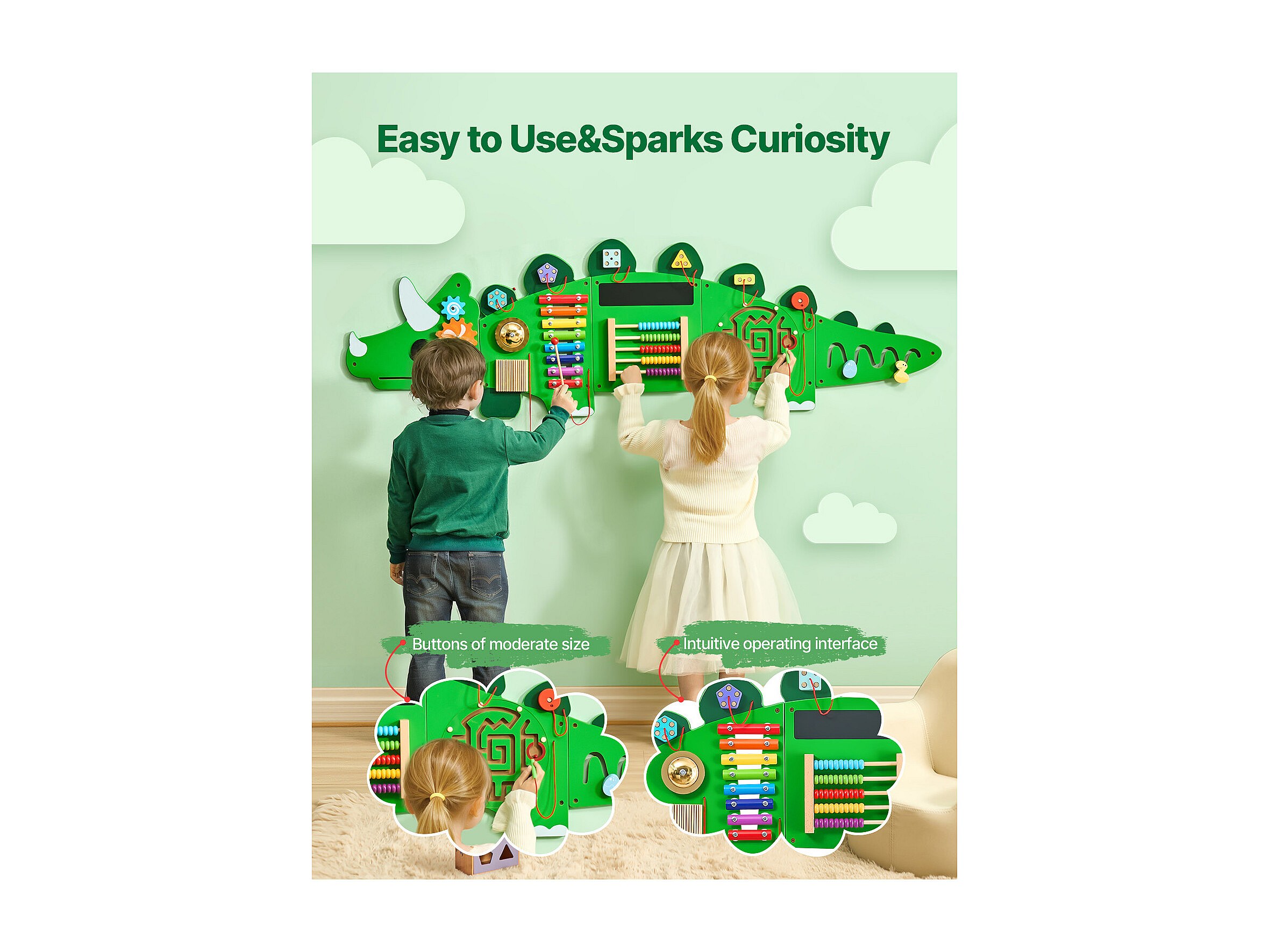 Muro di Attività Sensoriali SucceBuy con Motivi di Dinosauri e 11 Pannelli Avvincenti