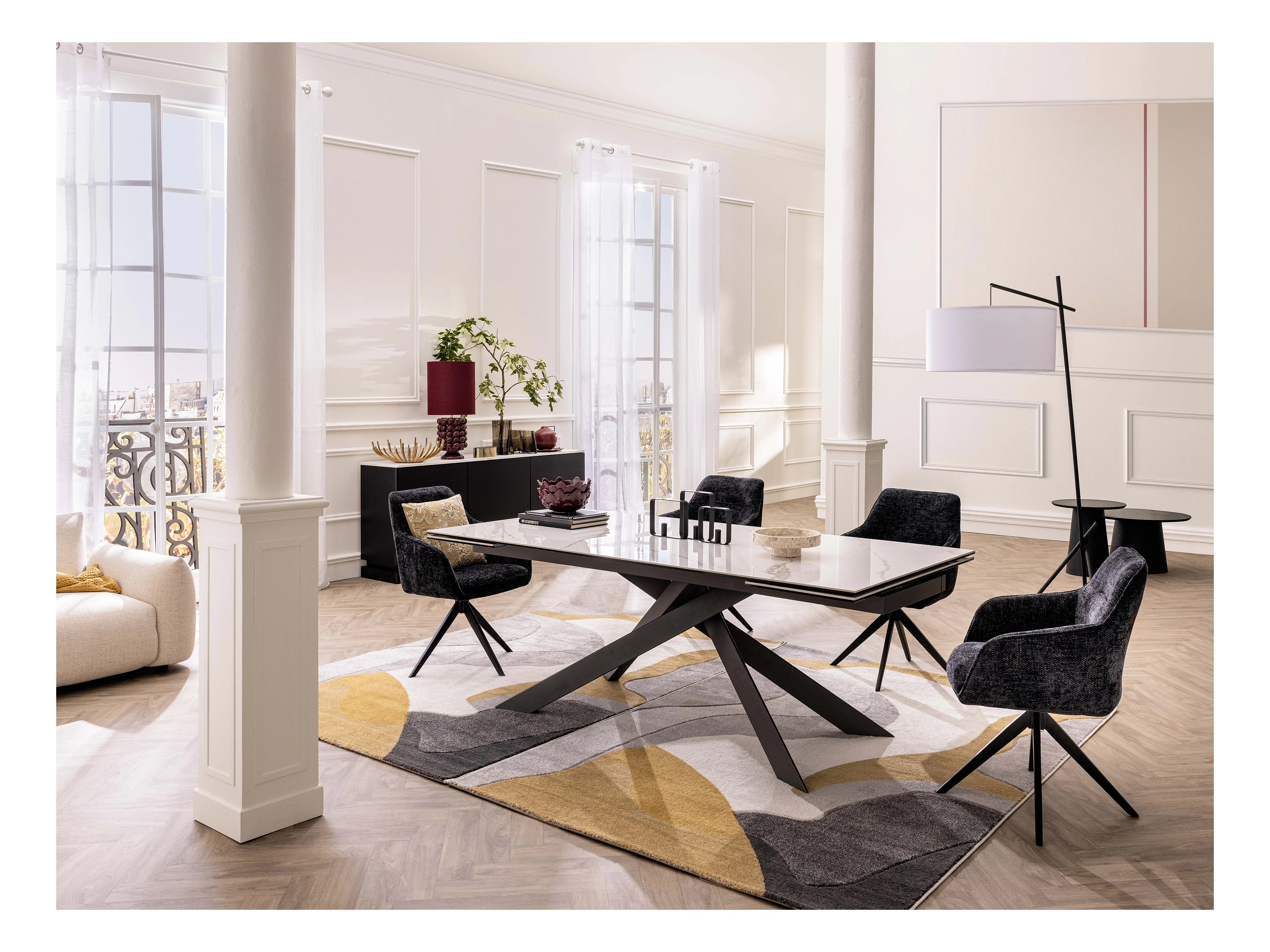 Sedia girevole con braccioli in tessuto testurizzato Nero - Lotto di 6 - MUSE della Maison Céphy