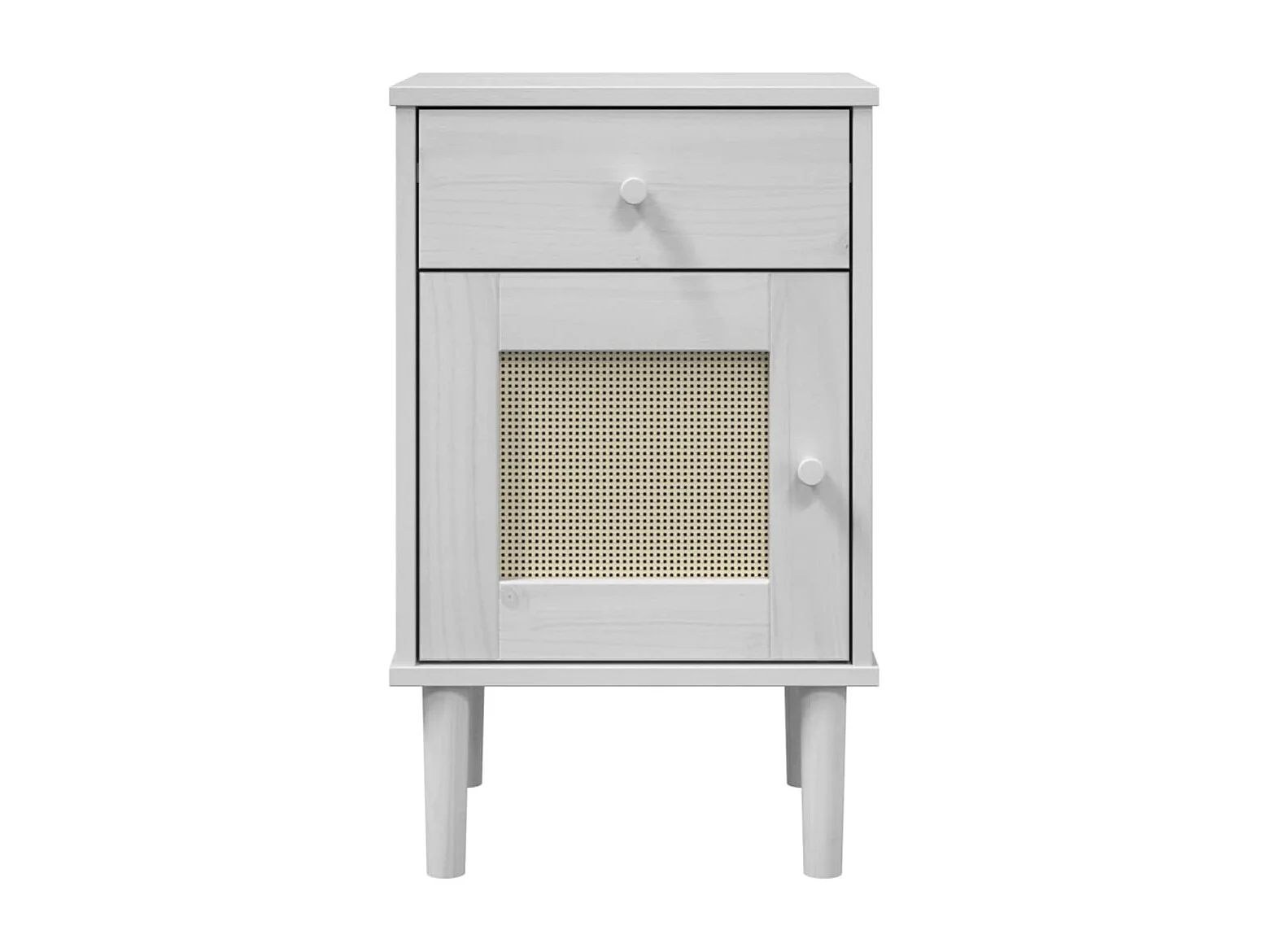 Mercedes Patricia Comodino SENJA Bianco Aspetto Rattan 40x35x48 cm in Legno Pino