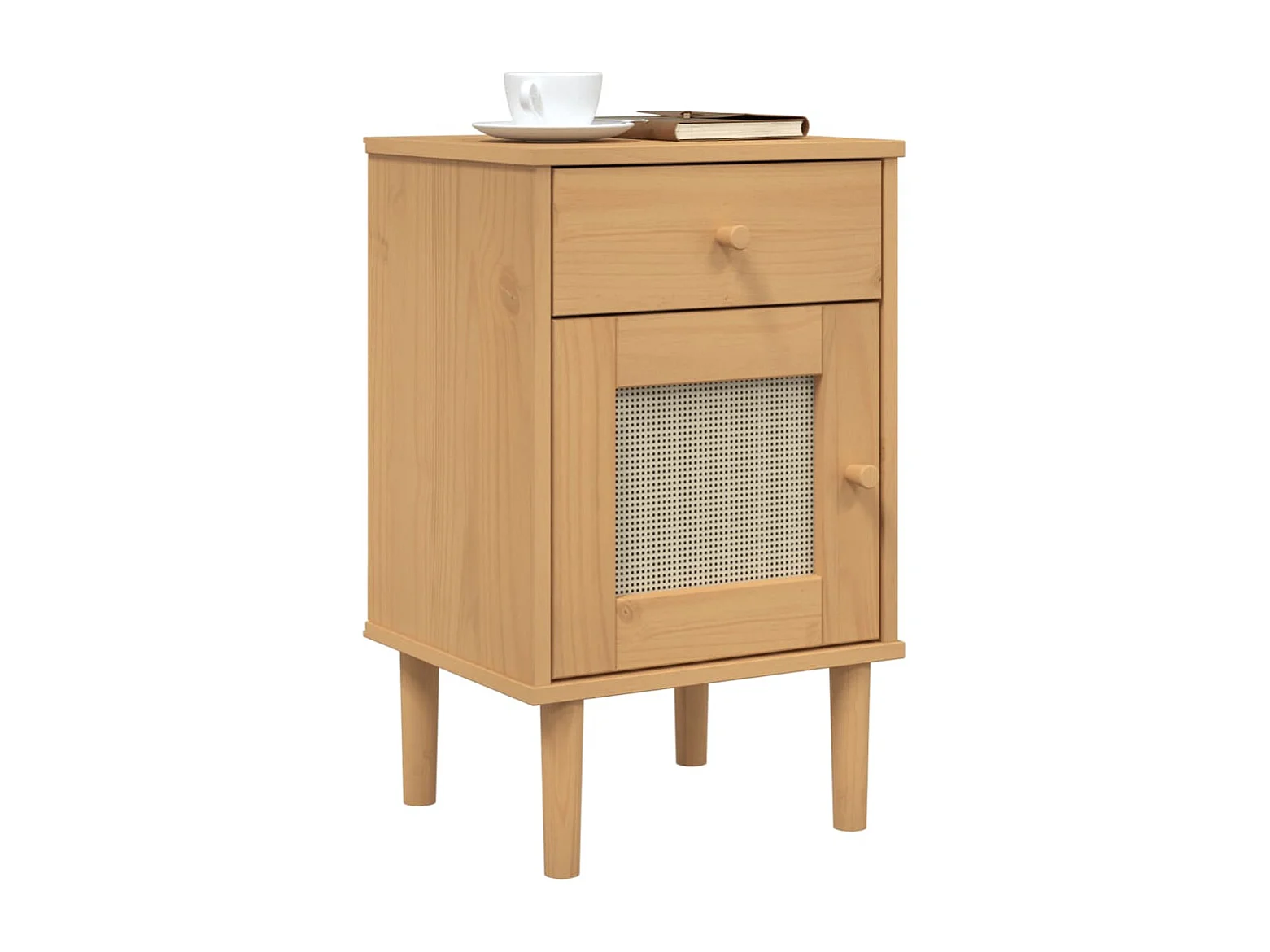 Narvik Comodino SENJA Aspetto Rattan Marrone 40x35x65 cm in Legno Pino