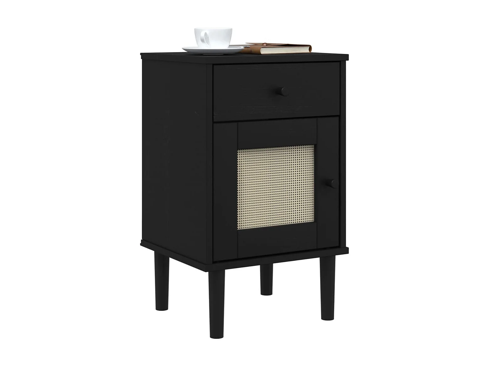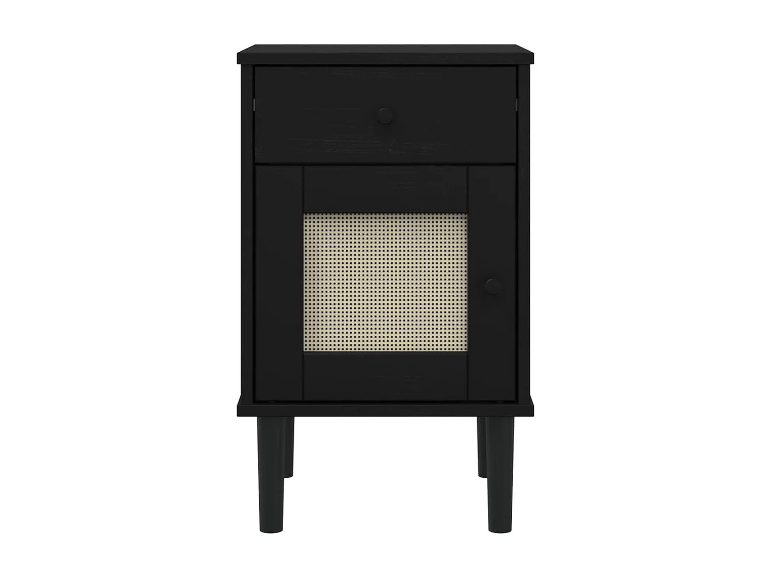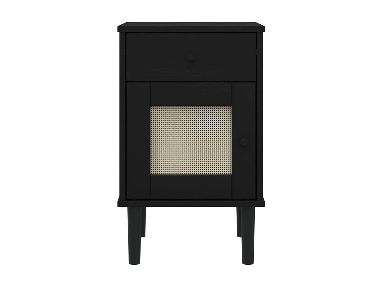 Narvik Comodino SENJA Aspetto Rattan Nero 40x35x65 cm in Legno Pino