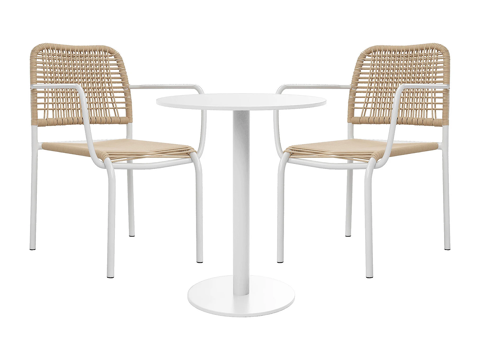Sala da pranzo da giardino in metallo e resina intrecciata: un tavolo D.60 cm e 2 poltrone impilabili - Beige - NIOU di MYLIA