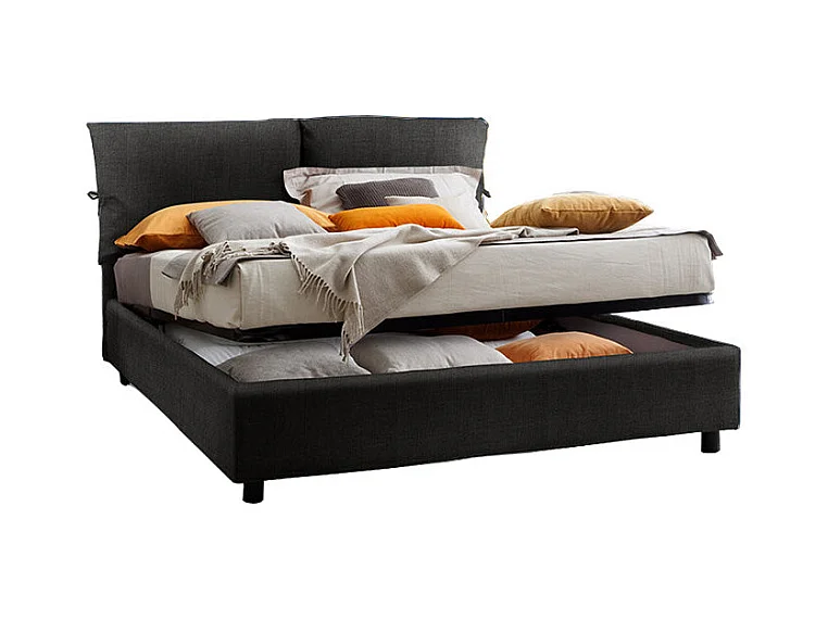 Noemi, Letto Matrimoniale Noemi Rete Fissa Tessuto Grigio Scuro (170cm X 200cm X 108cm)| Duzzle