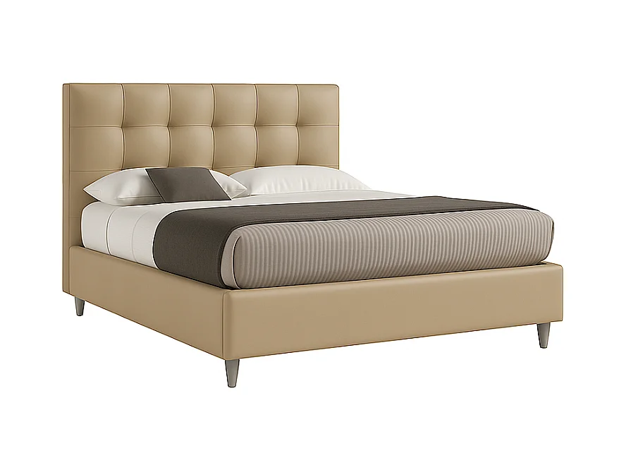 Nubea, Letto alla Francese Con Contenitore Rivestimento Vegan Leather Easy Clean Beige (155cm X 225cm X 120cm)| Duzzle