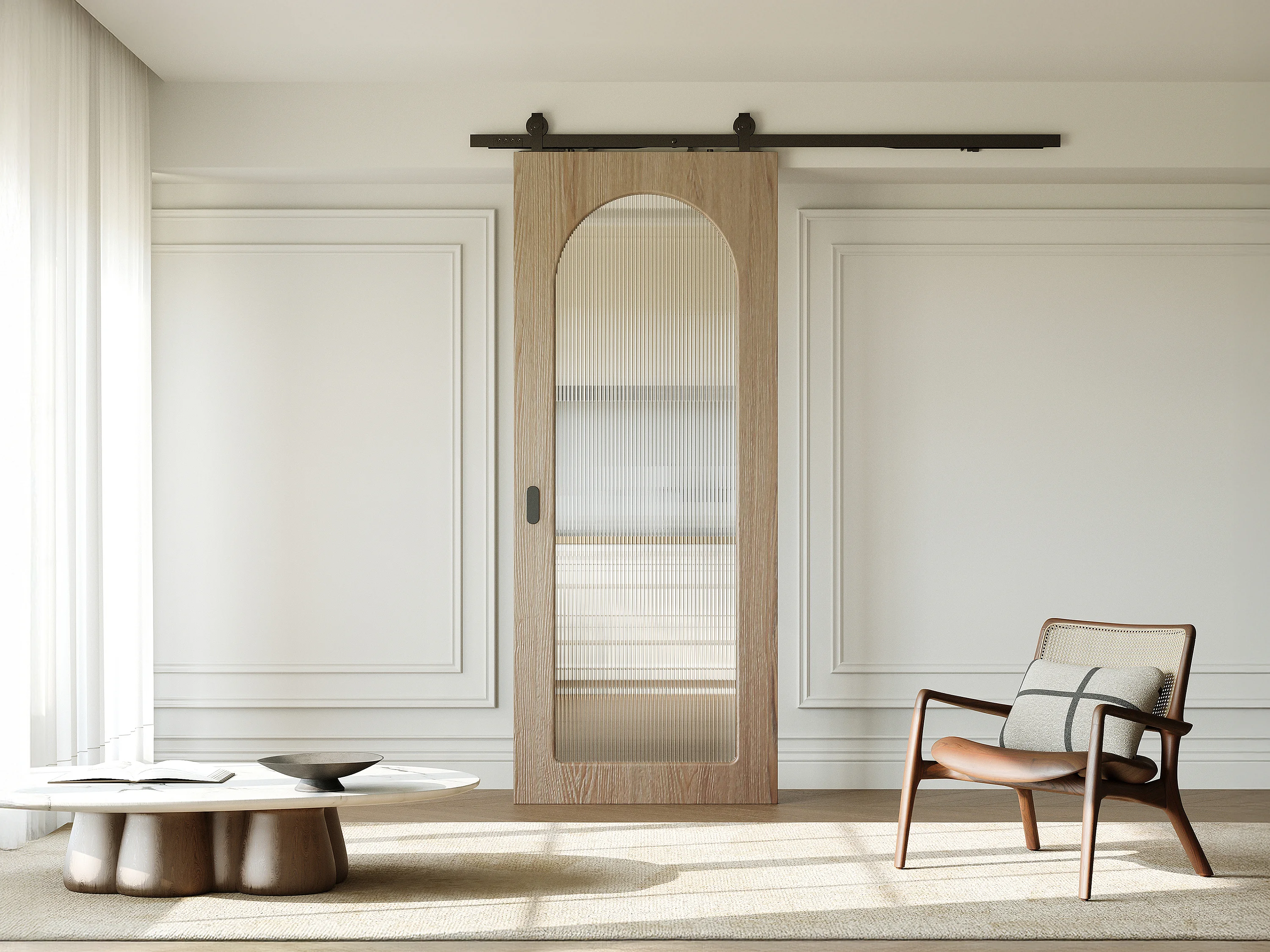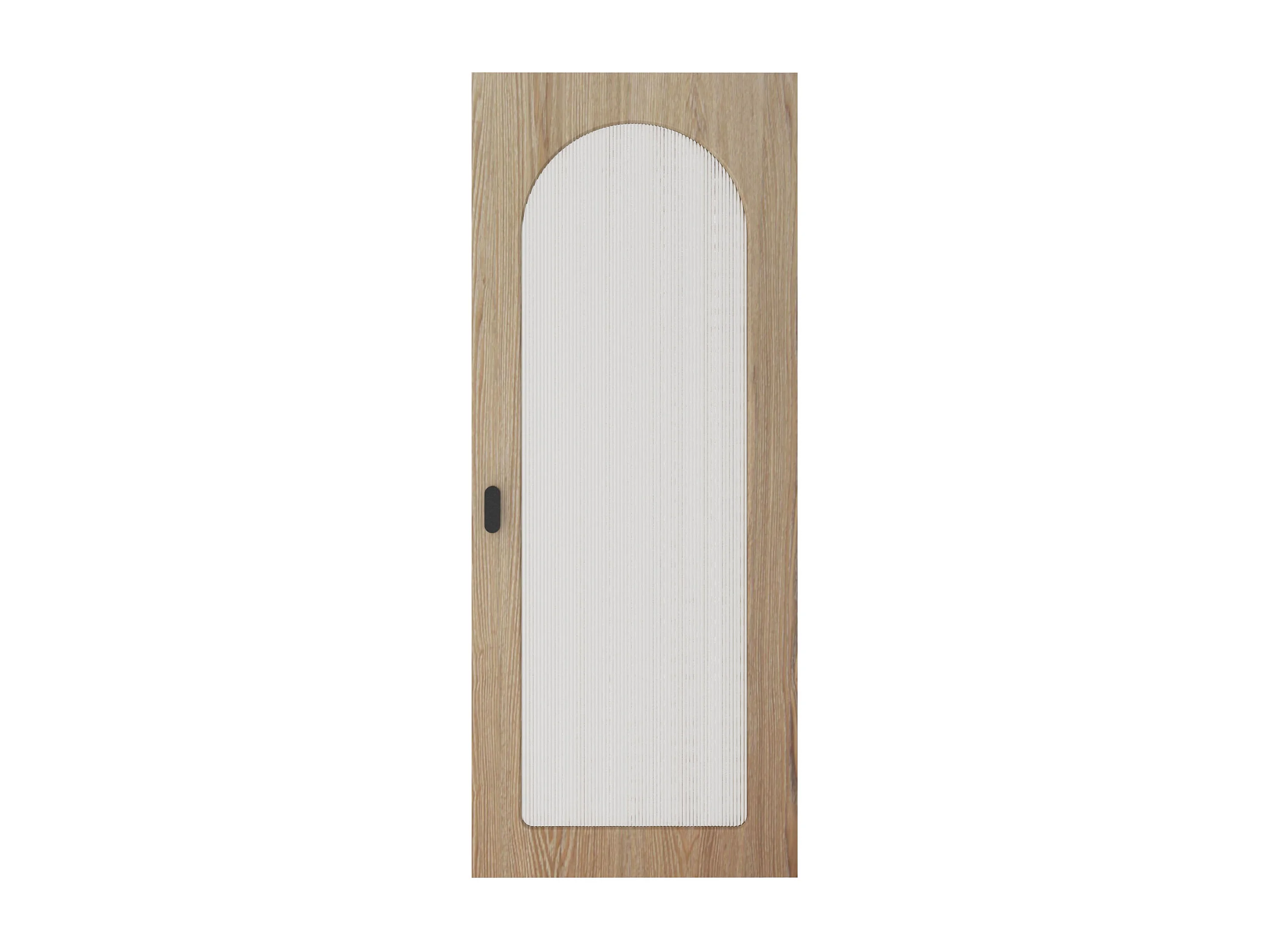 Porta scorrevole con sistema a parete in legno e MDF - arco in vetro temperato scanalato - H205 x L83 cm - ODEZA