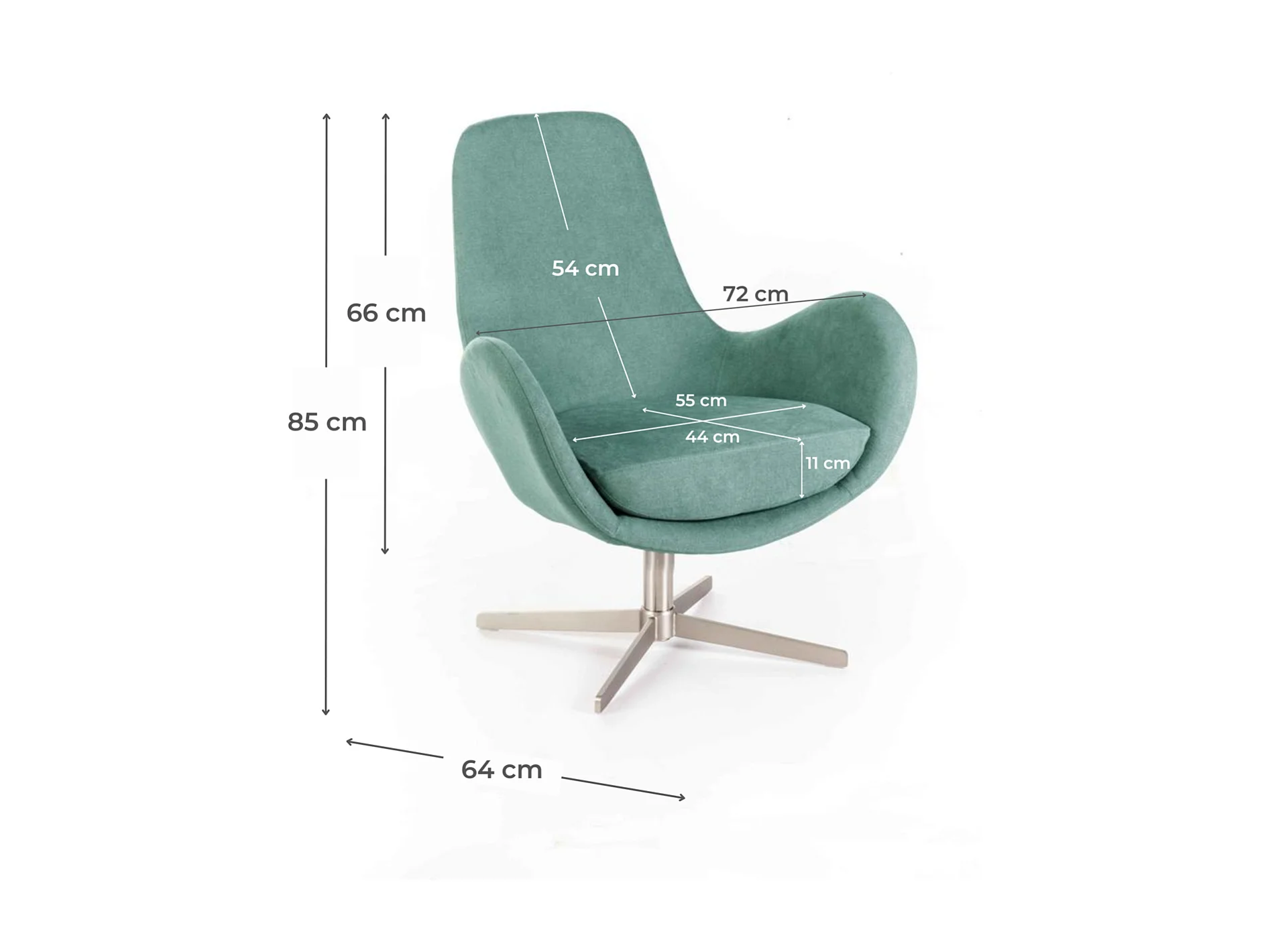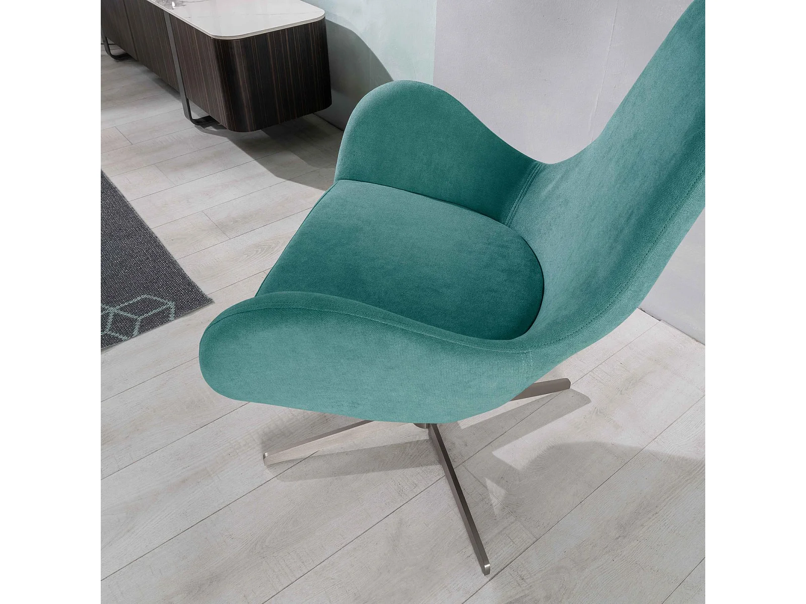 Olga - Poltrona girevole in tessuto acquamarina