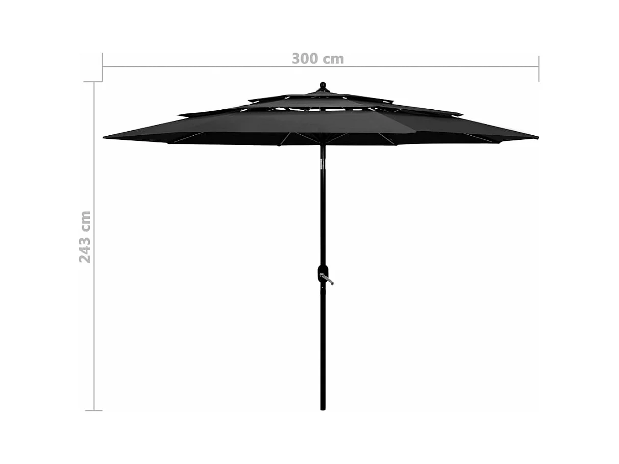 Ombrellone a 3 livelli con palo in alluminio Antracite 3 m