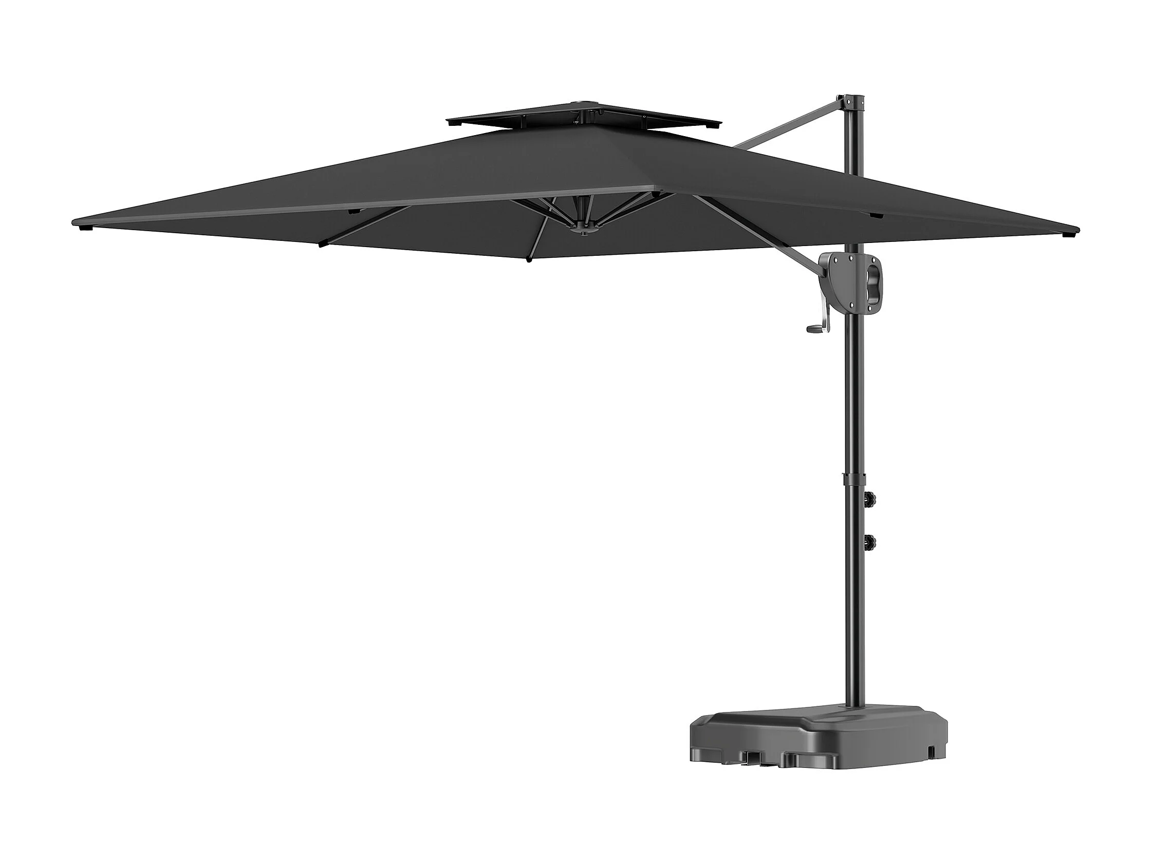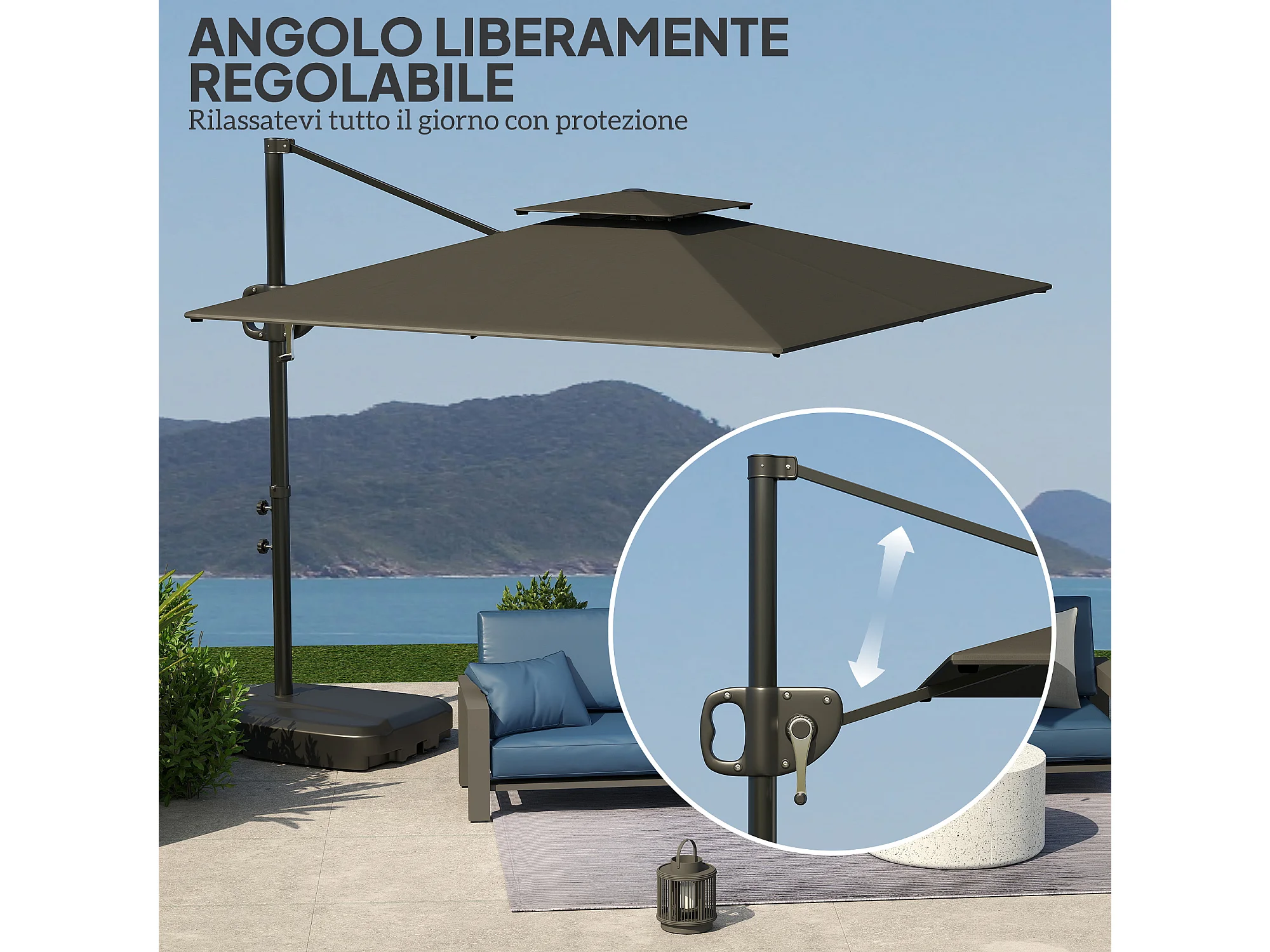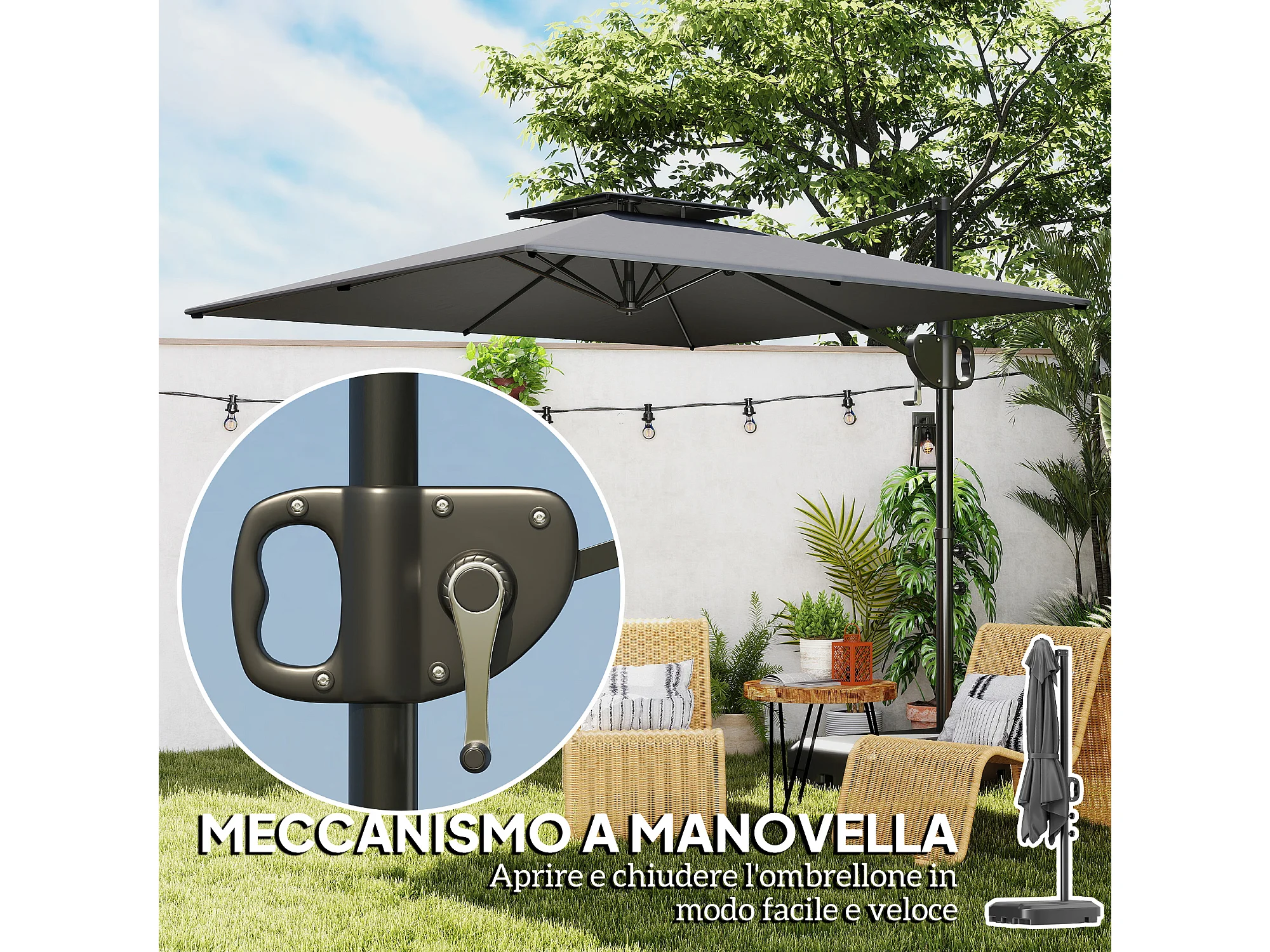 Ombrellone a braccio con base riempibile e manovella grigio scuro