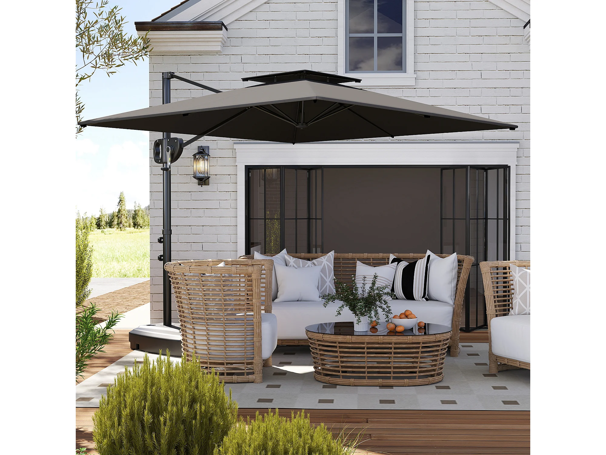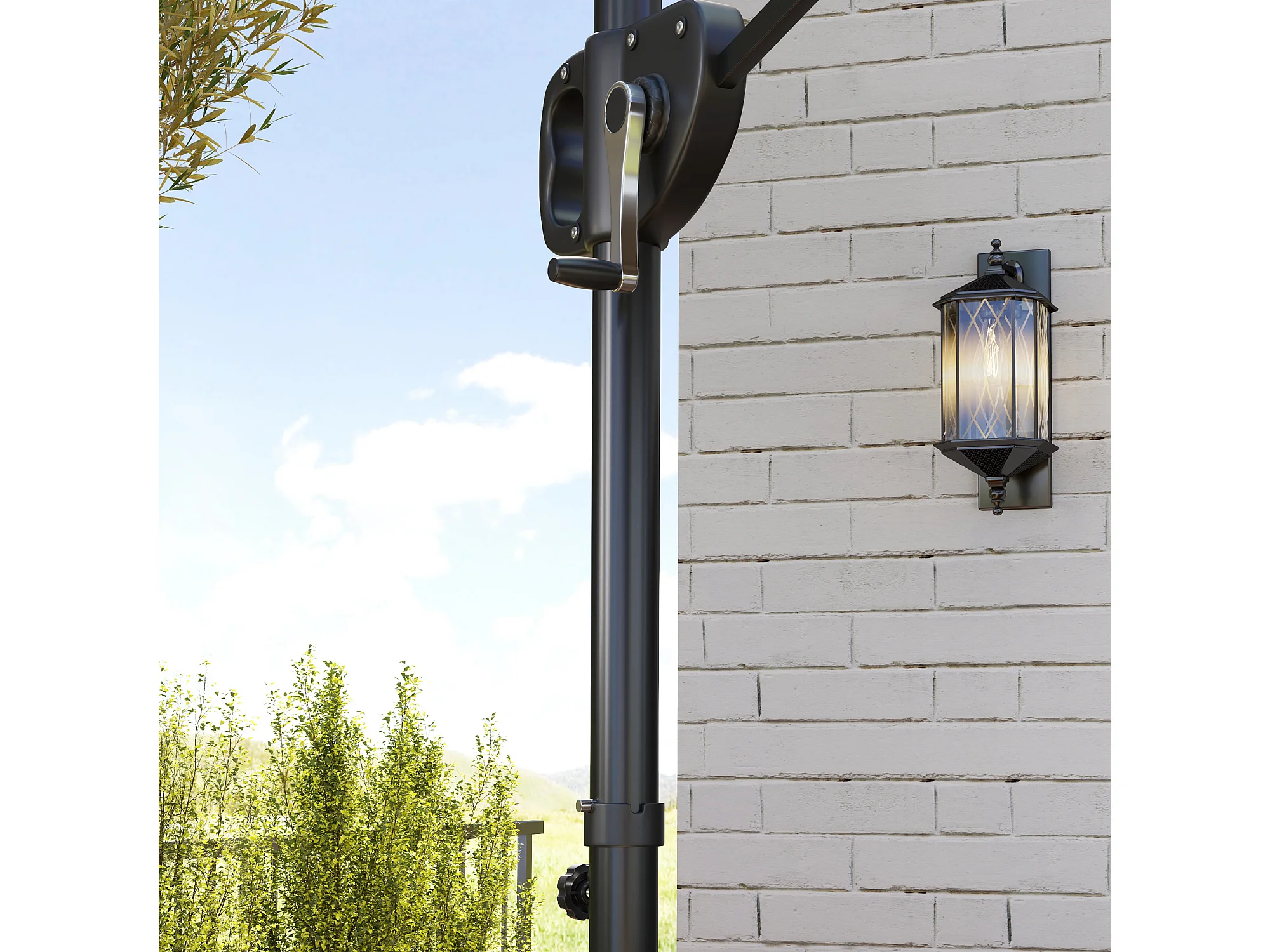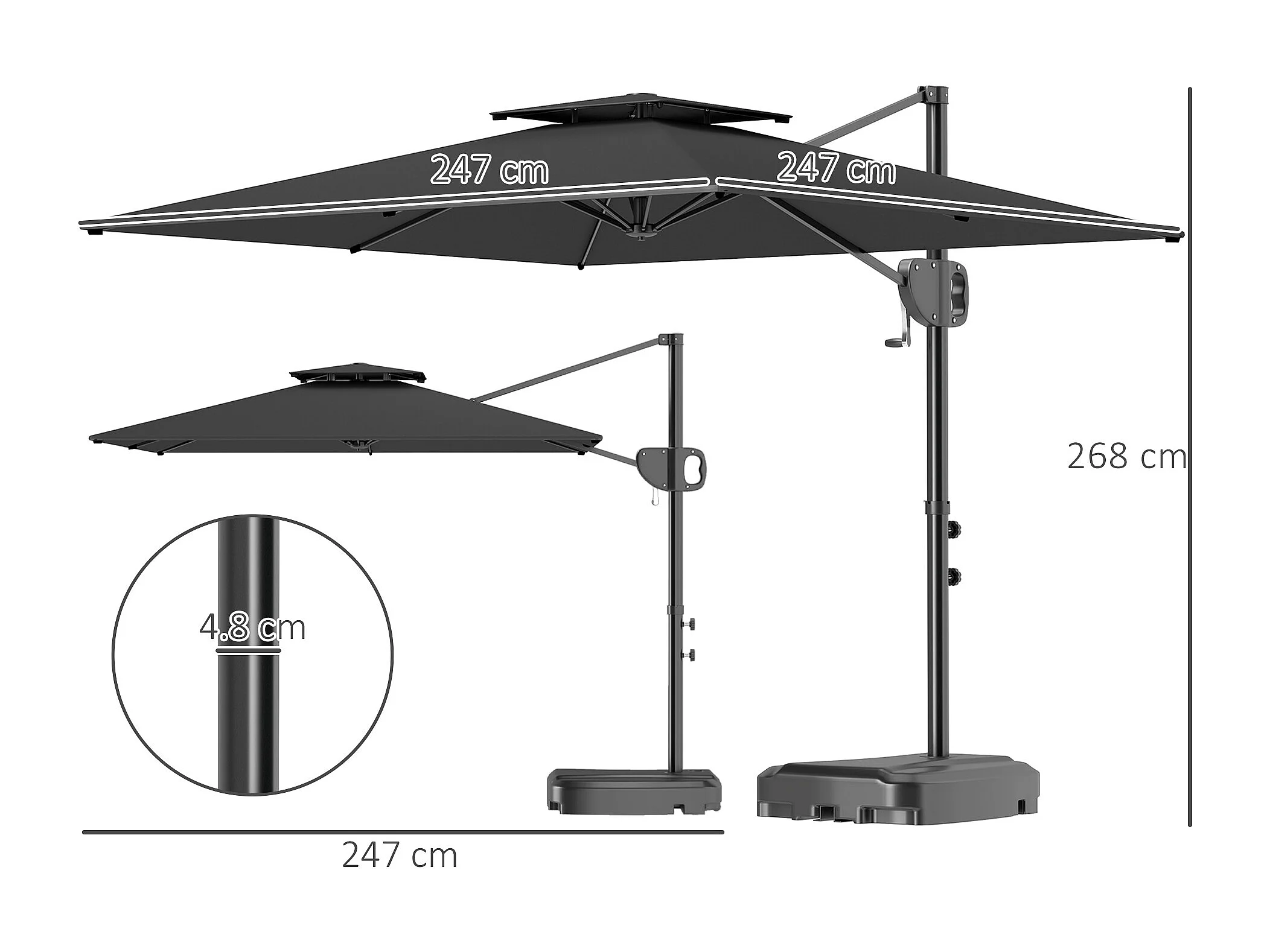 Ombrellone a braccio con base riempibile e manovella grigio scuro