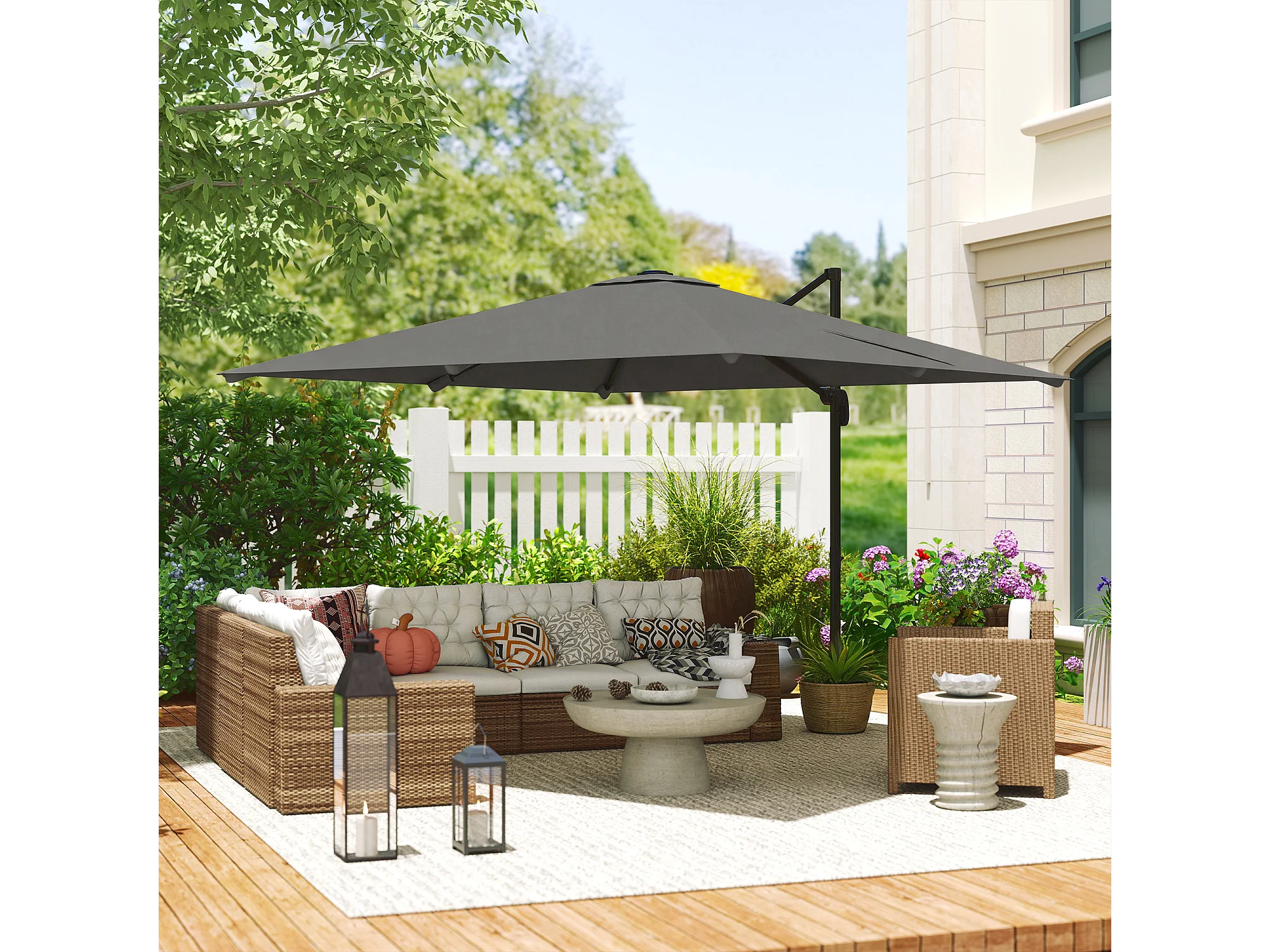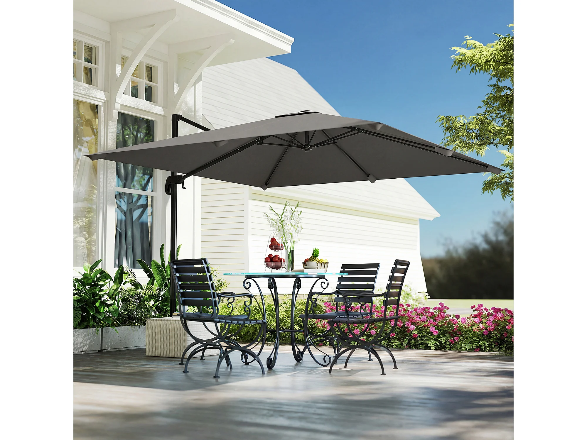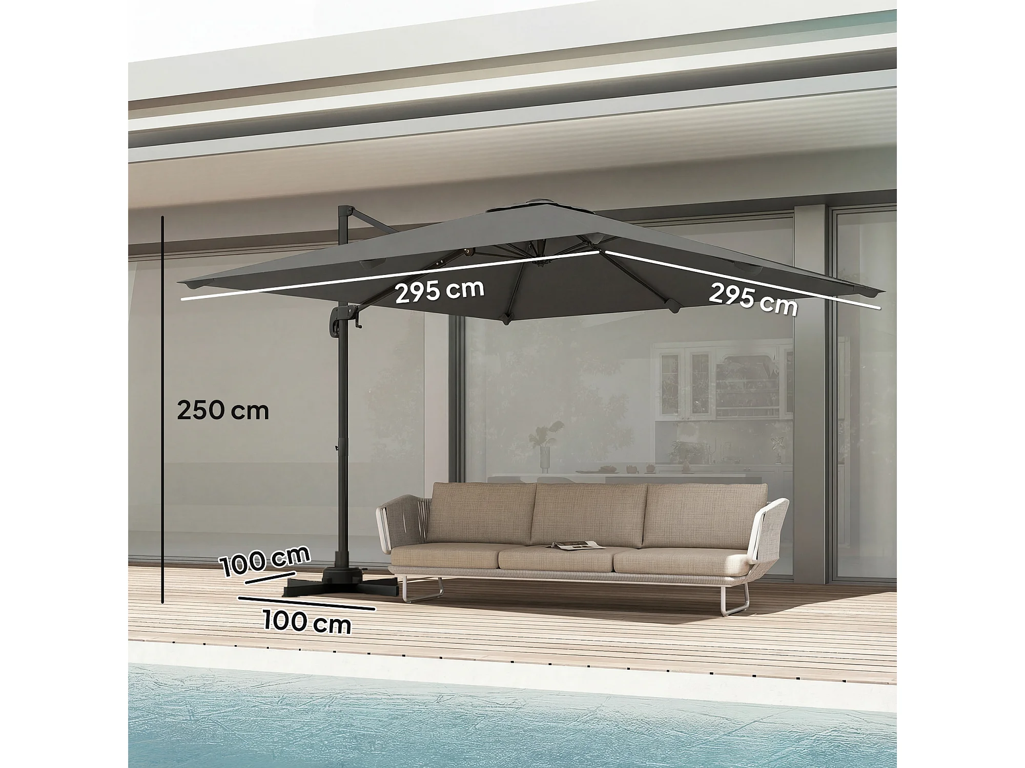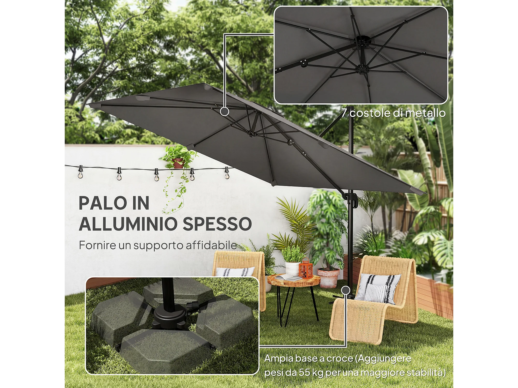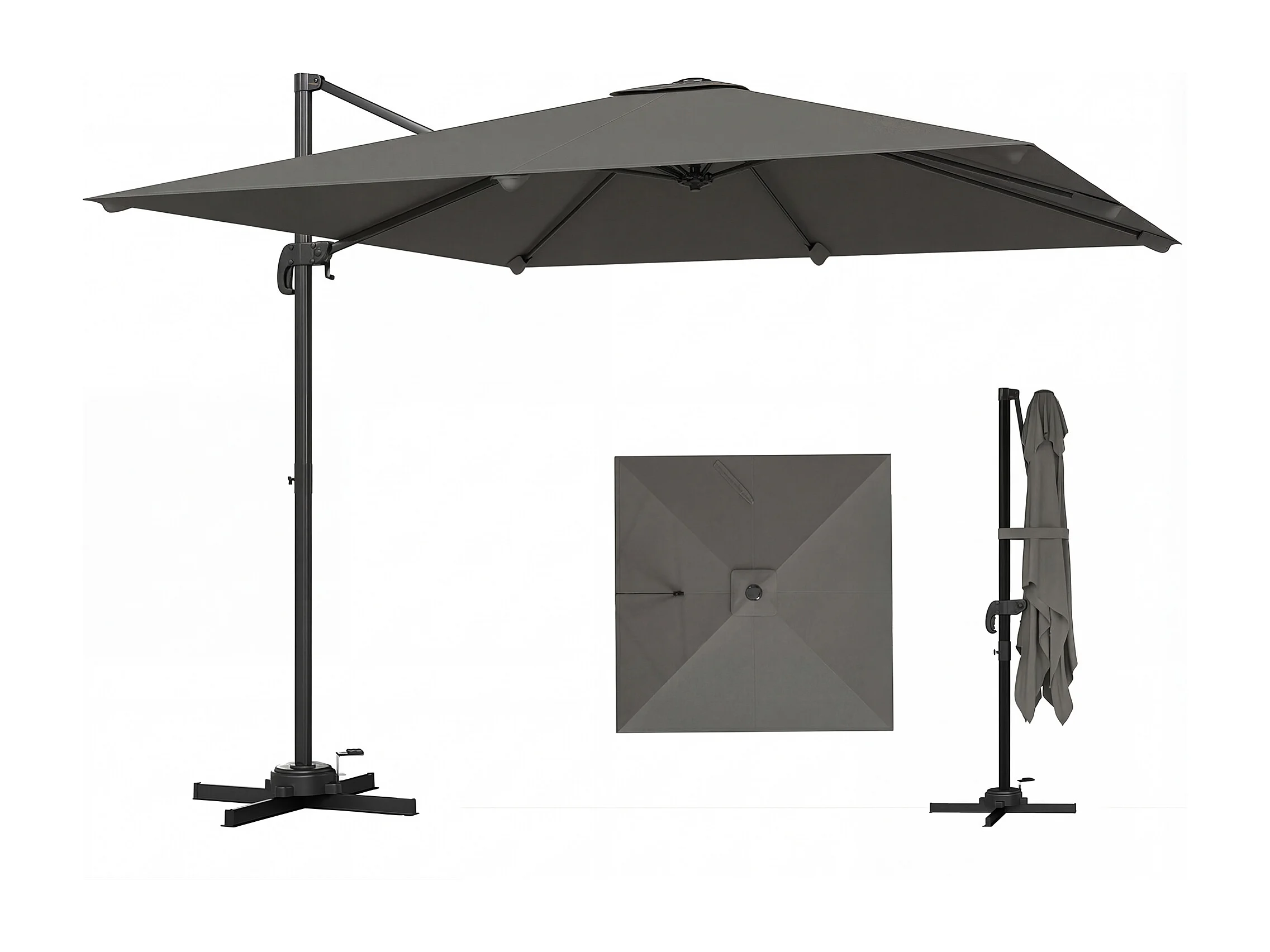 Ombrellone a sbalzo inclinabile 3x3 m con base a croce grigio scuro