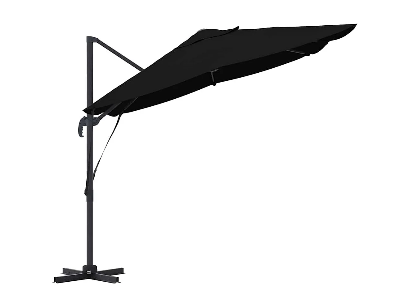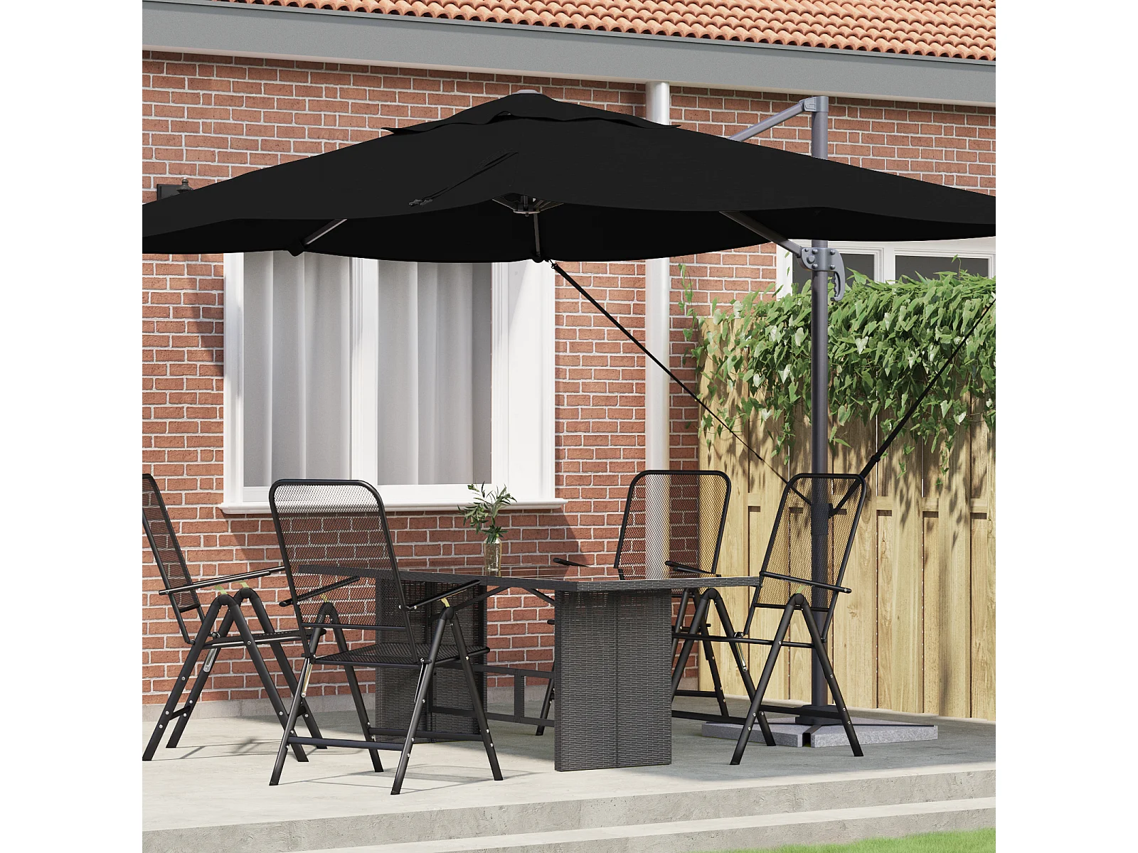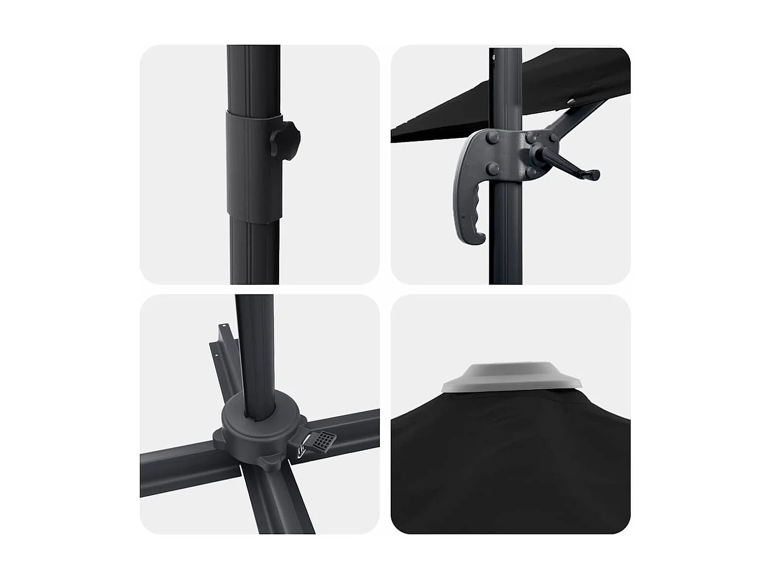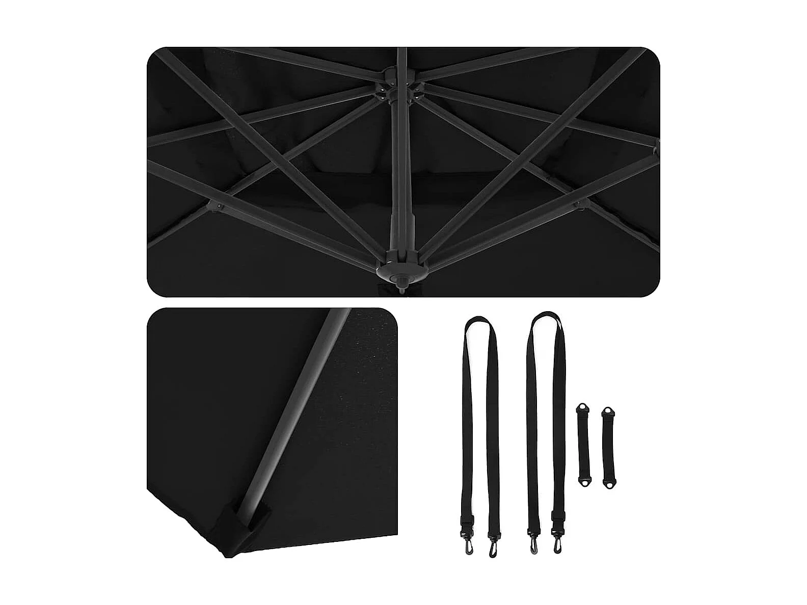 Ombrellone a sbalzo nero con tetto in poliestere e struttura in metallo grande