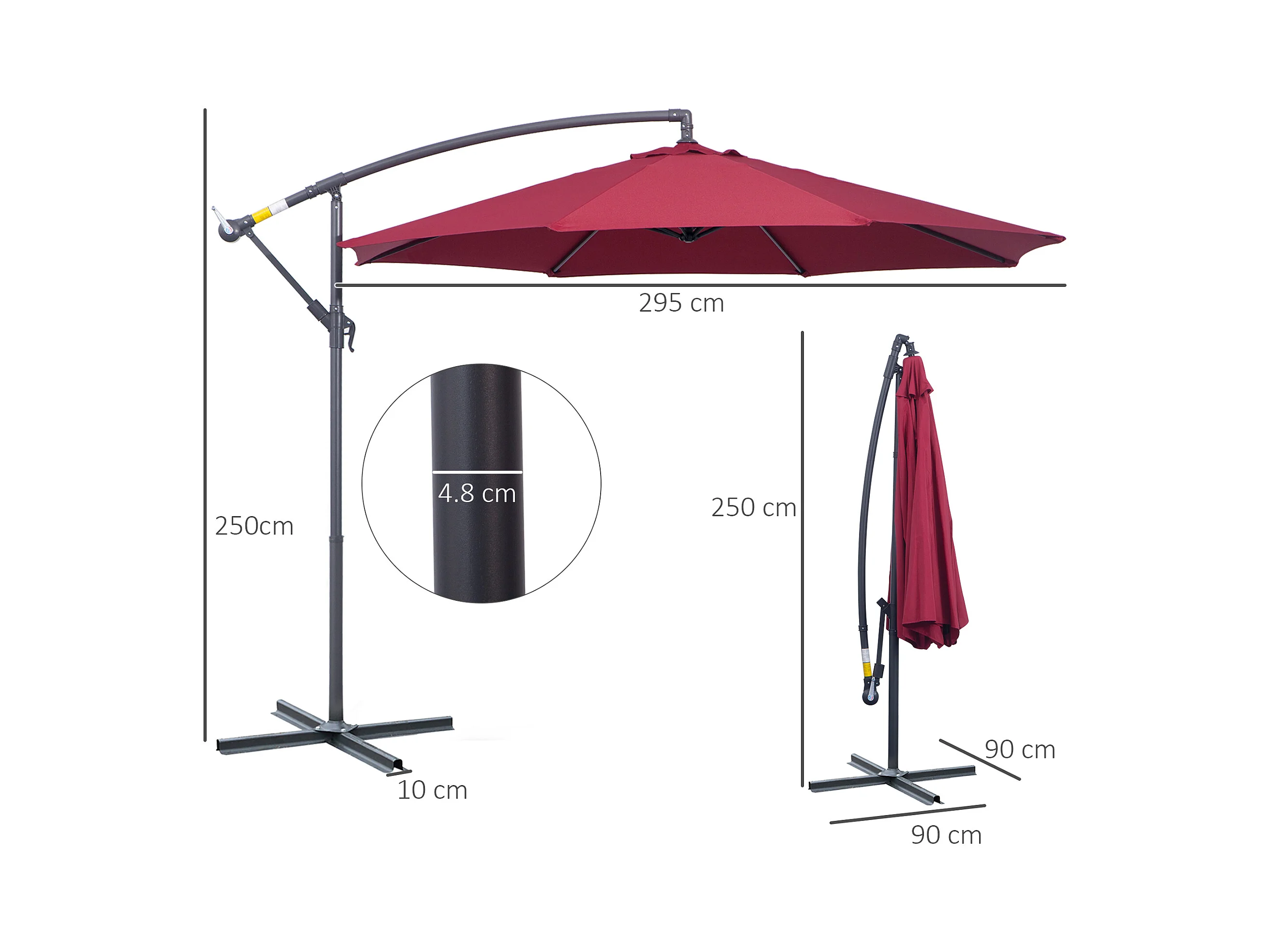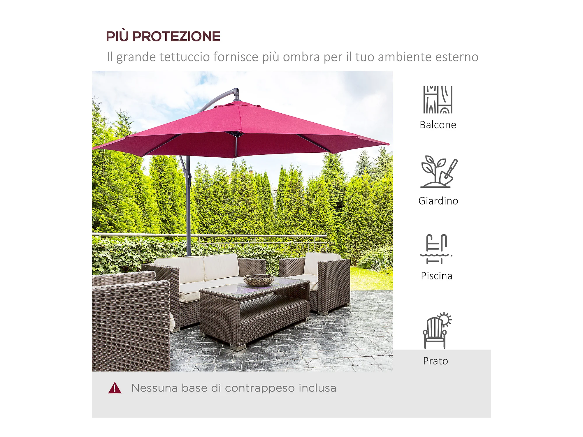 Ombrellone da giardino 3x2.5 m a braccio inclinabile rosso