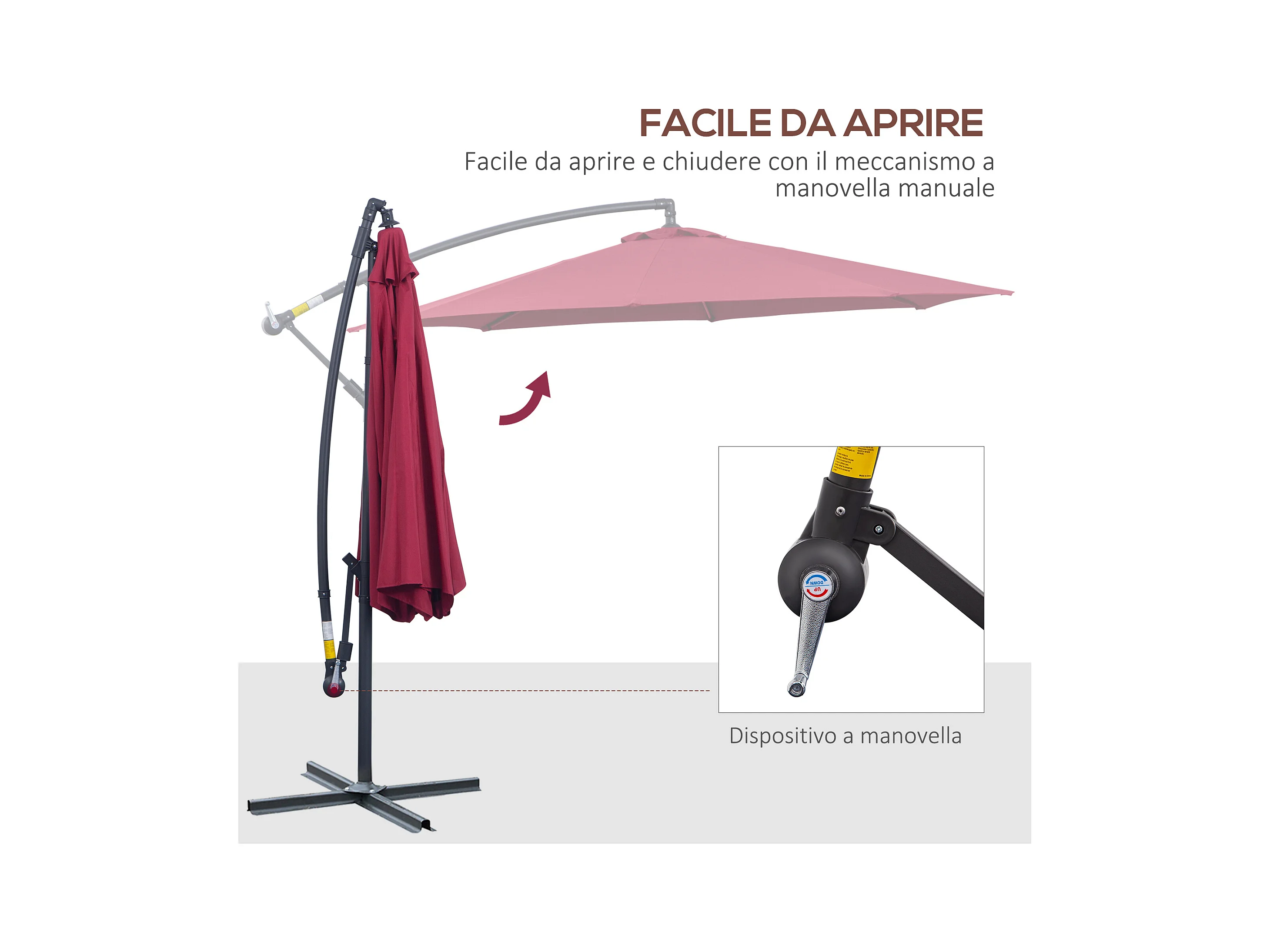 Ombrellone rotondo e regolabile su 3 angolazioni rosso vino e nero