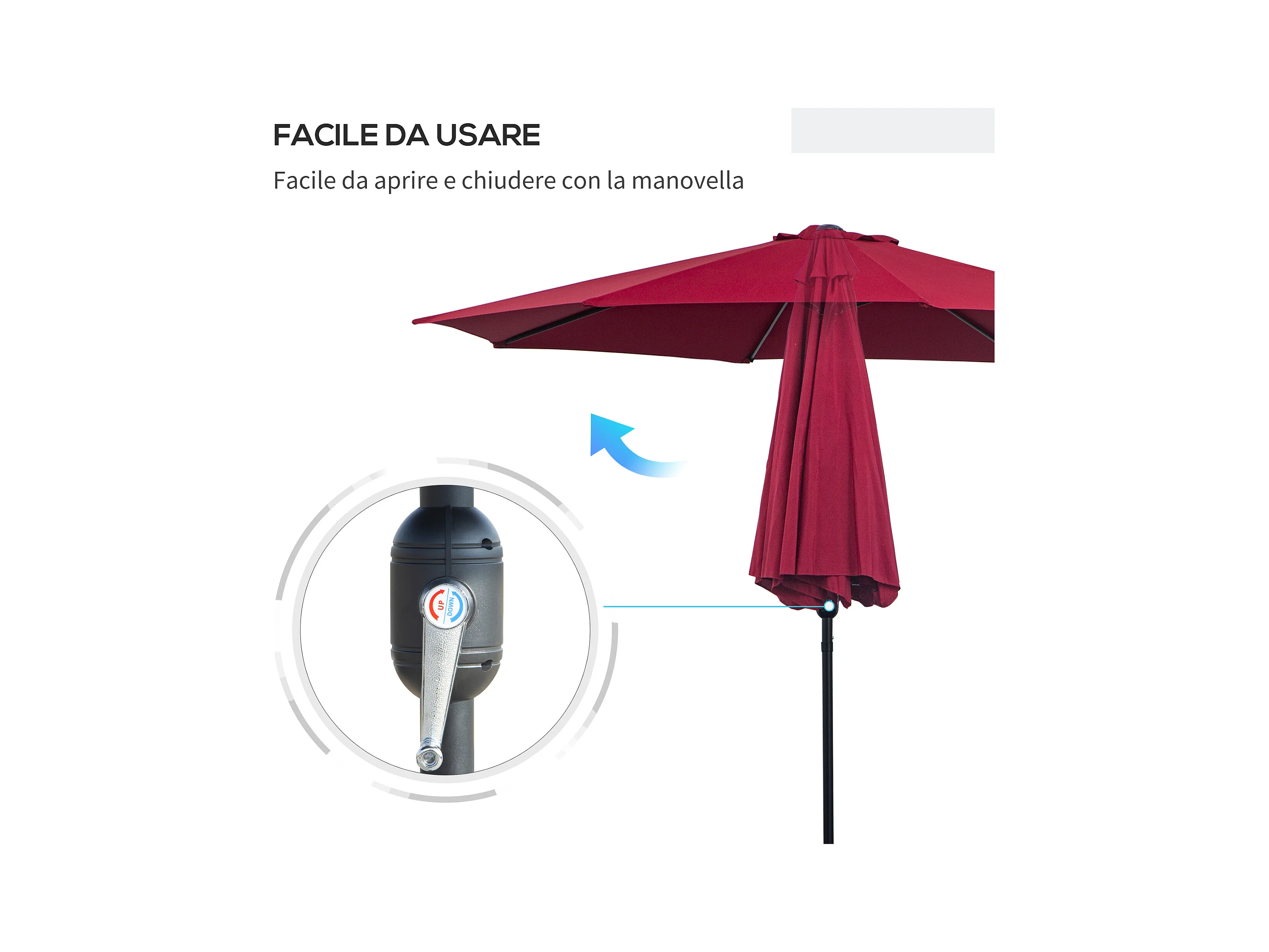 Ombrellone rotondo pieghevole a 18 stecche con manovella rosso vino