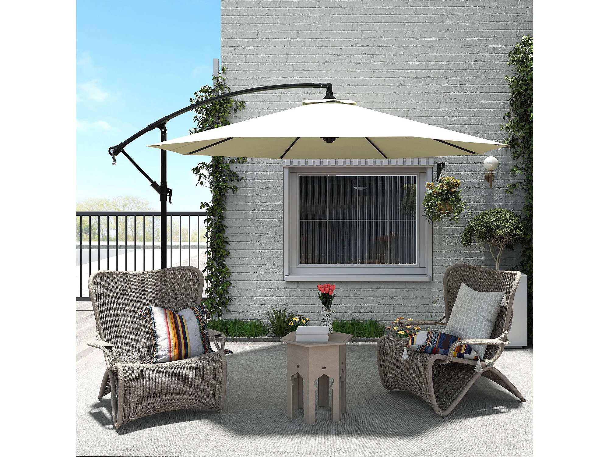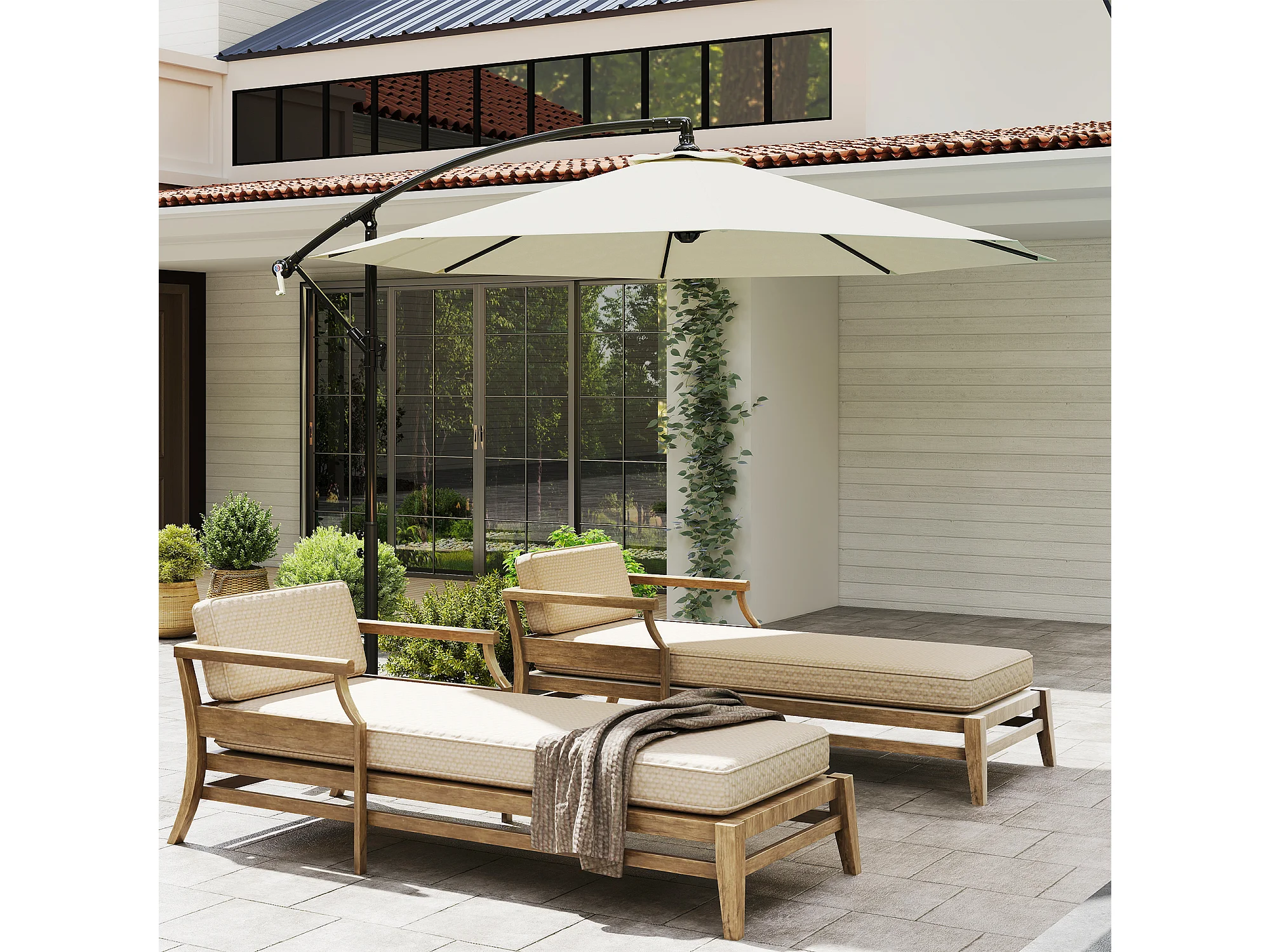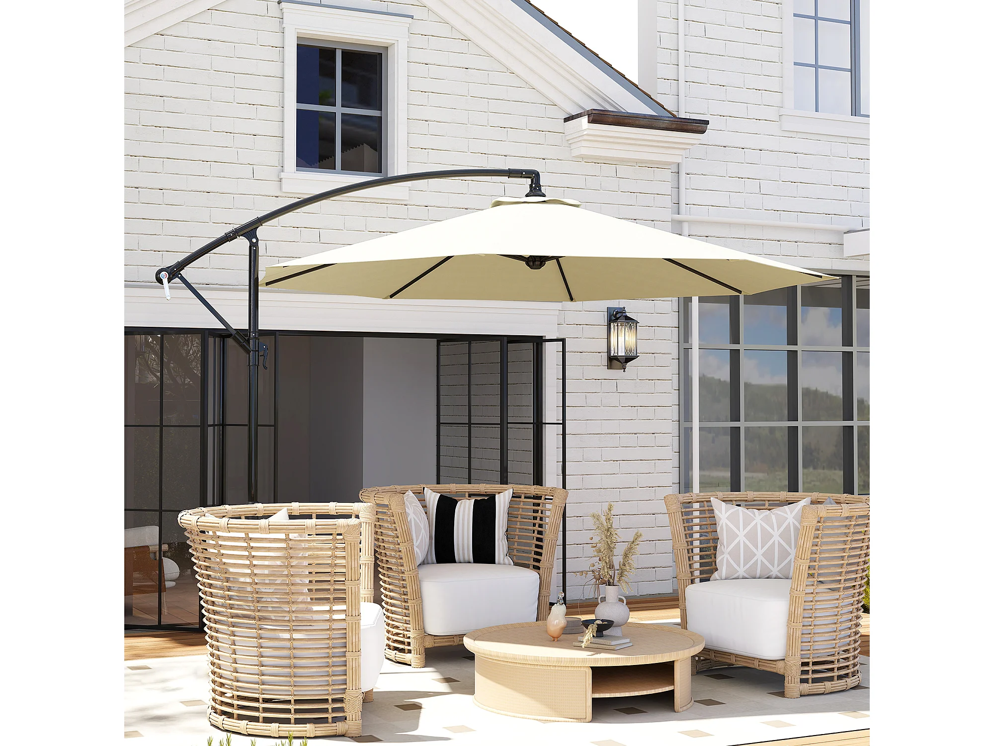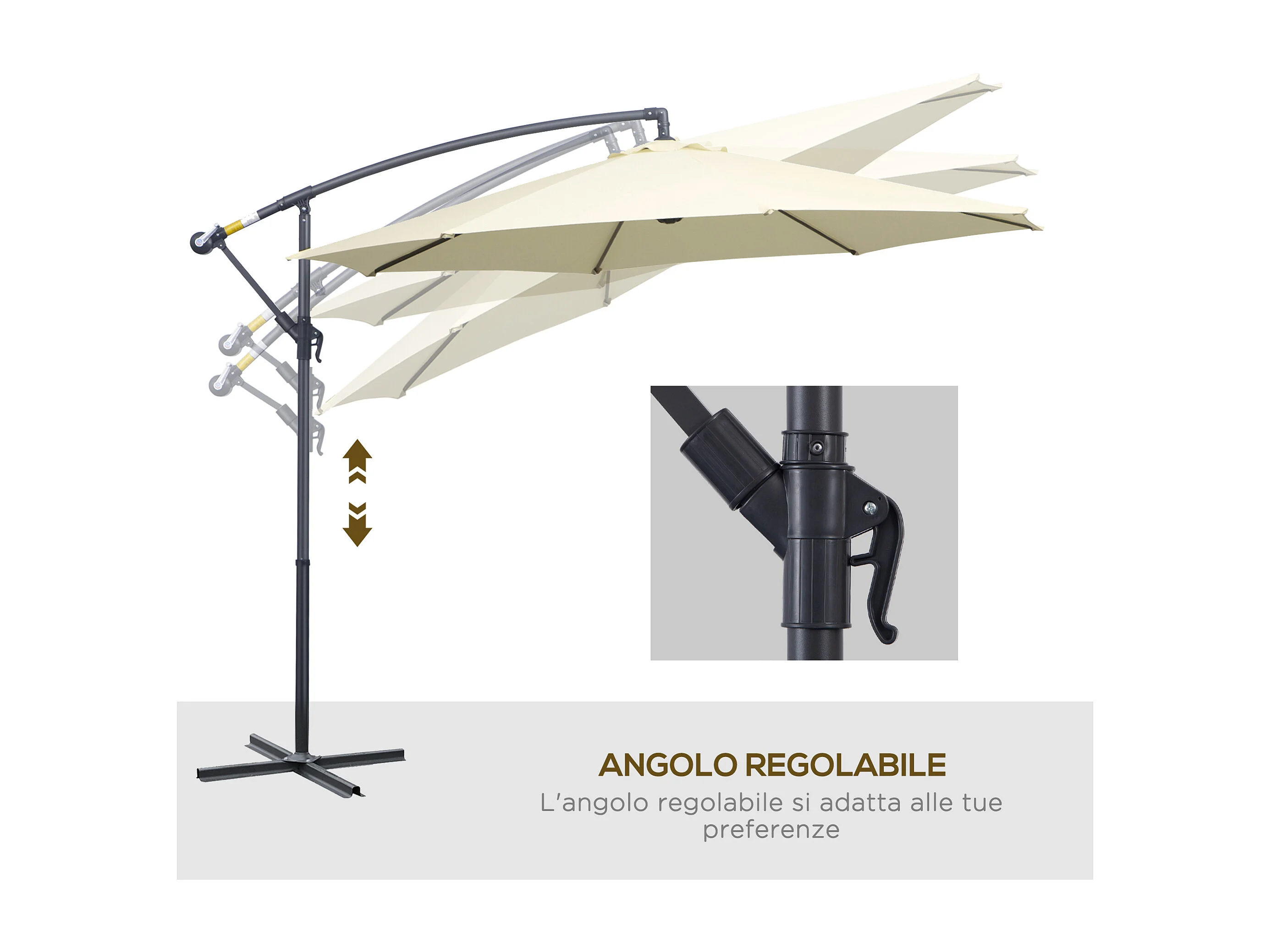 Ombrellone da giardino a braccio con manovella 3x2.5 m beige
