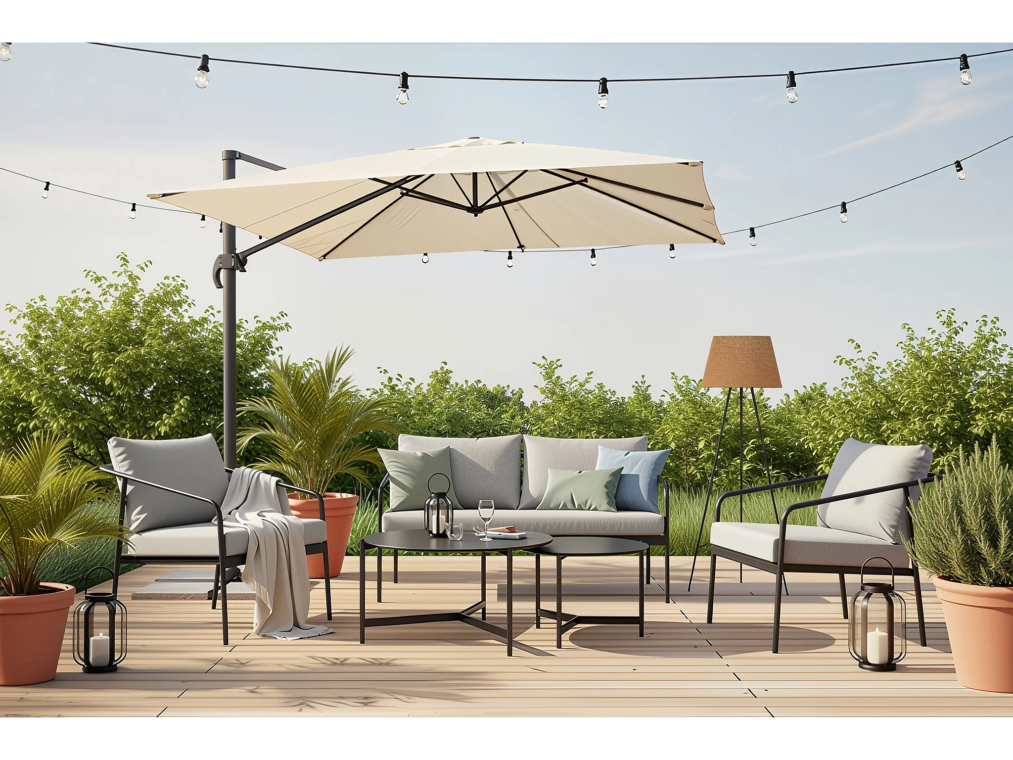 Ombrellone da giardino a braccio decentrato 3×3 mod. Miami