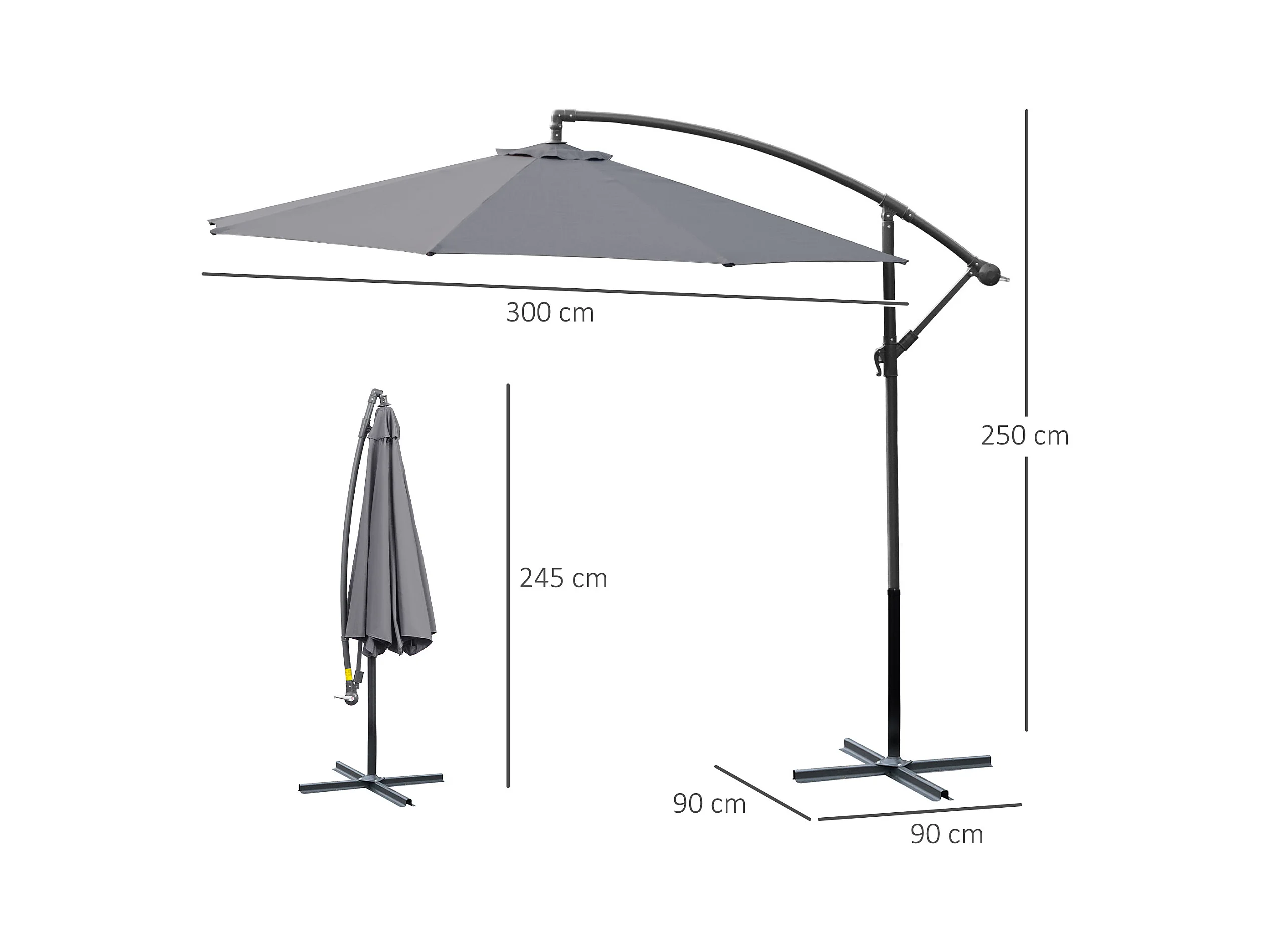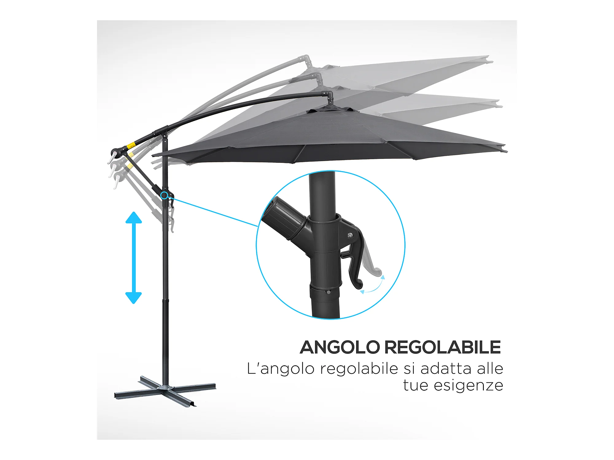 Ombrellone da giardino a braccio inclinabile con manovella grigio